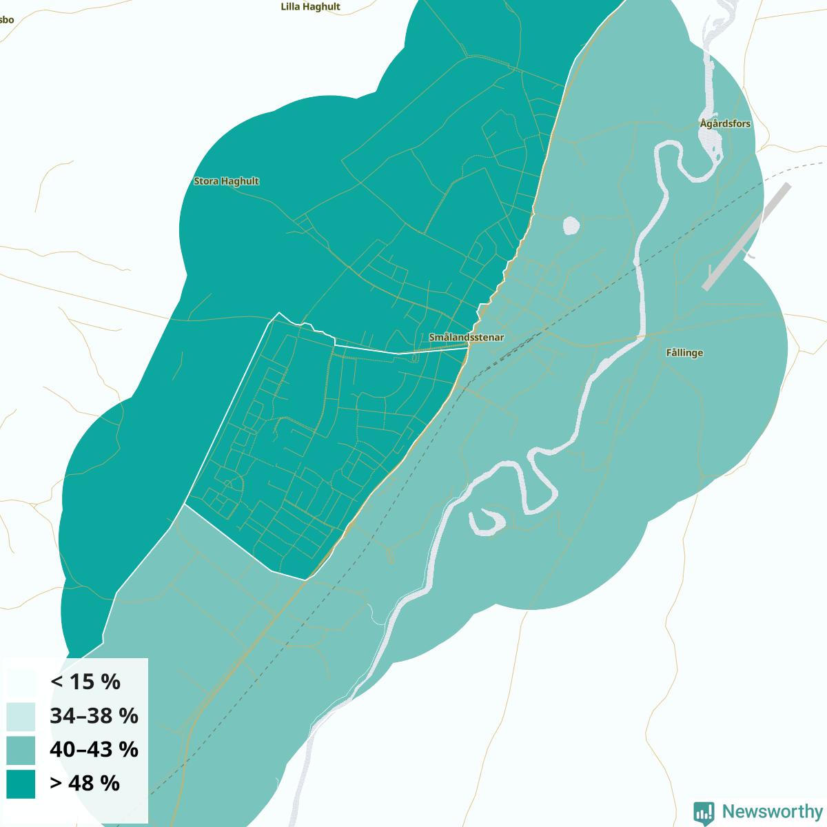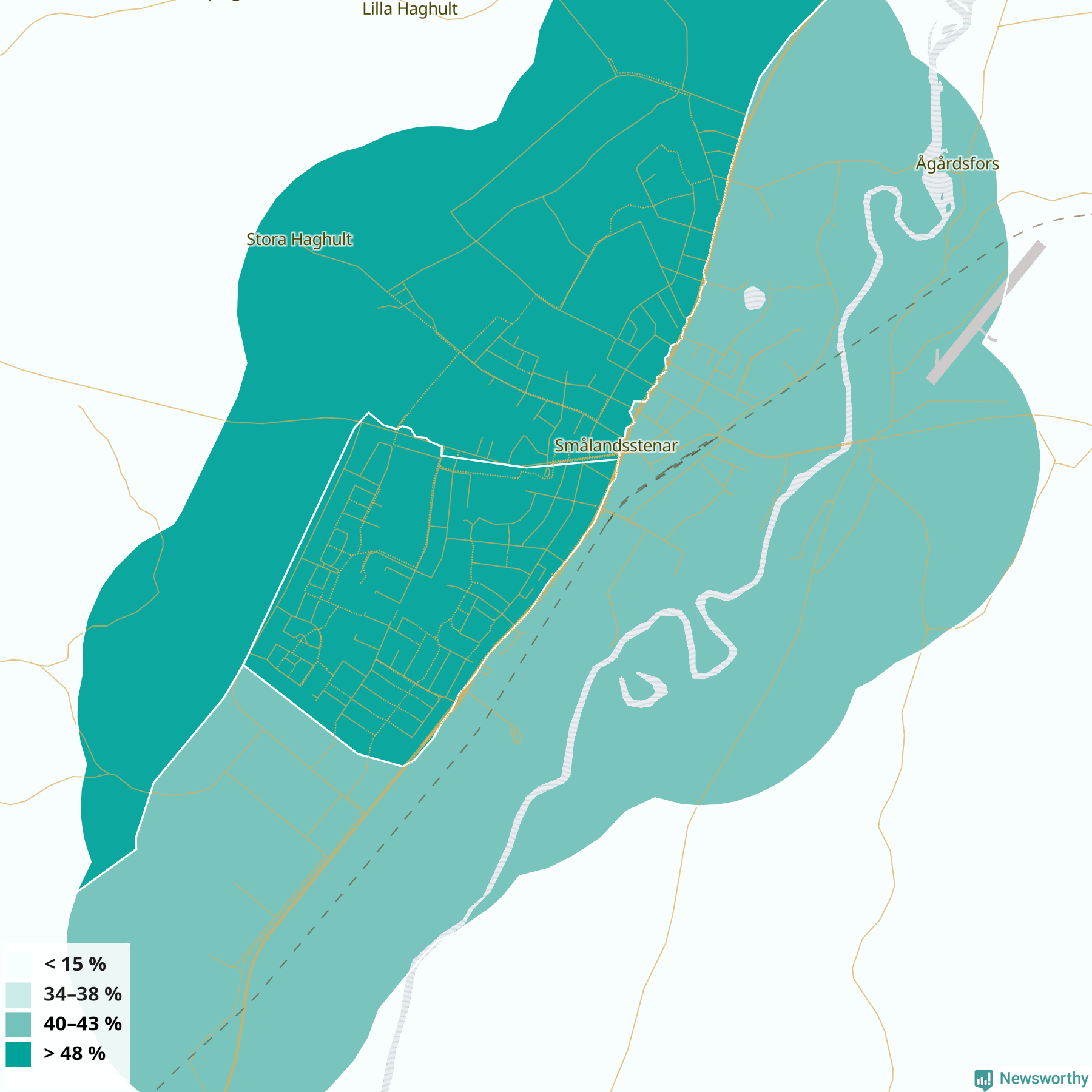 | Västra Smålandsstenar-Reftele omland | 15 % |