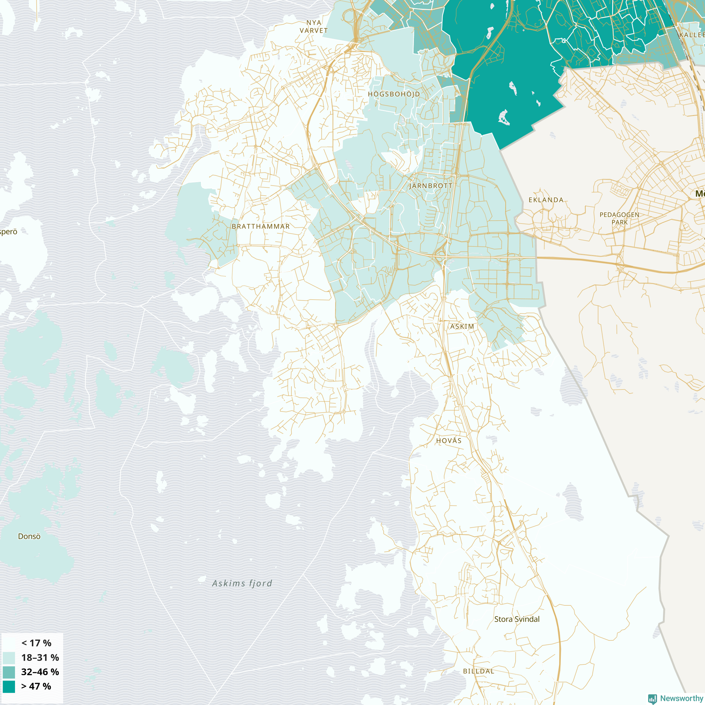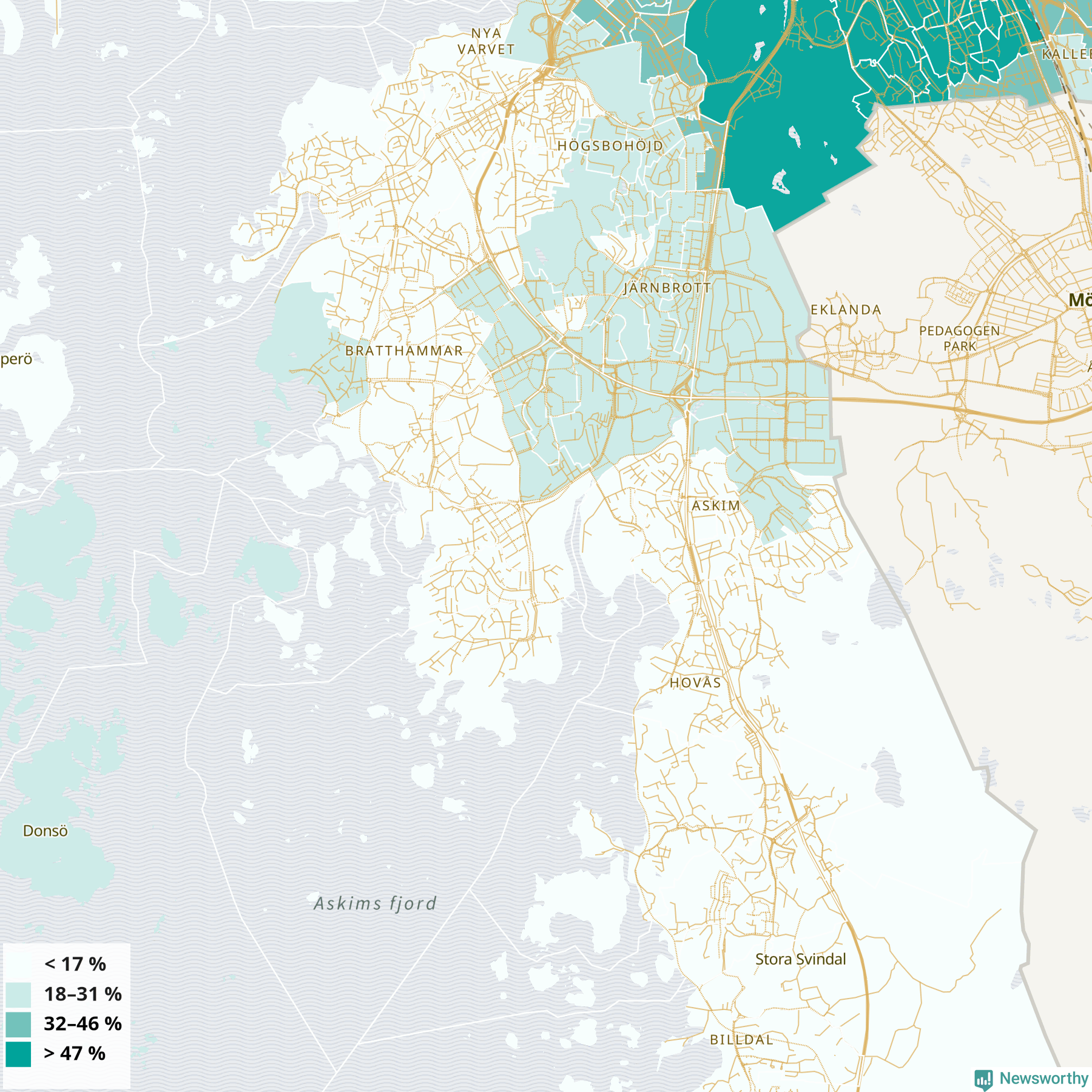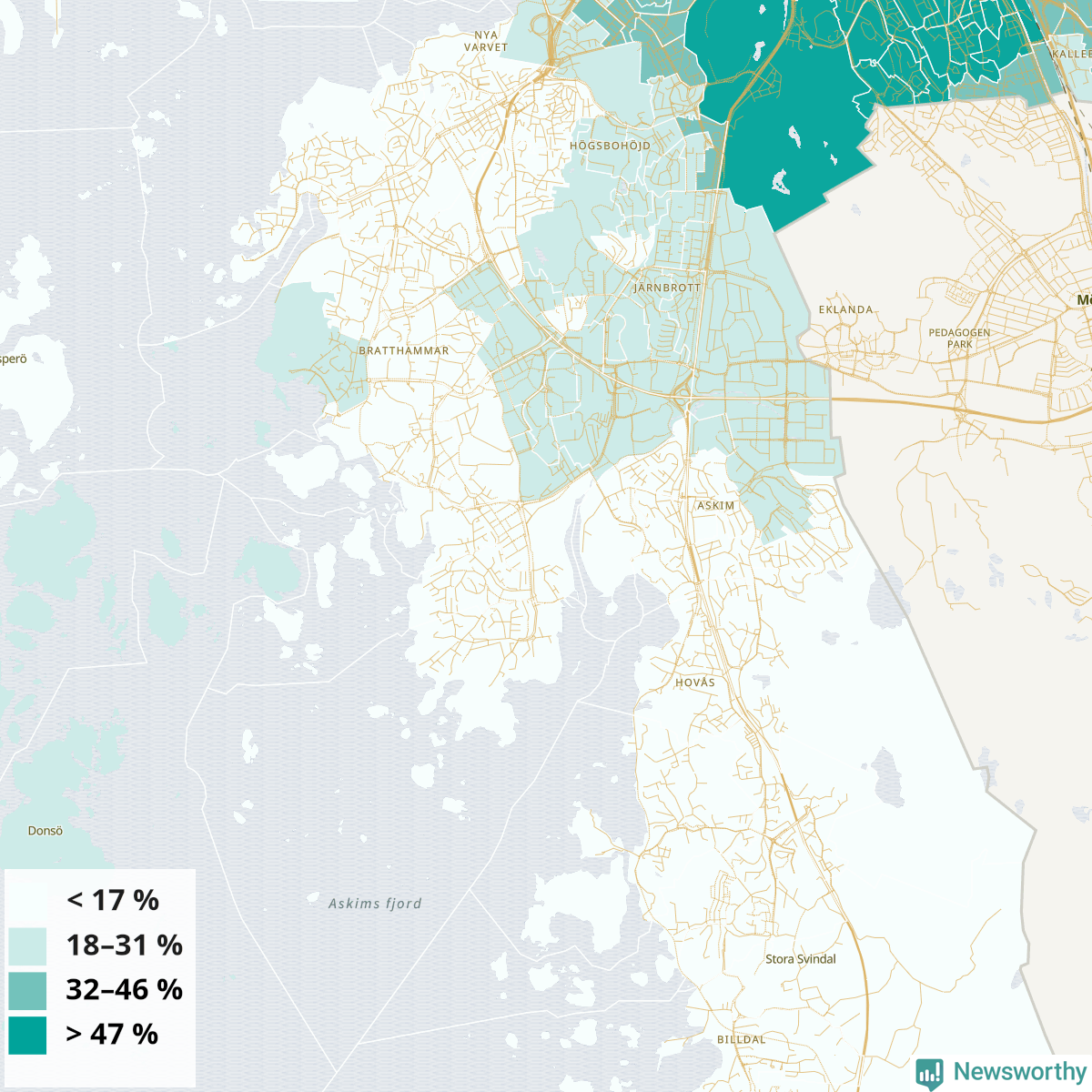 | Partille | 15 % | 20 % | 11 % | Nedre Björndammen (22 %) |