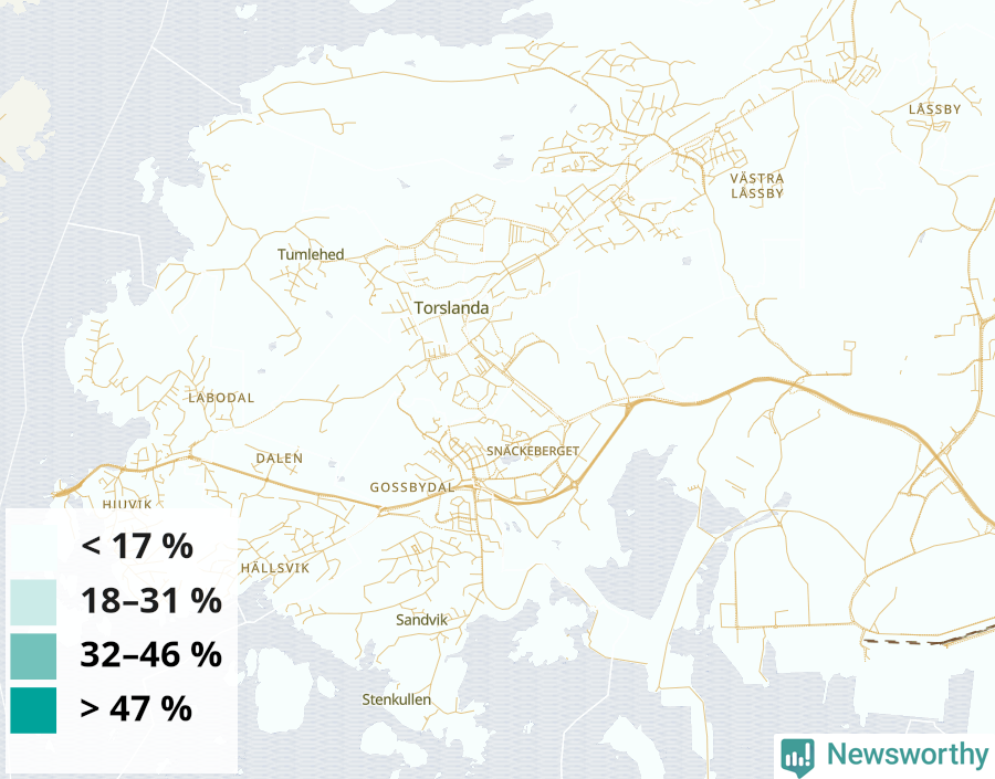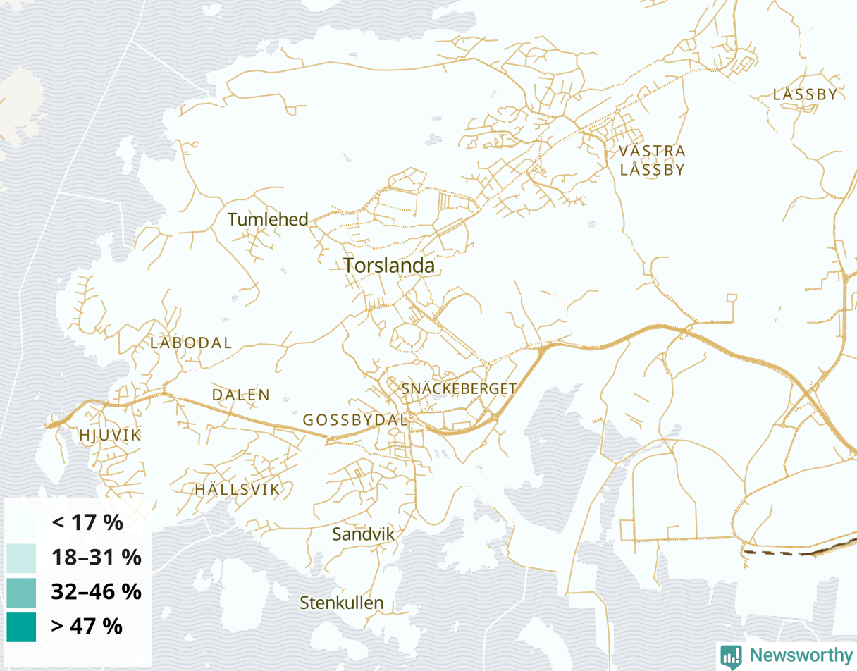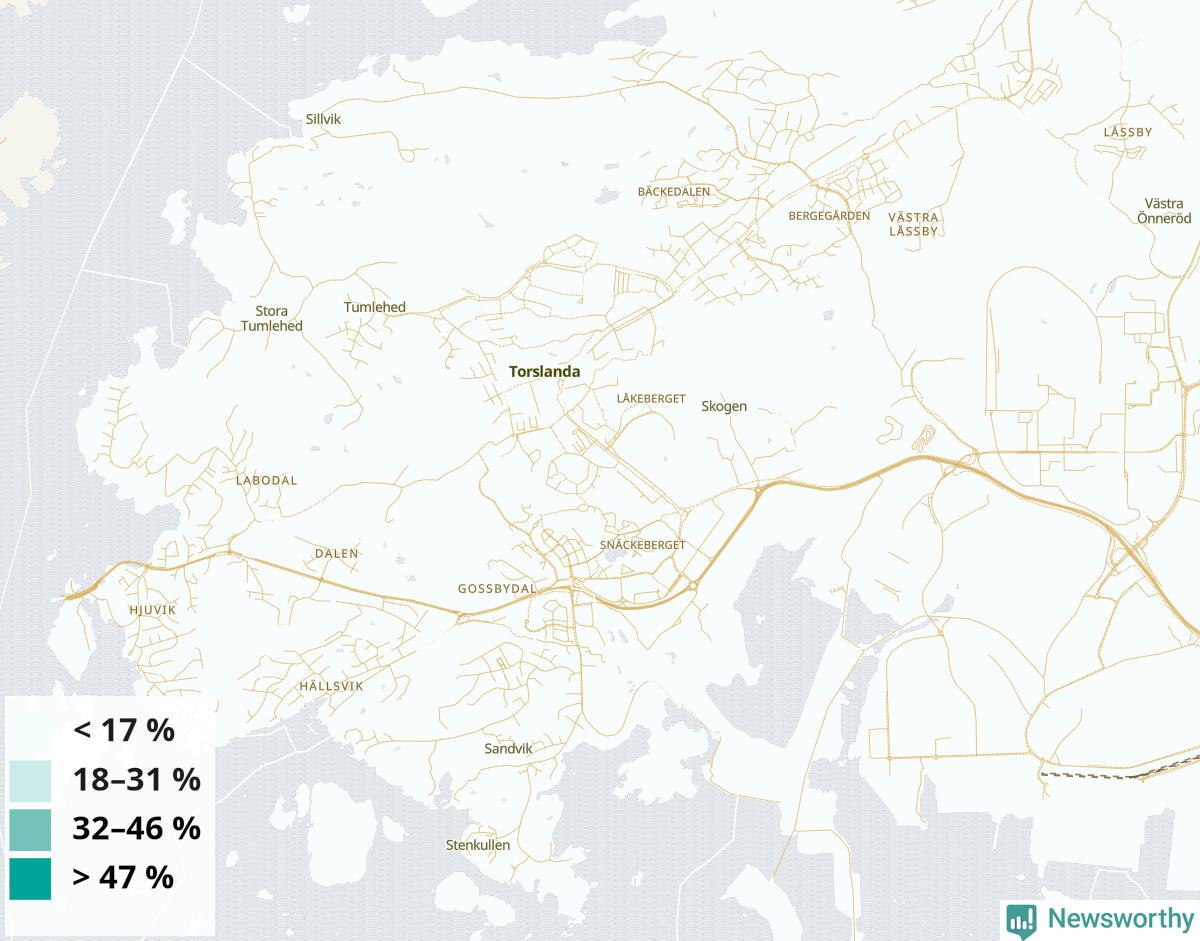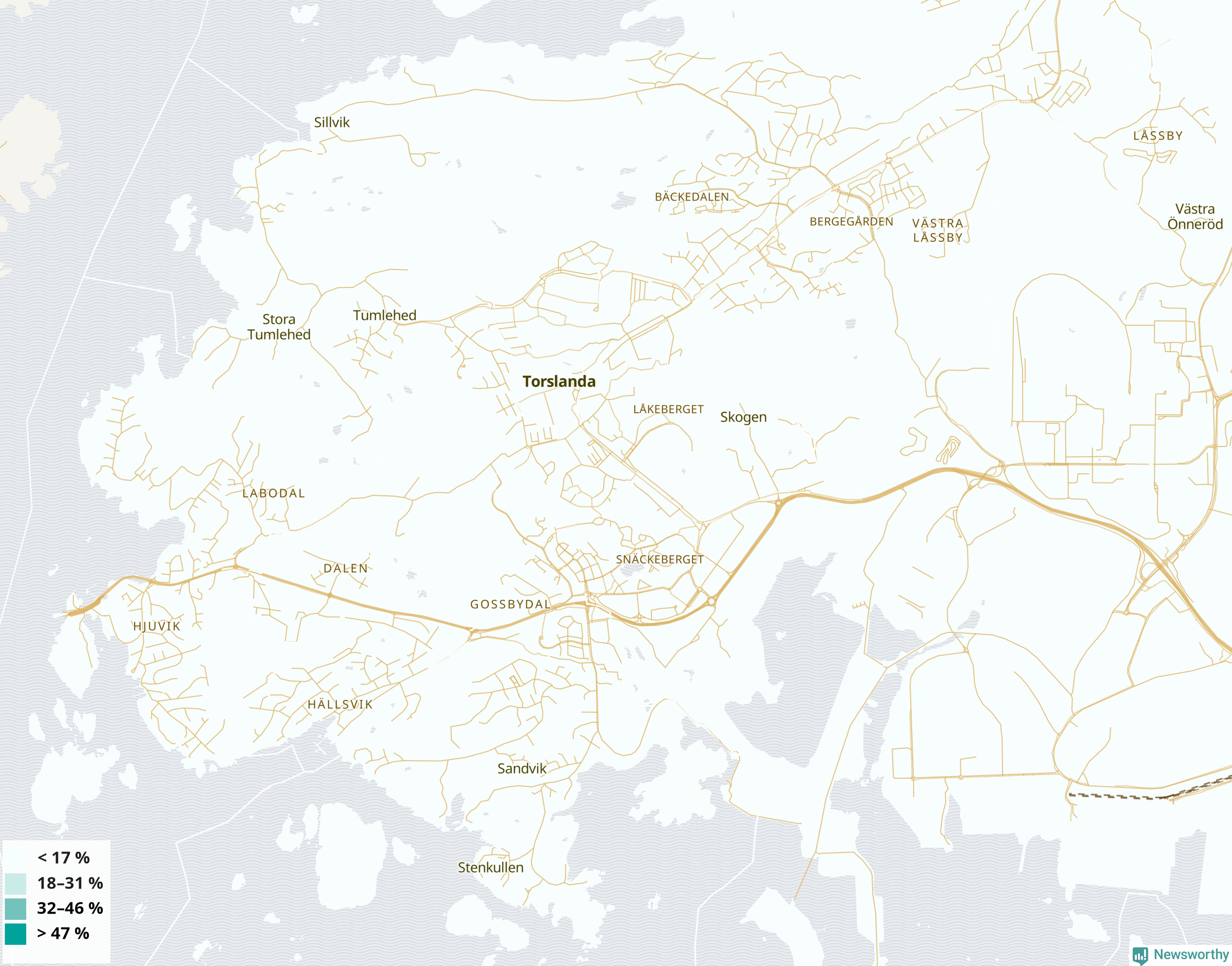 | Partille | 15 % | 20 % | 11 % | Nedre Björndammen (22 %) |