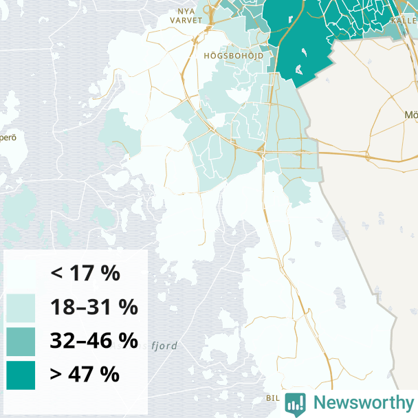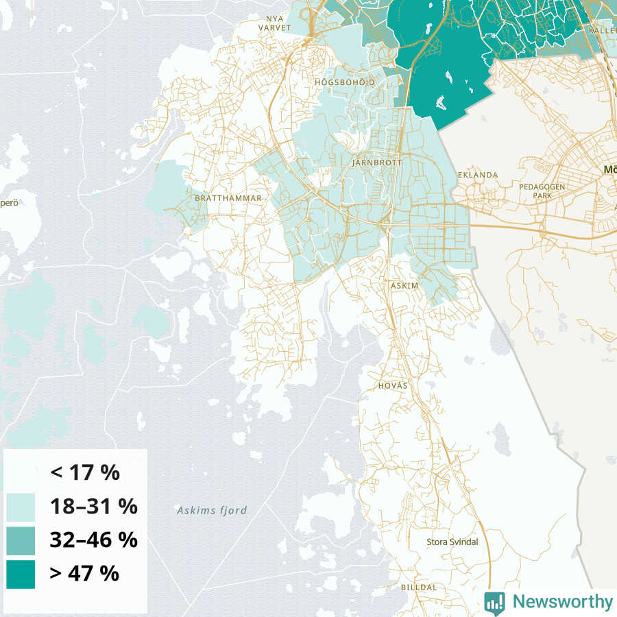 | Alingsås | 35 % | 41 % | 29 % | Noltorp (59 %) |