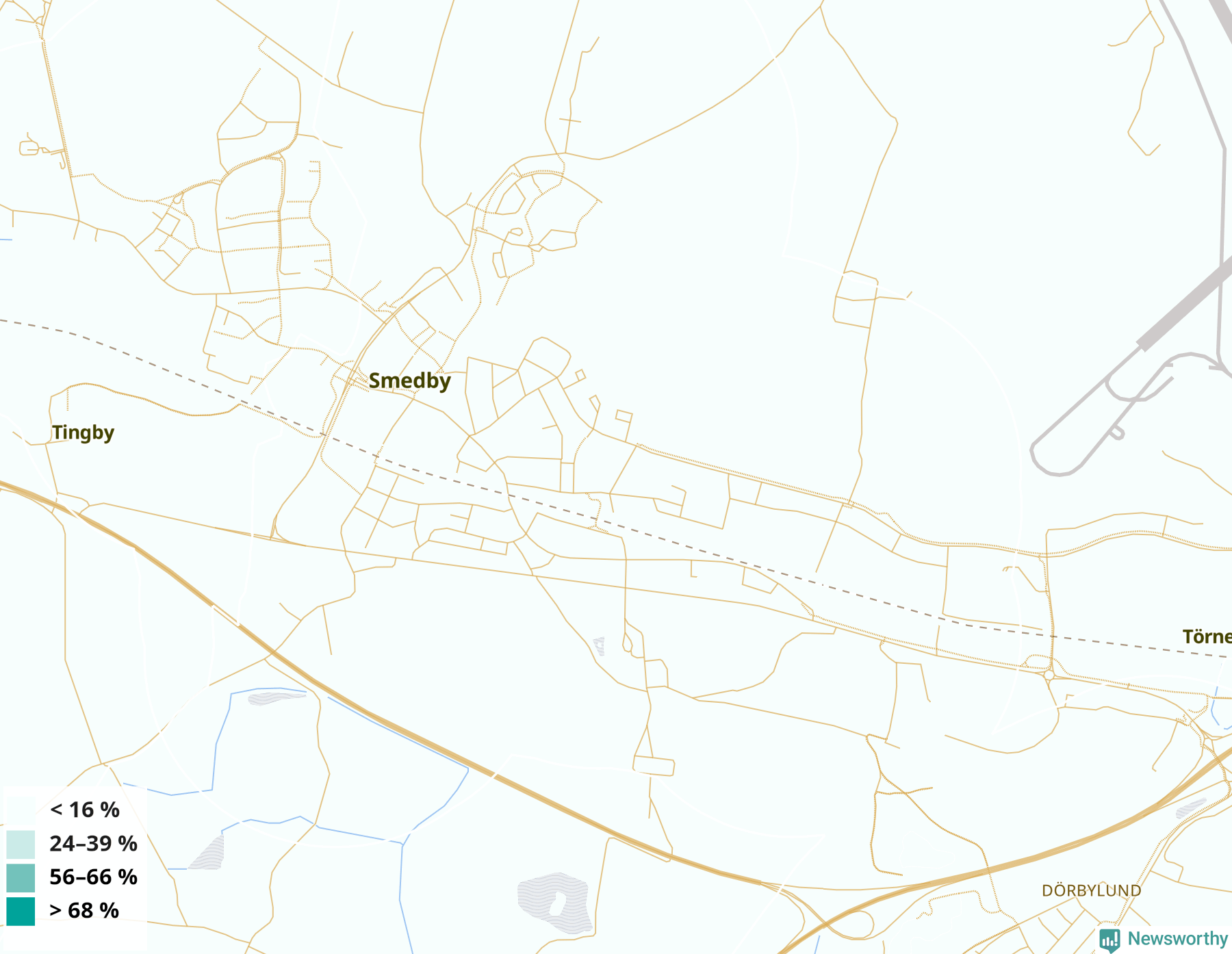 | Västervik | 57 % | 61 % | 52 % | Peru-Arabien (85 %) |