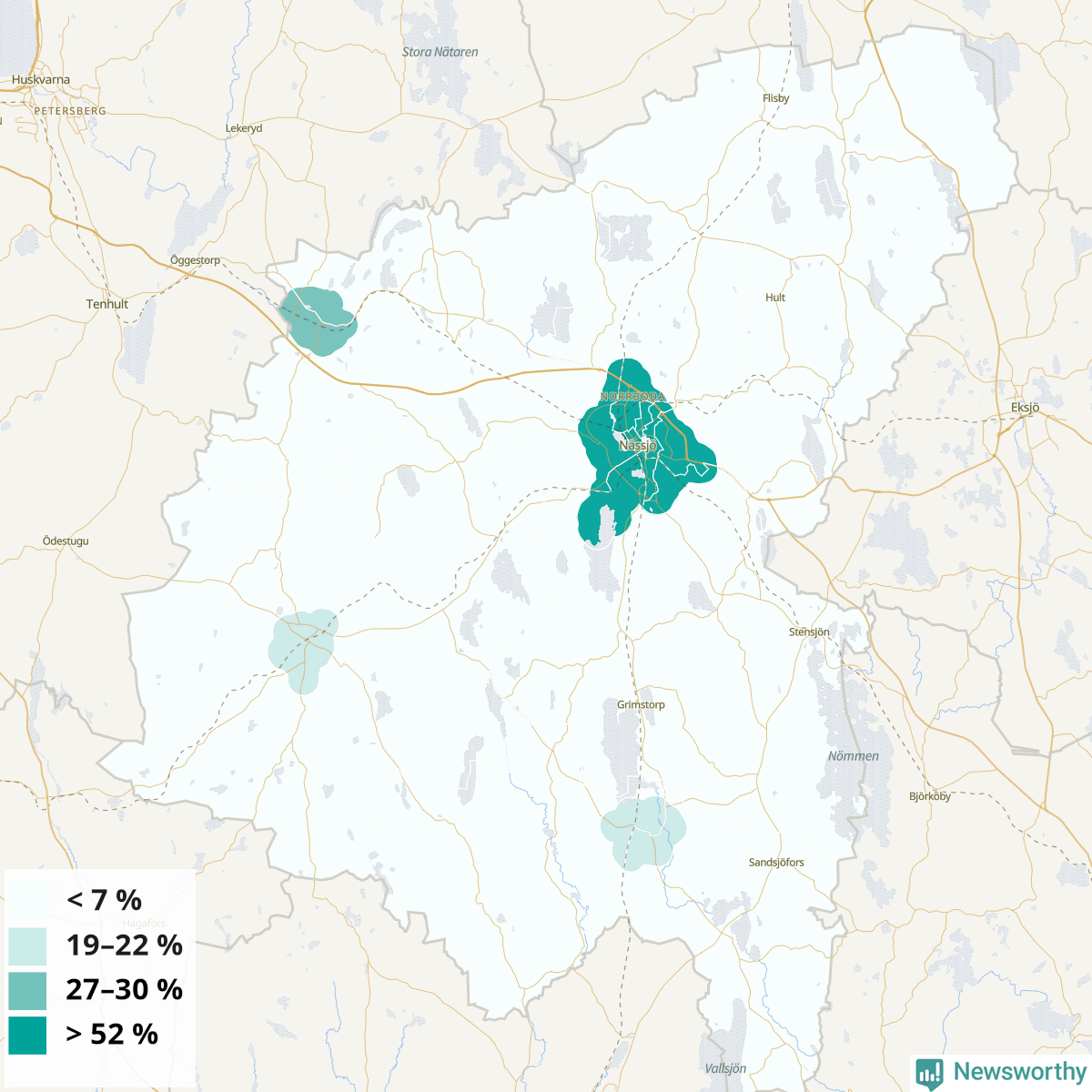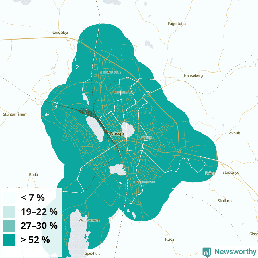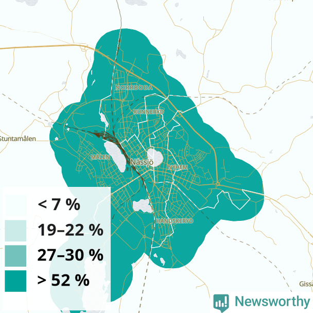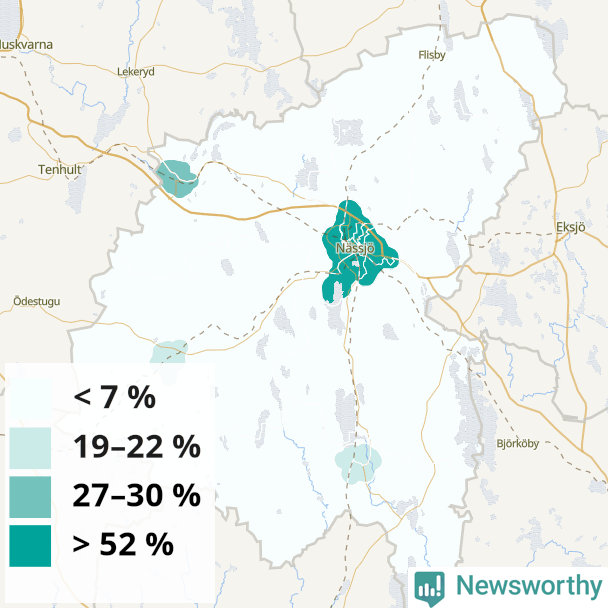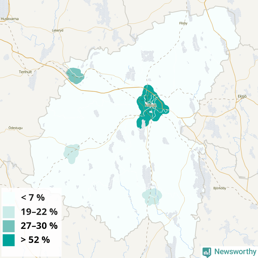 | Nässjö | 40 % | 44 % | 37 % | Nässjö centrum (64 %) |