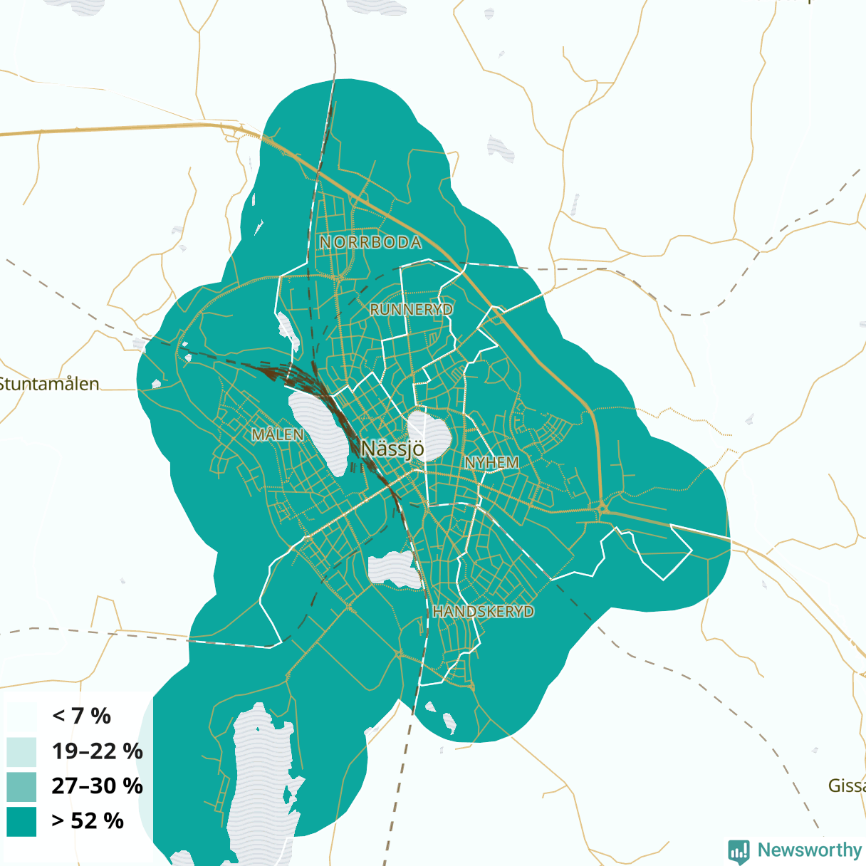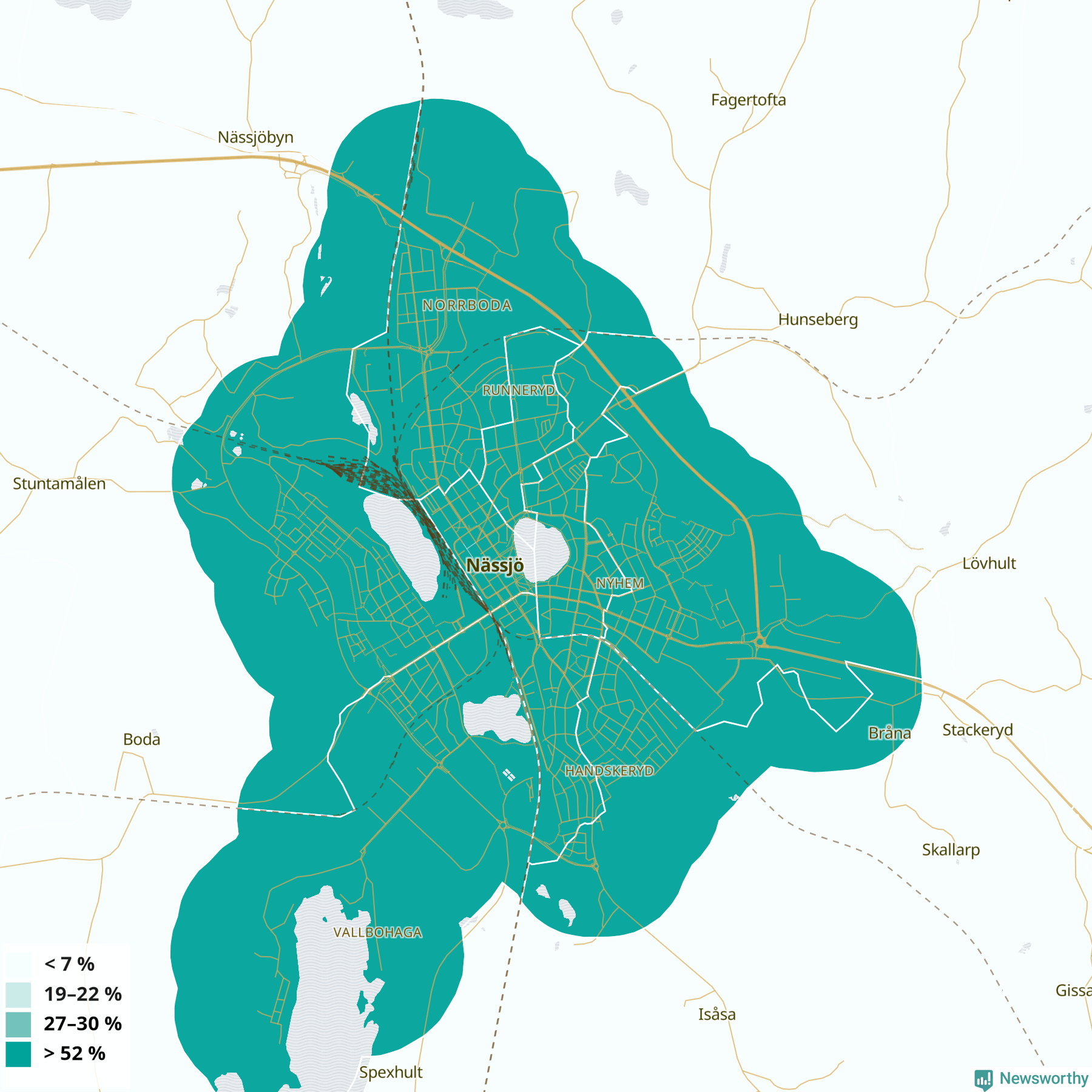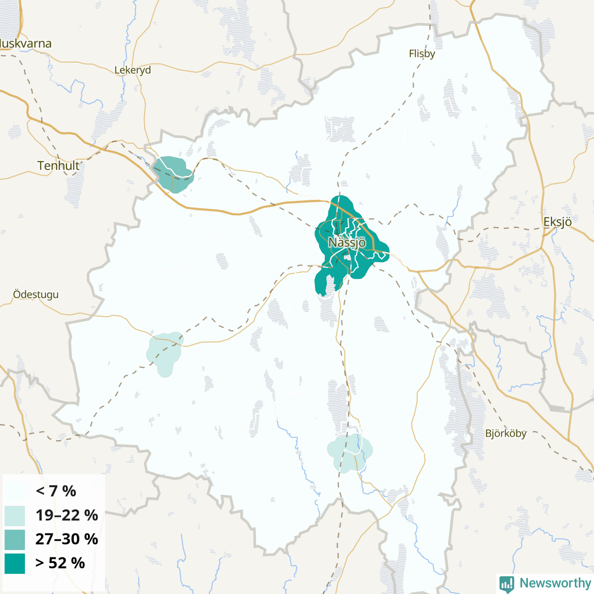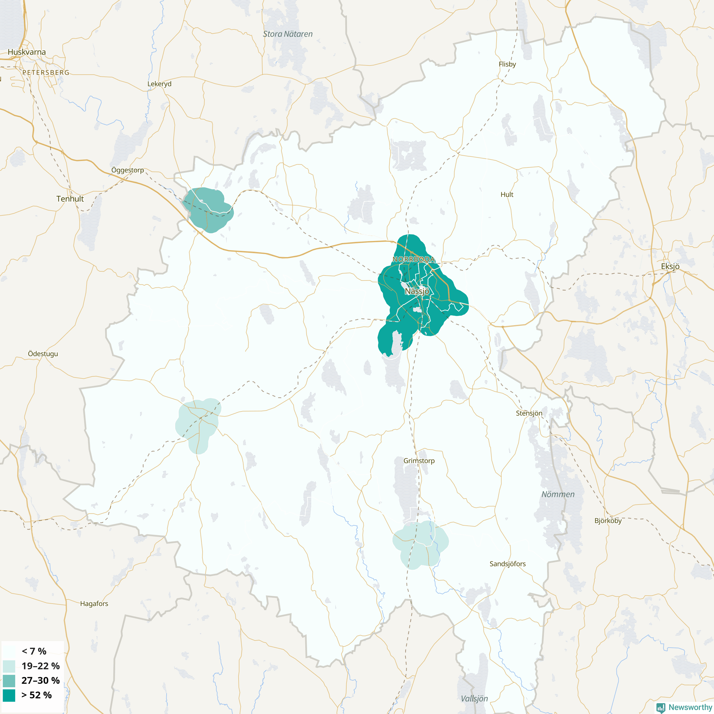 | Nässjö | 40 % | 44 % | 37 % | Nässjö centrum (64 %) |