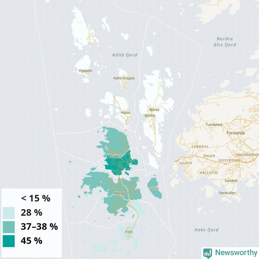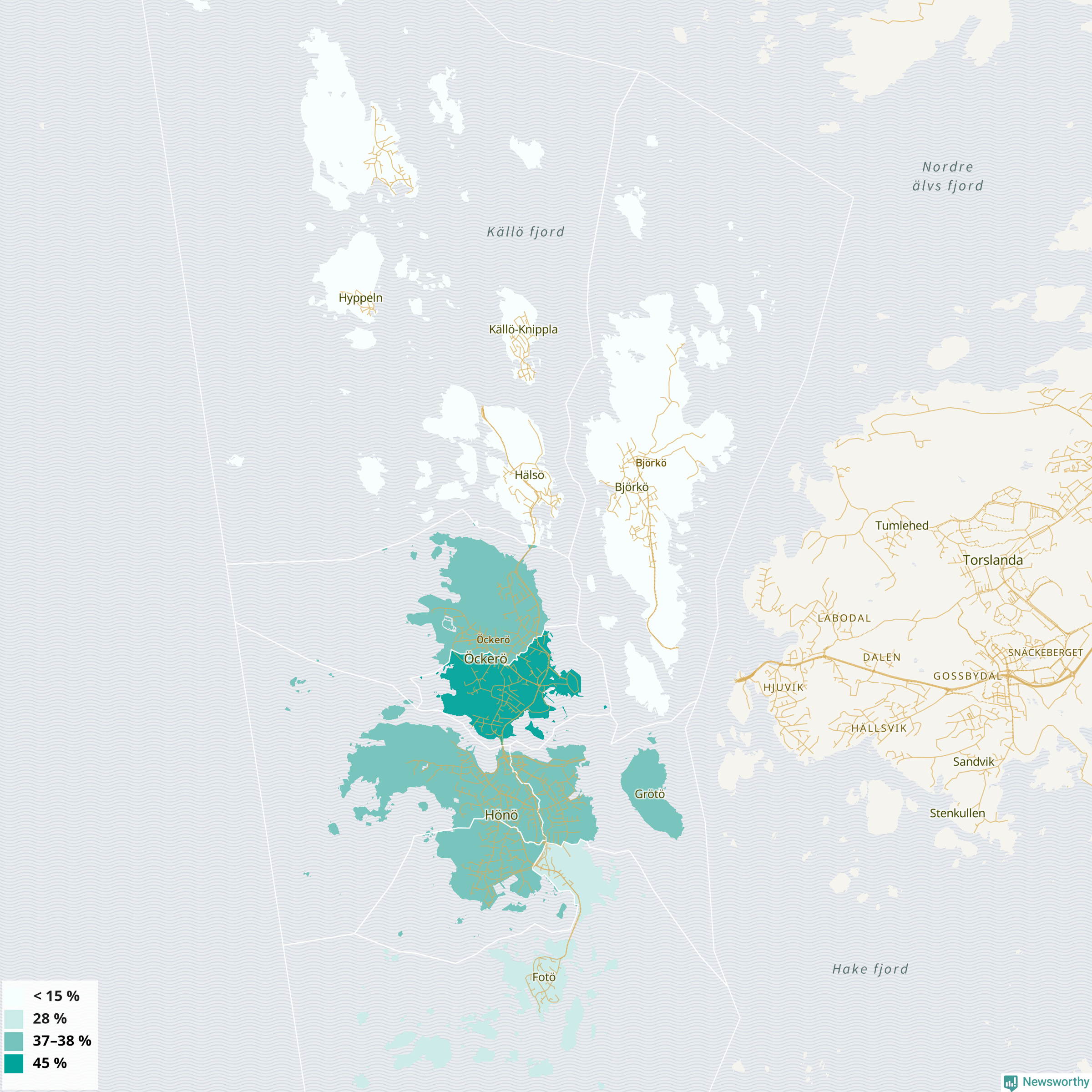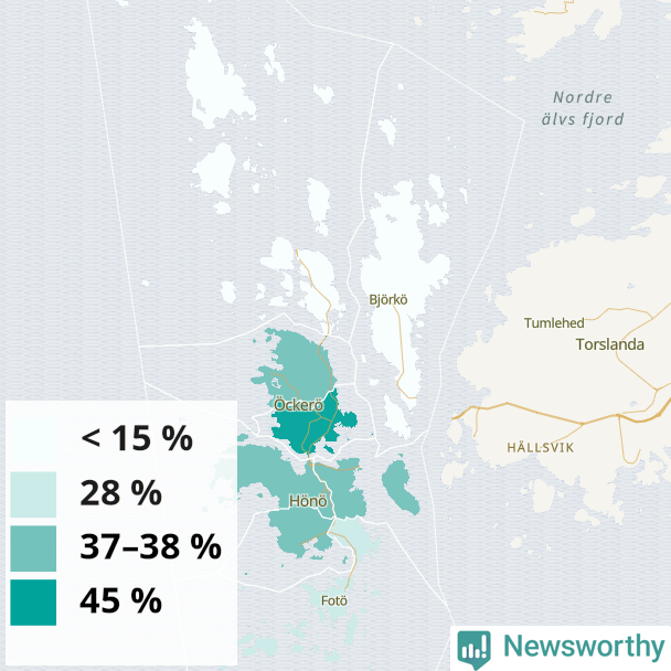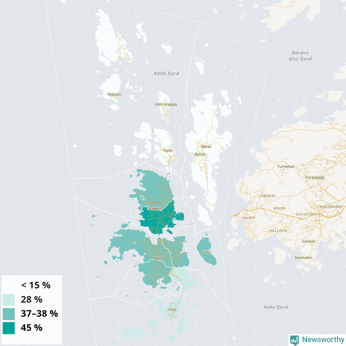 | Öckerö | 32 % | 38 % | 27 % | Södra Öckerö (45 %) |