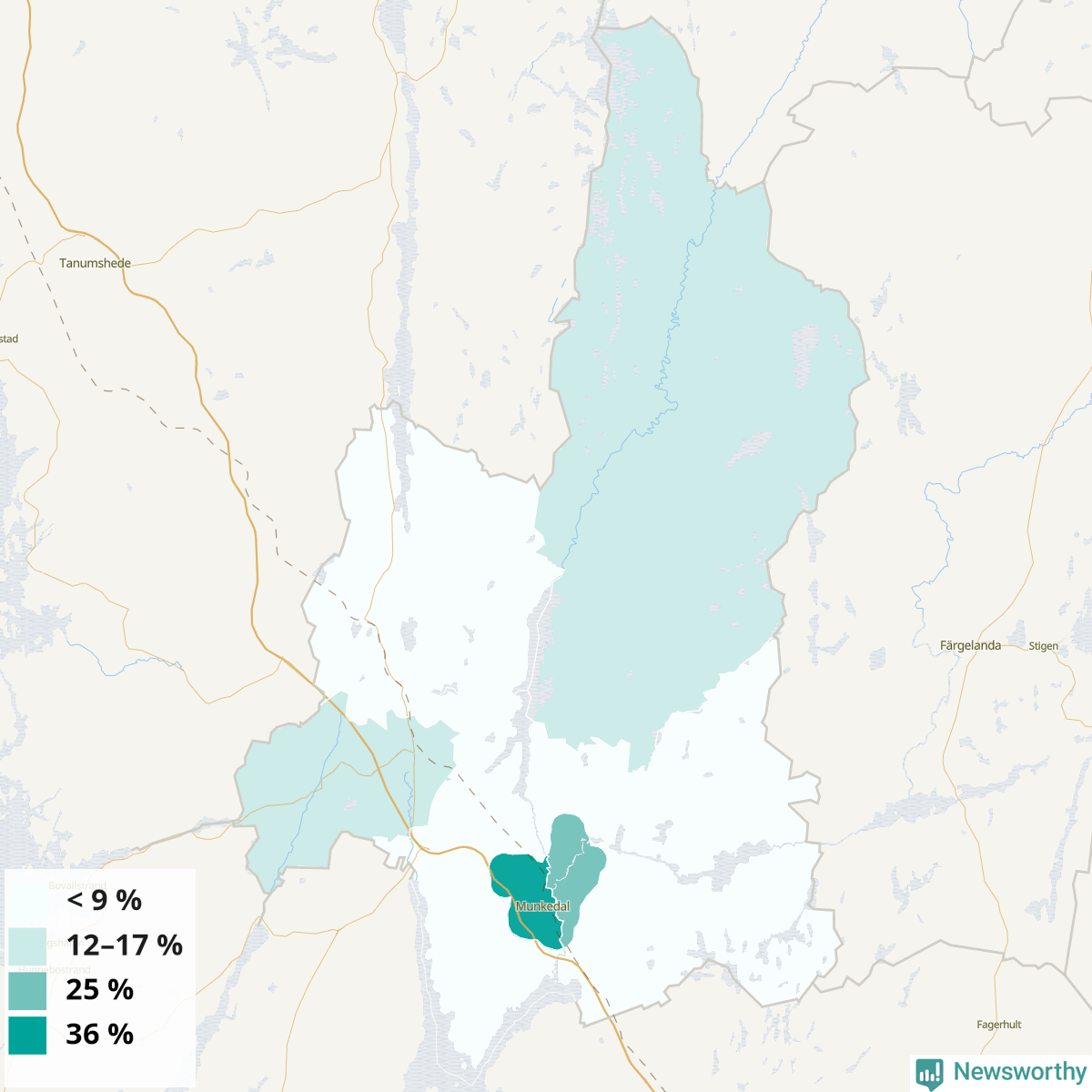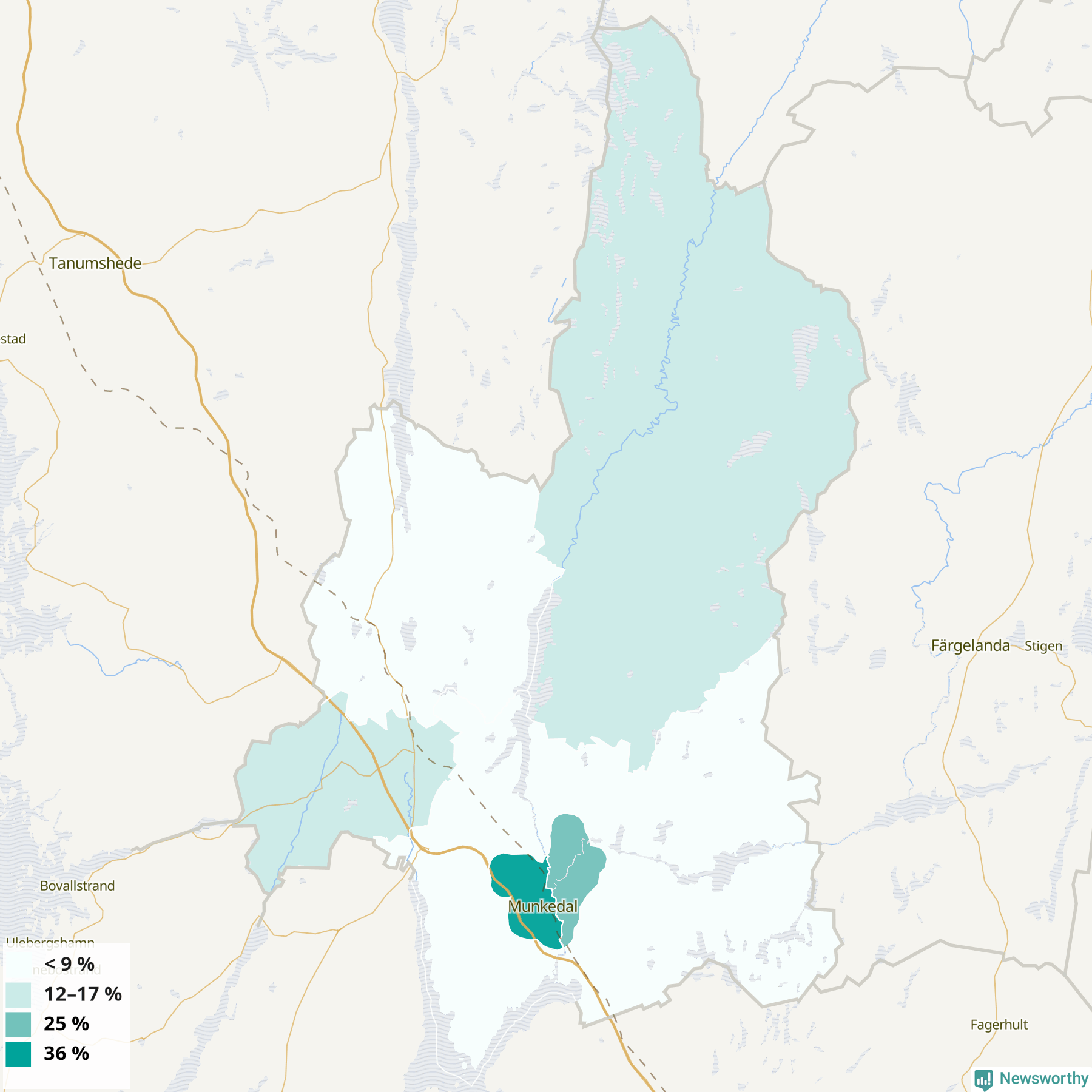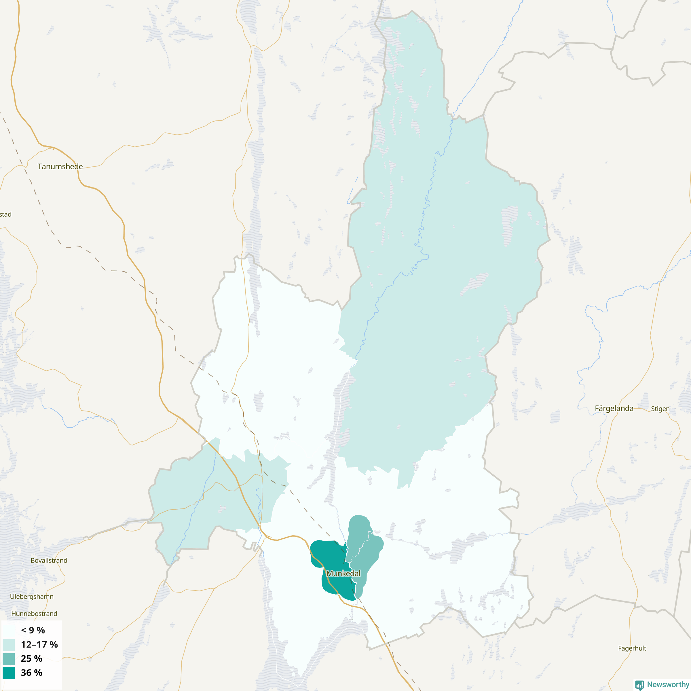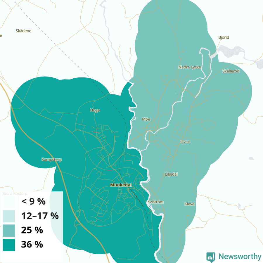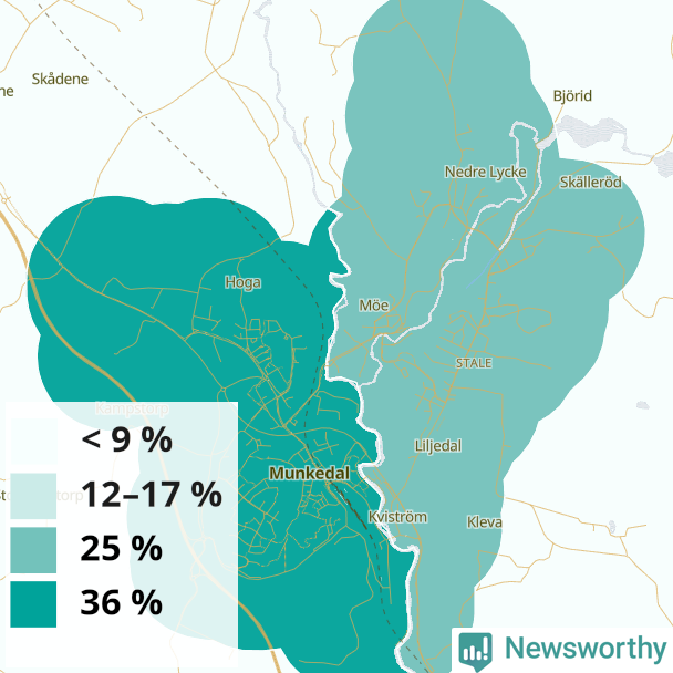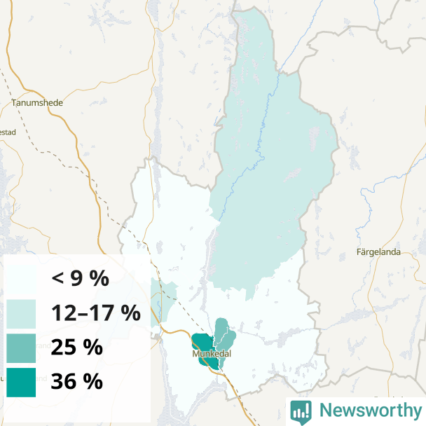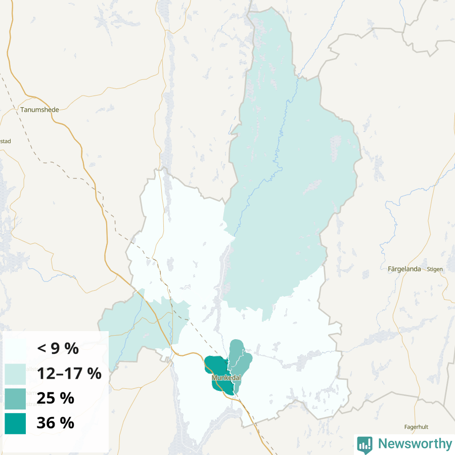 | Munkedals västra tätort | 36 % |