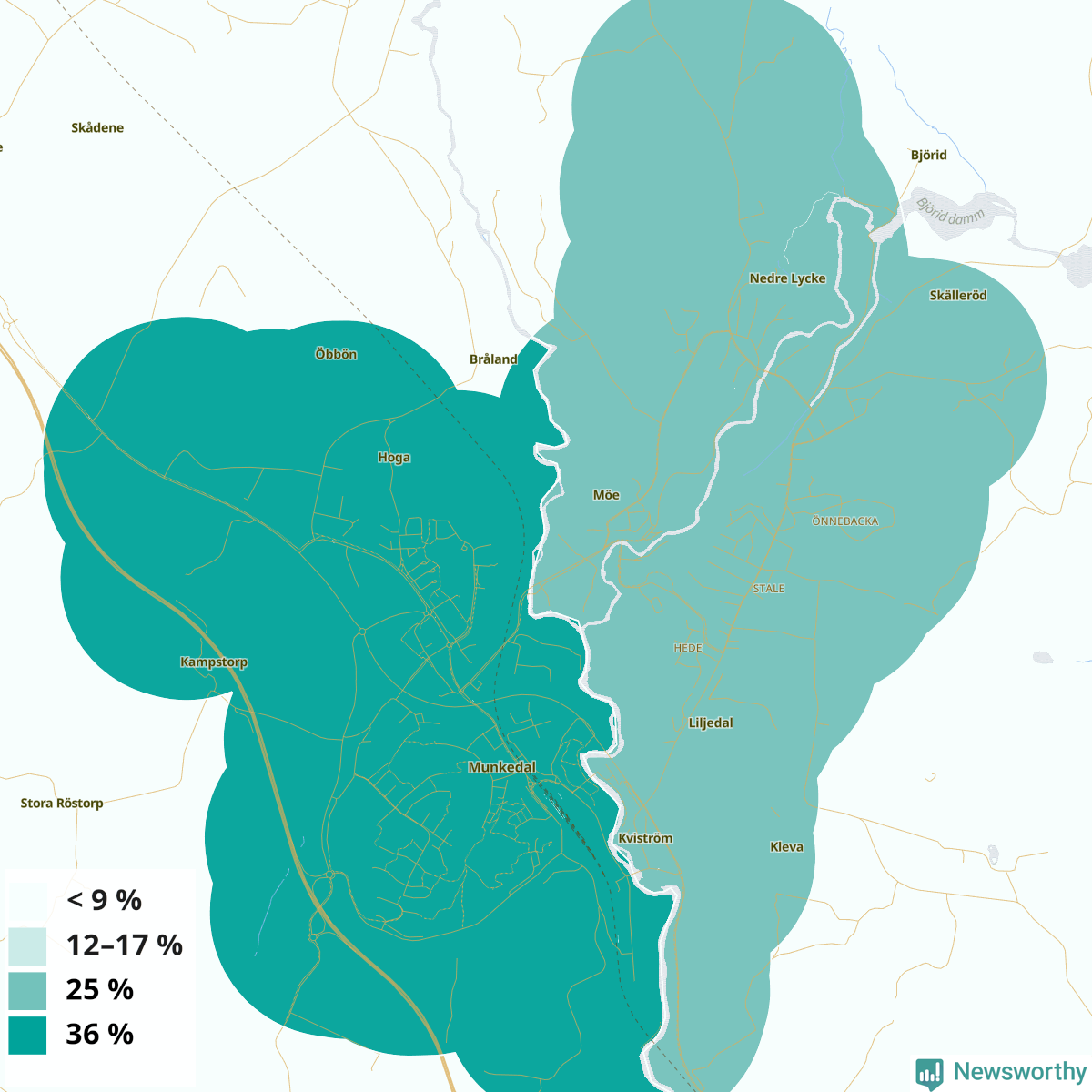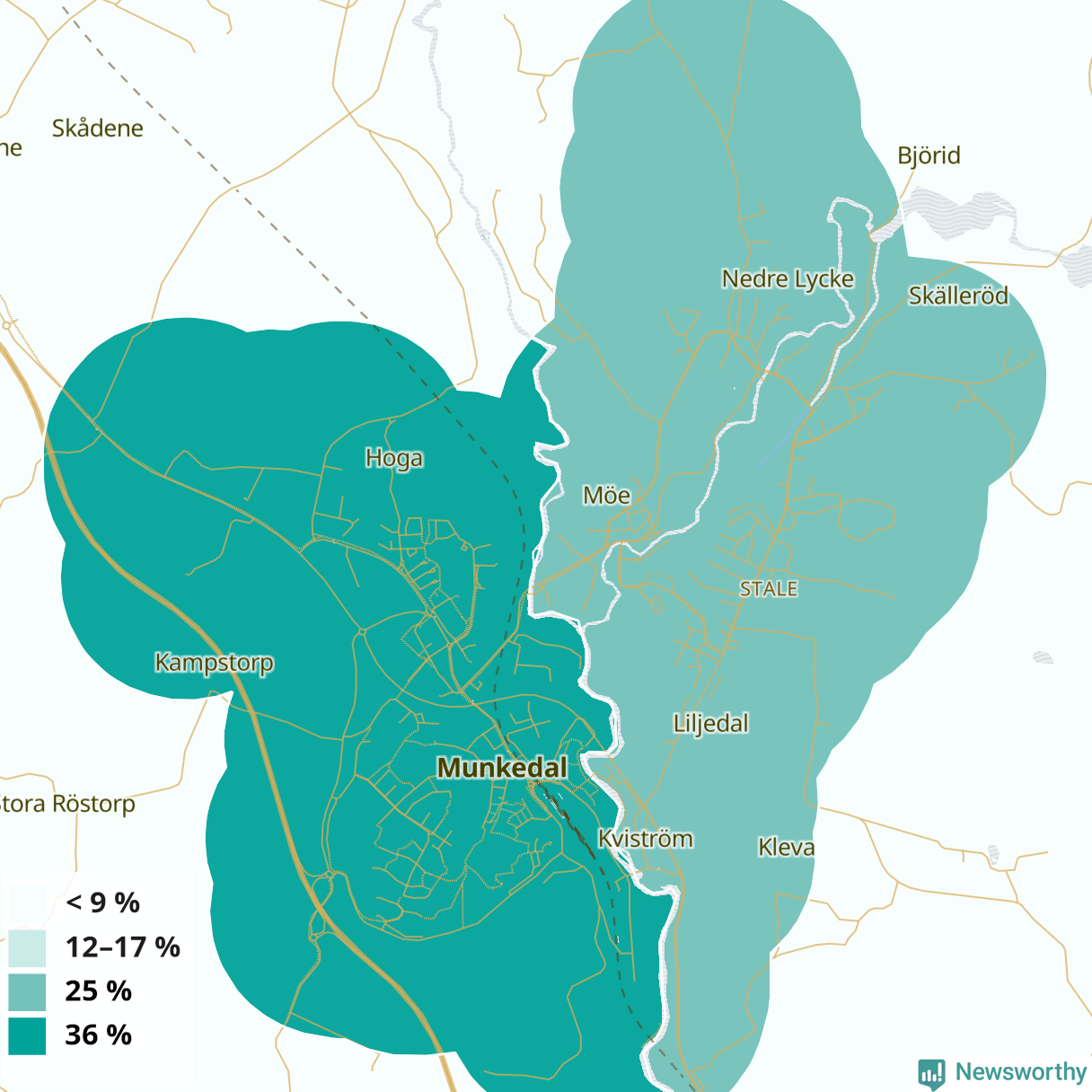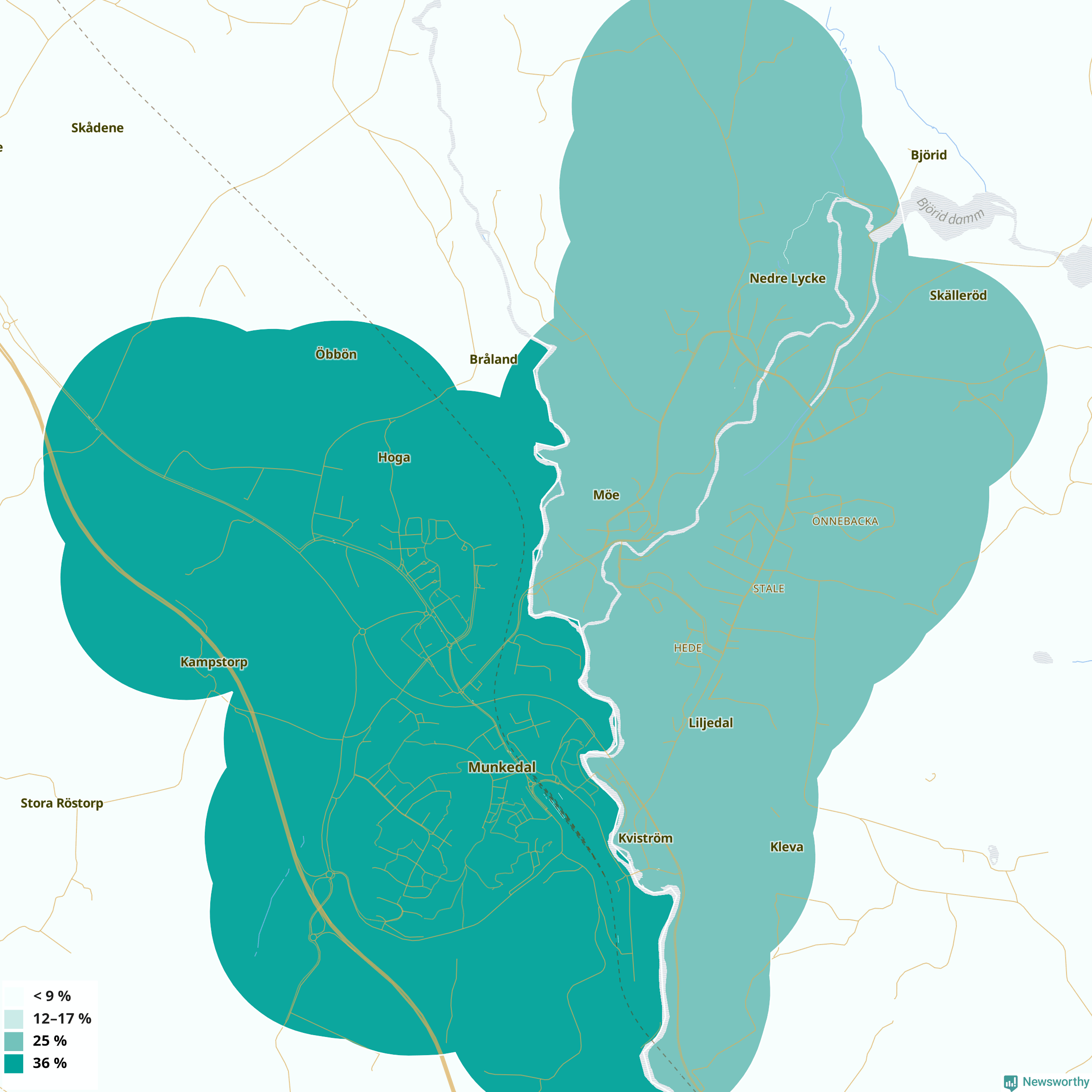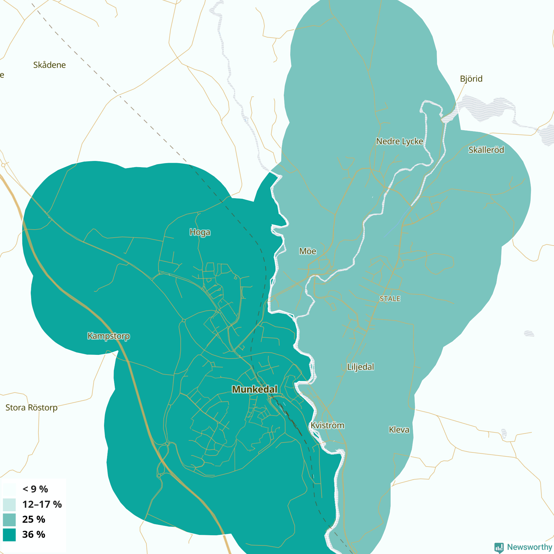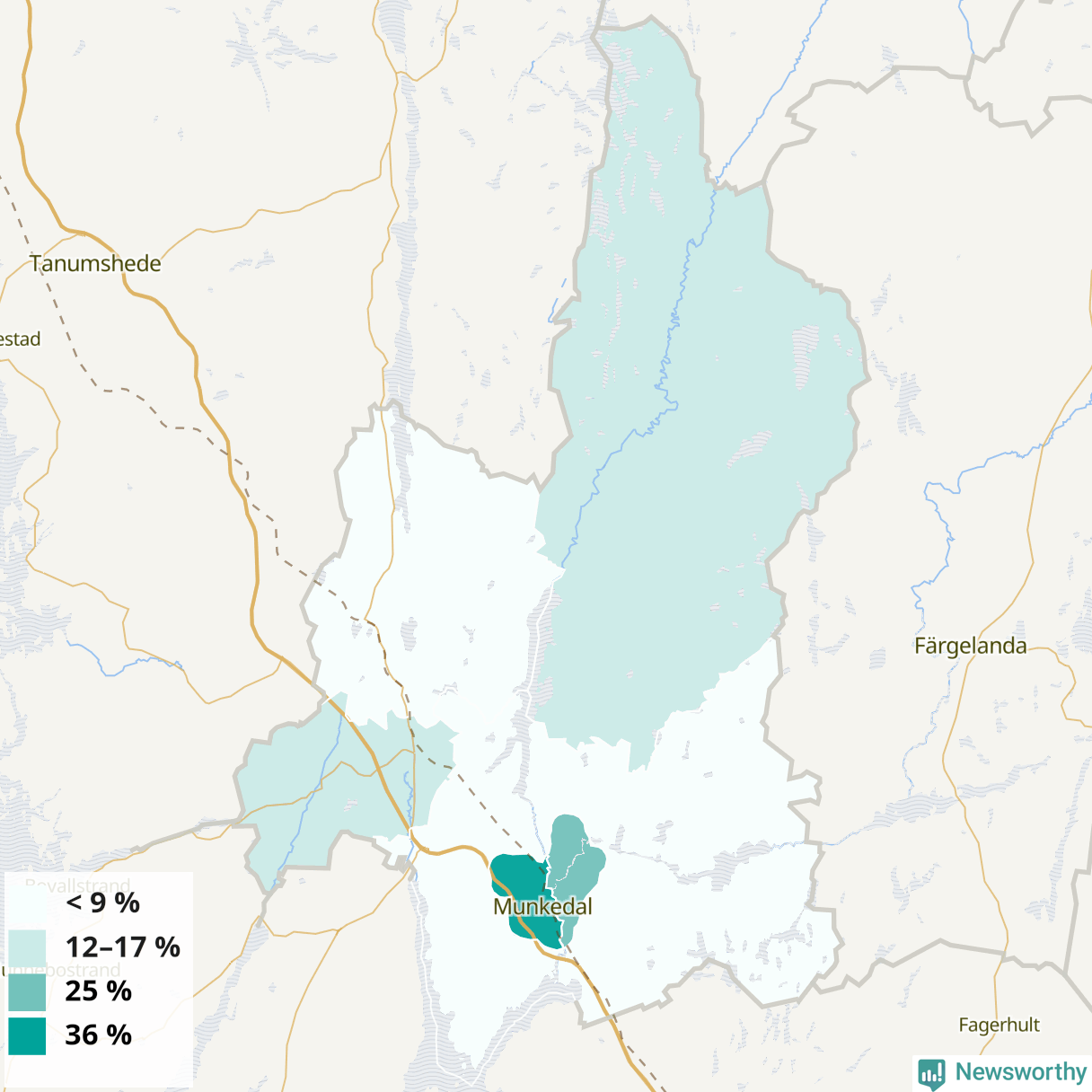 | Munkedals västra tätort | 36 % |