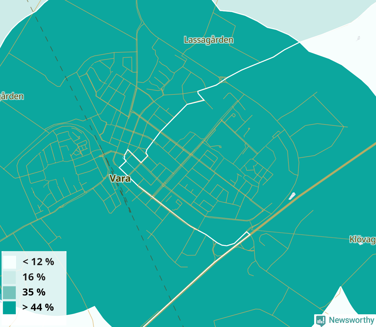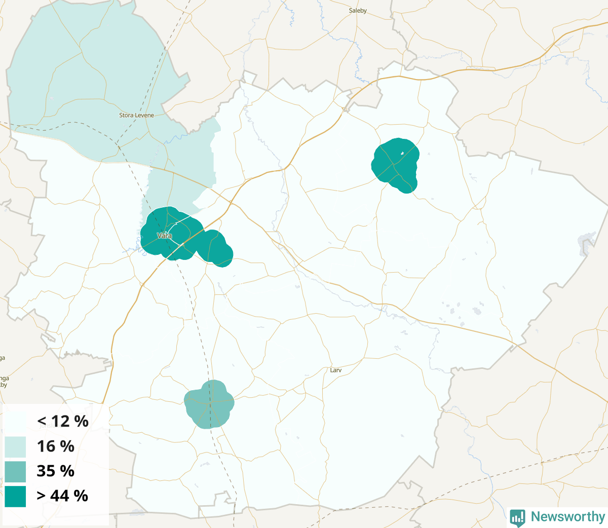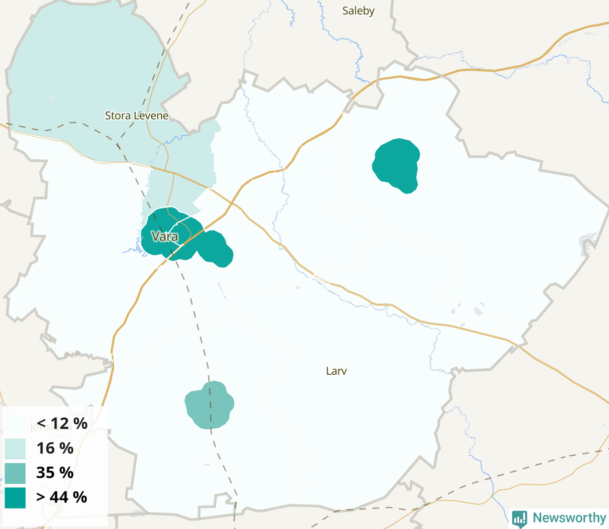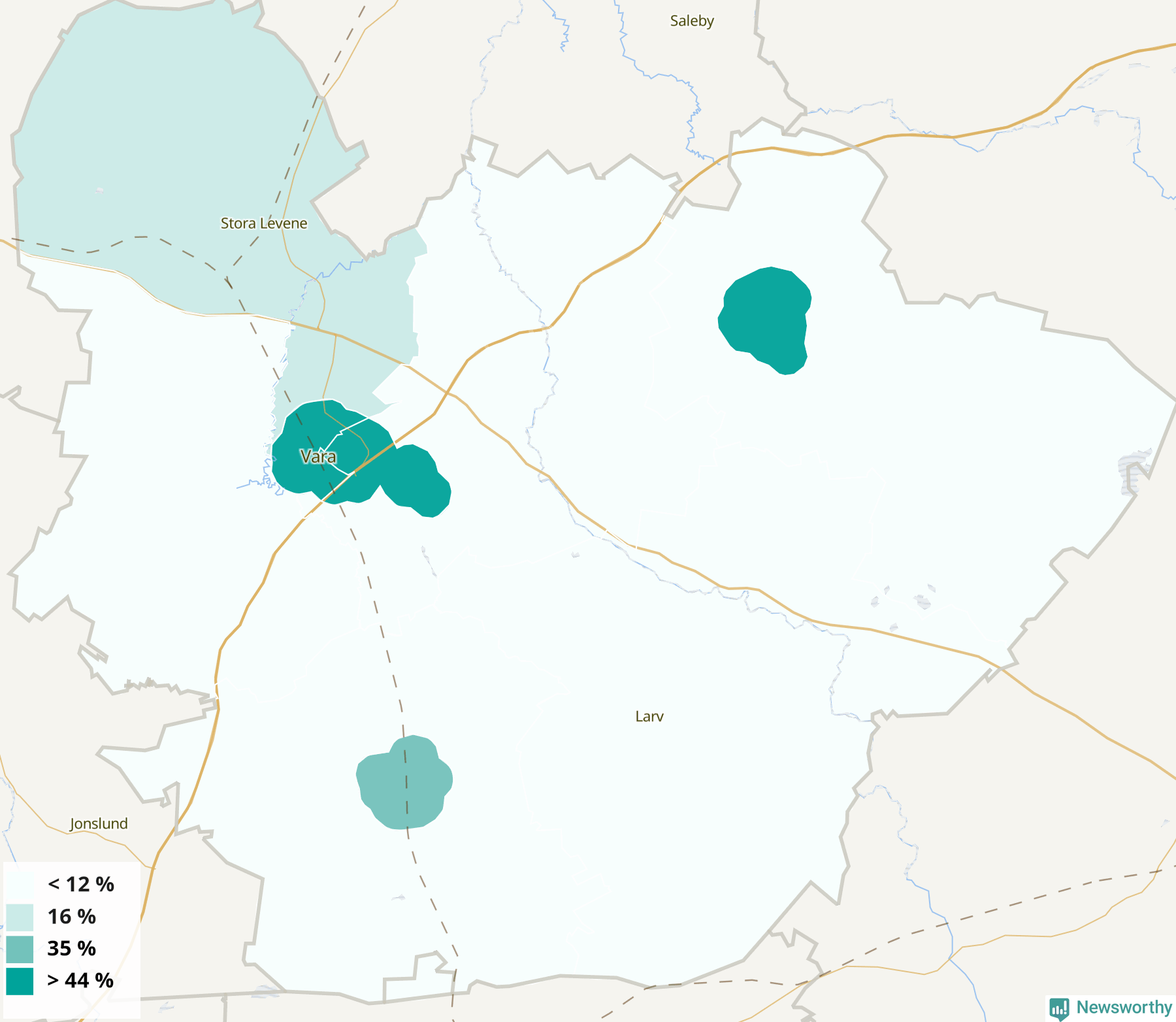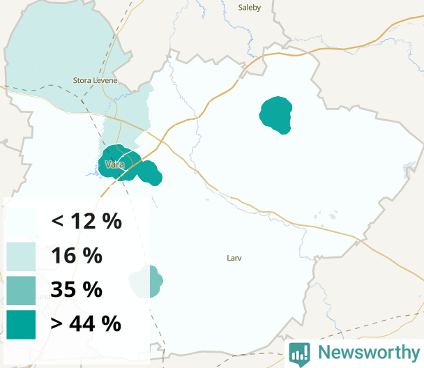 | Kvänum | 44 % |