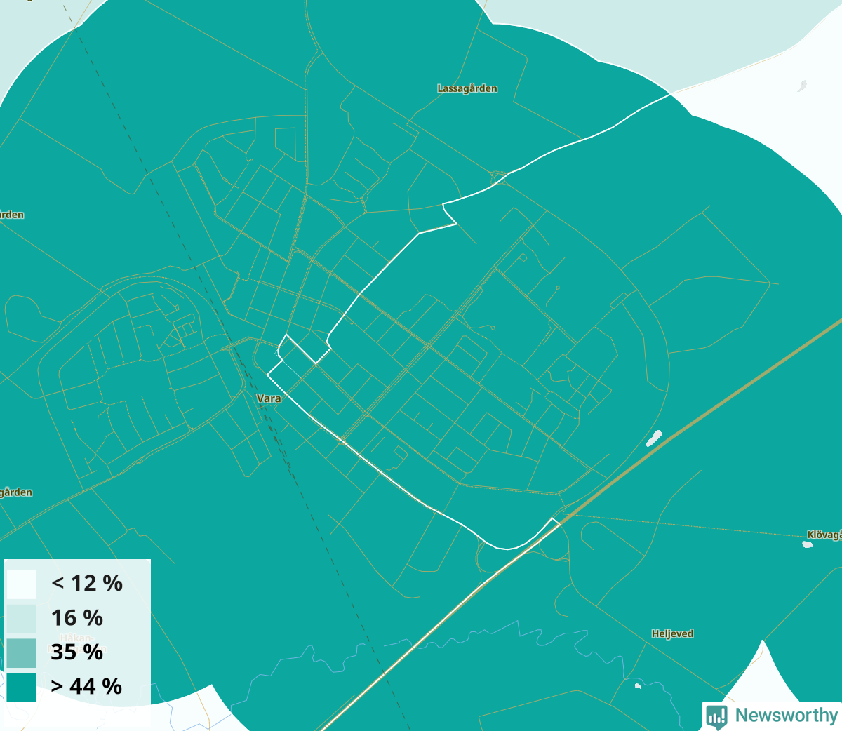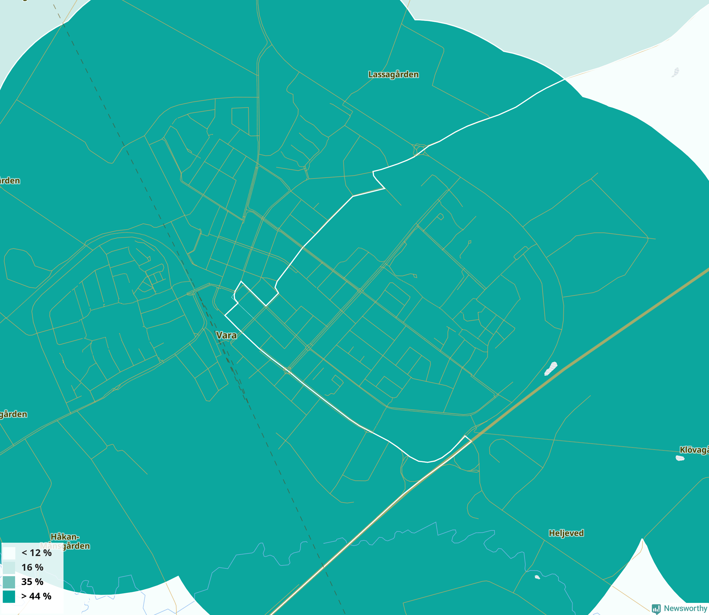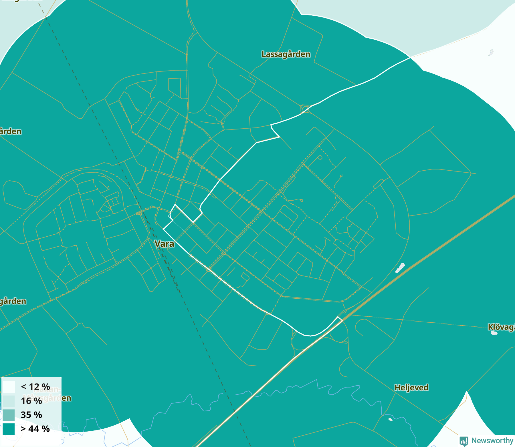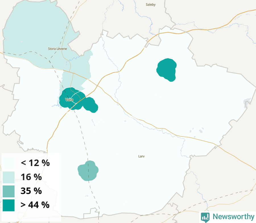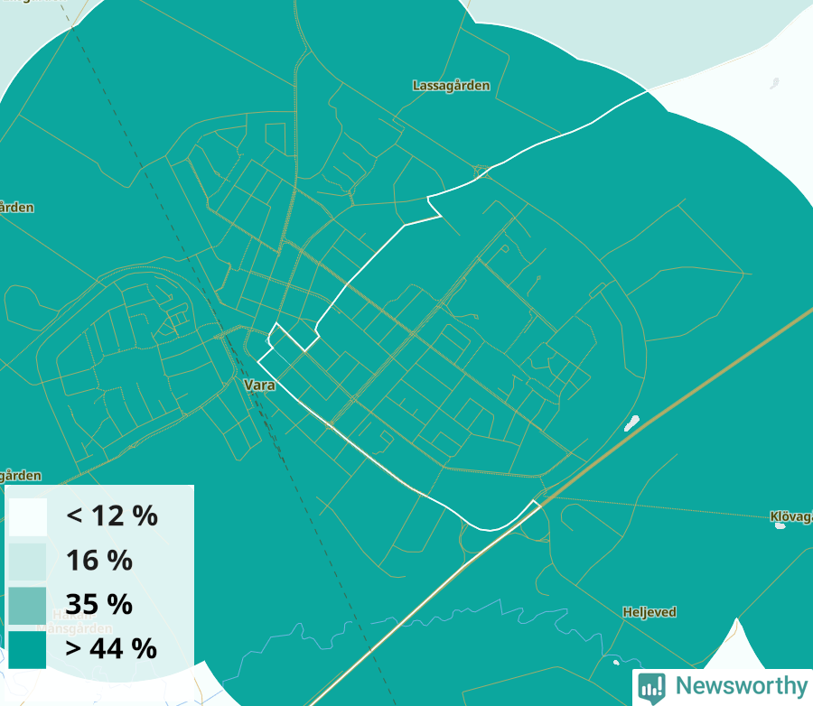 | Vara | 26 % | 26 % | 26 % | Vara östra-Emtunga (46 %) |