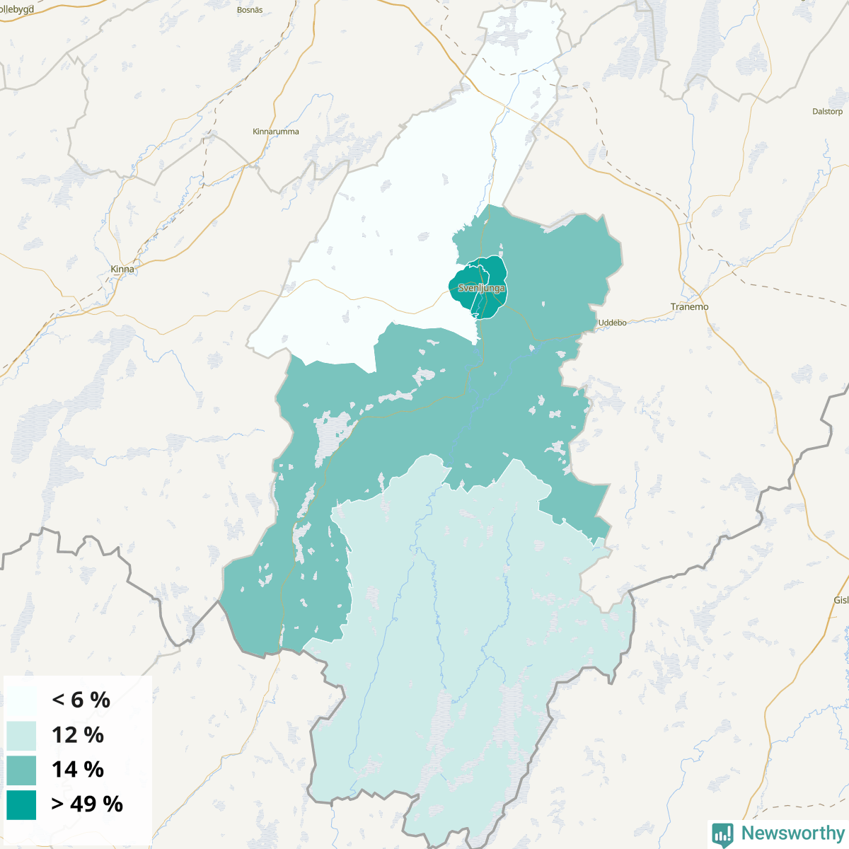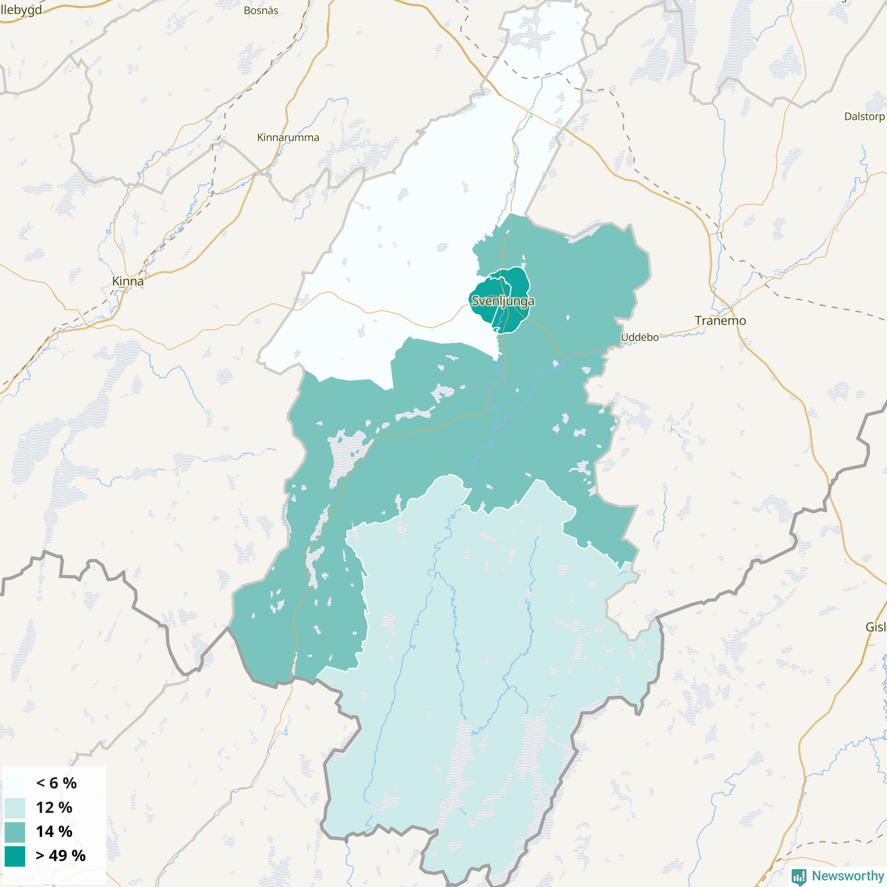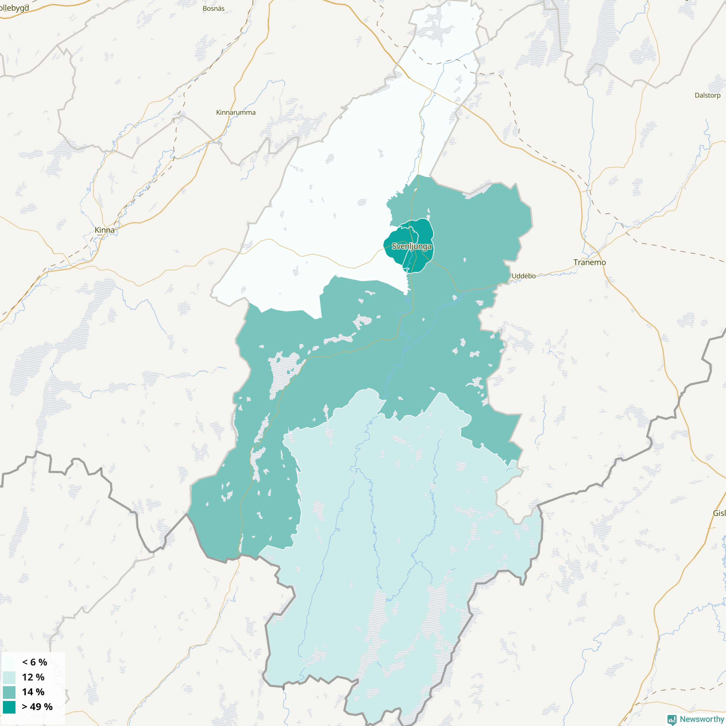 | Svenljunga östra tätort | 49 % |