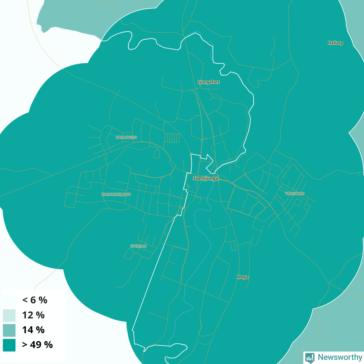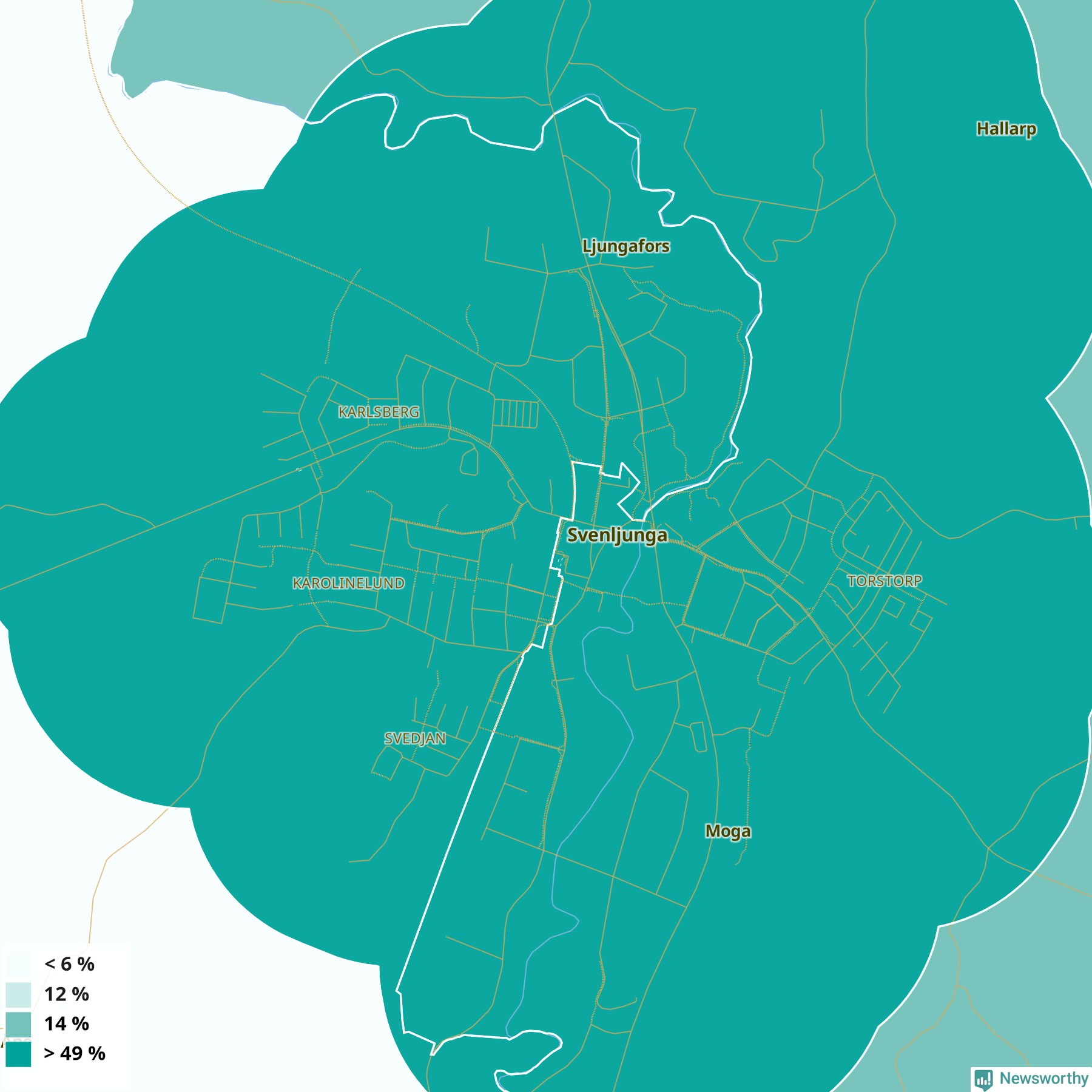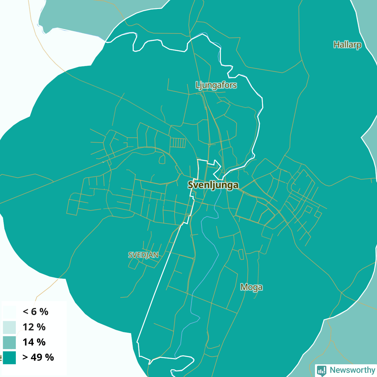 | Svenljunga östra tätort | 49 % |