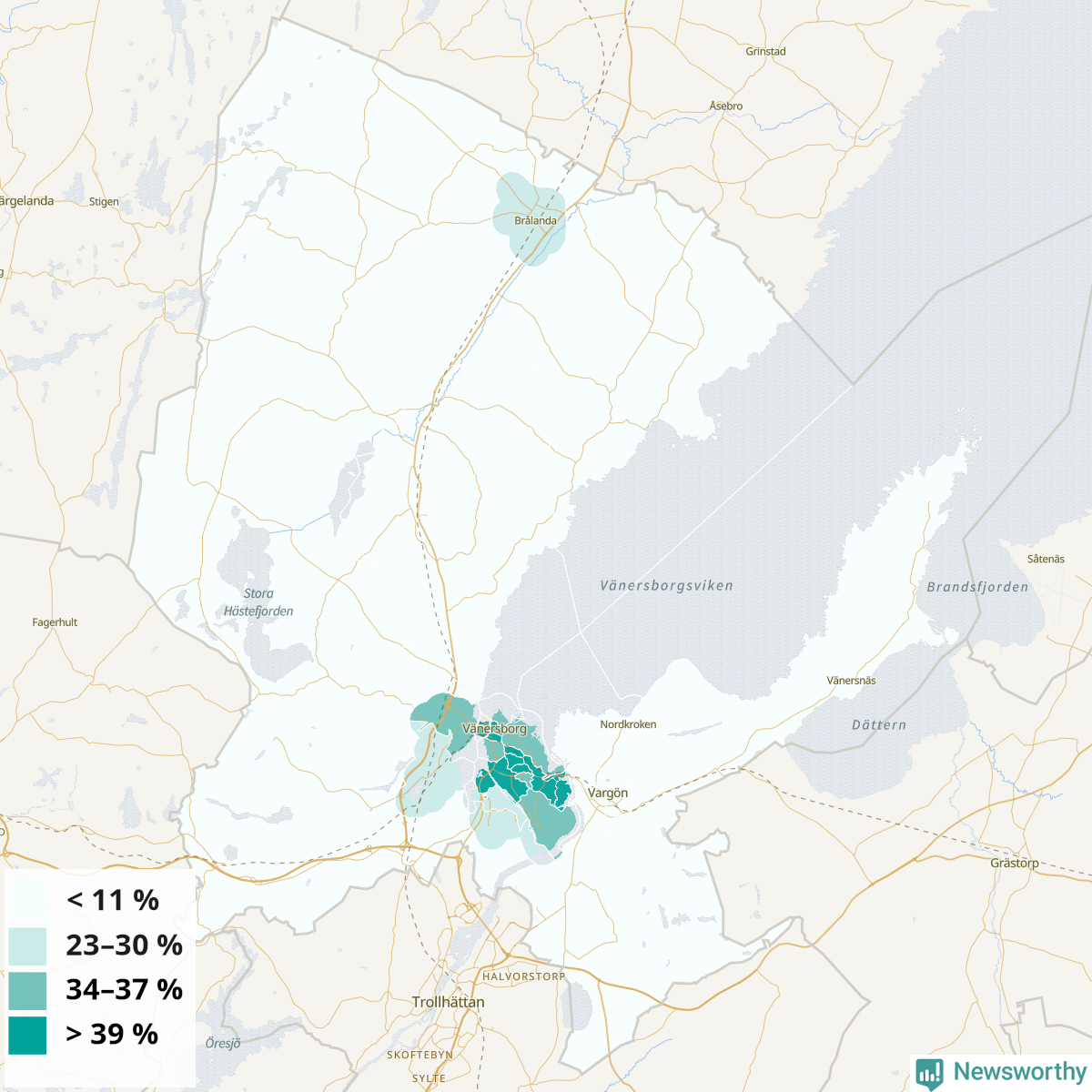 | Brålanda tätort | 23 % |