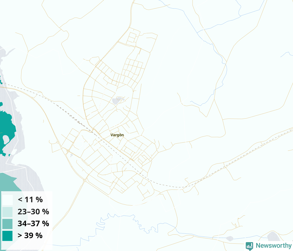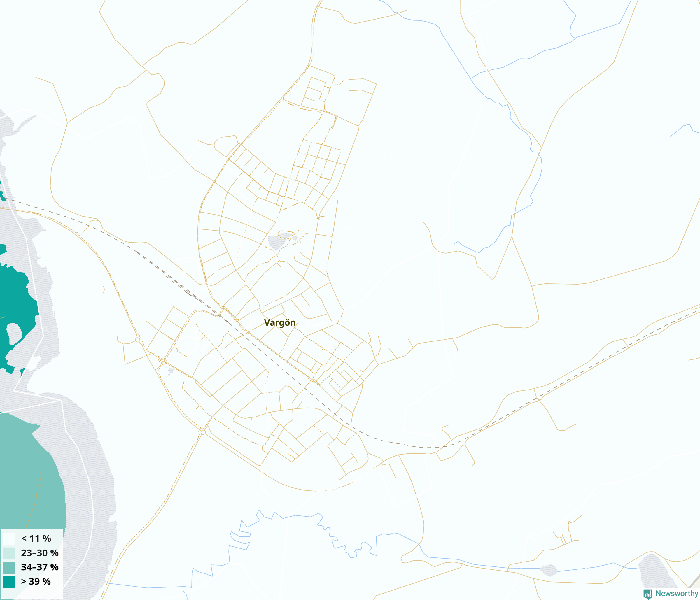 | Svenljunga | 24 % | 28 % | 20 % | Svenljunga västra tätort (50 %) |
