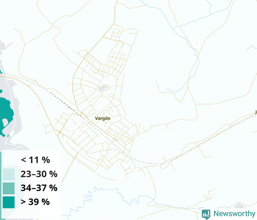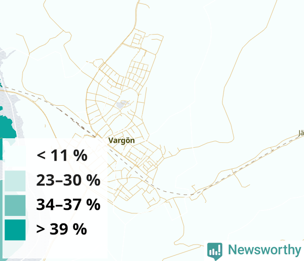 | Vårgårda | 29 % | 29 % | 29 % | Vårgårda tätort väst-Centrum-Hoberg (53 %) |