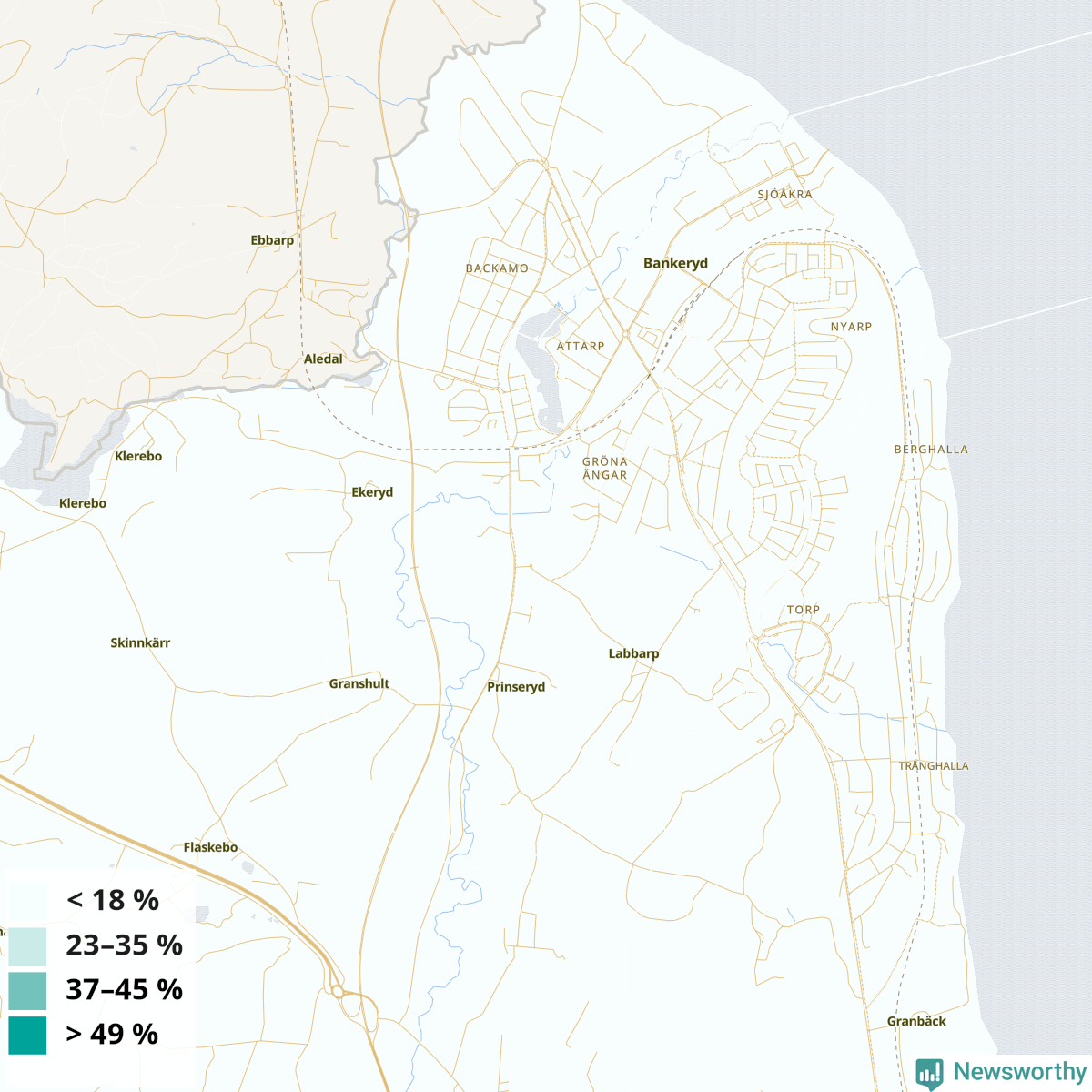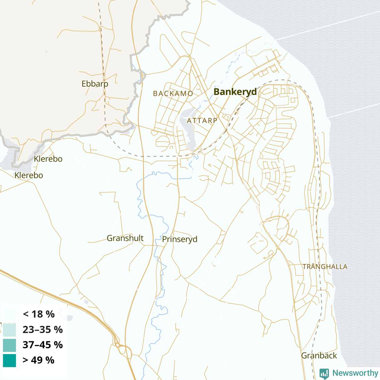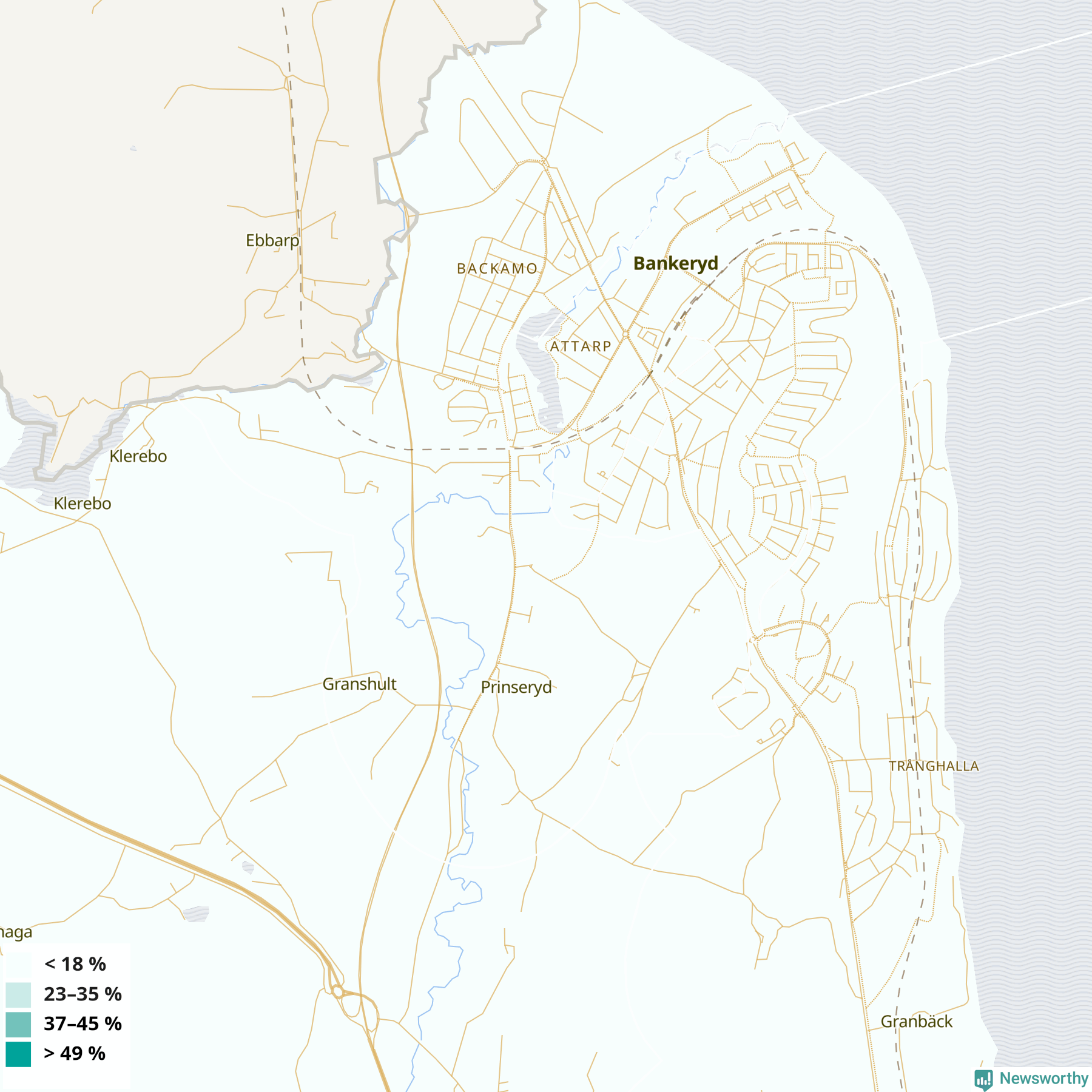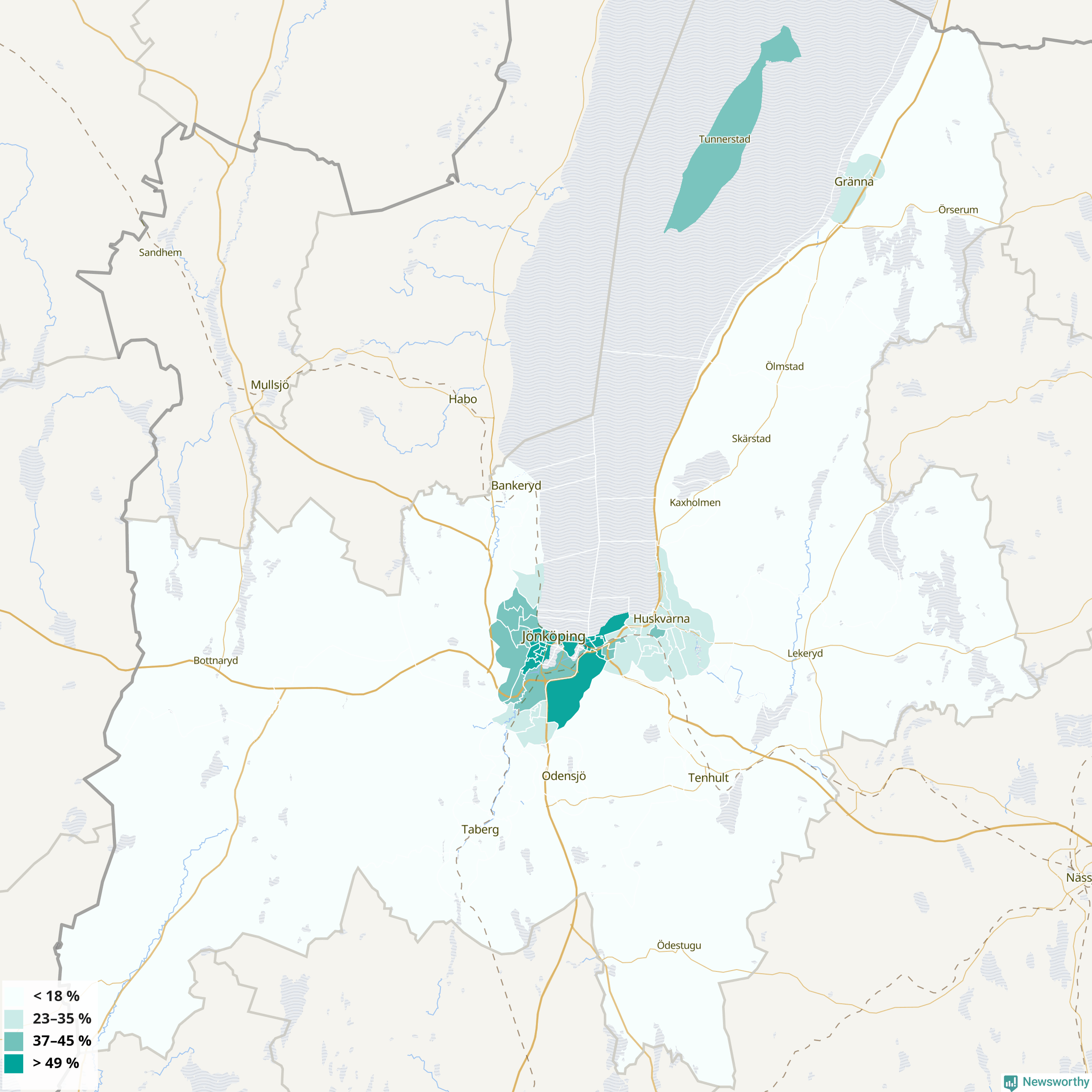 | Nässjö | 40 % | 44 % | 37 % | Nässjö centrum (64 %) |