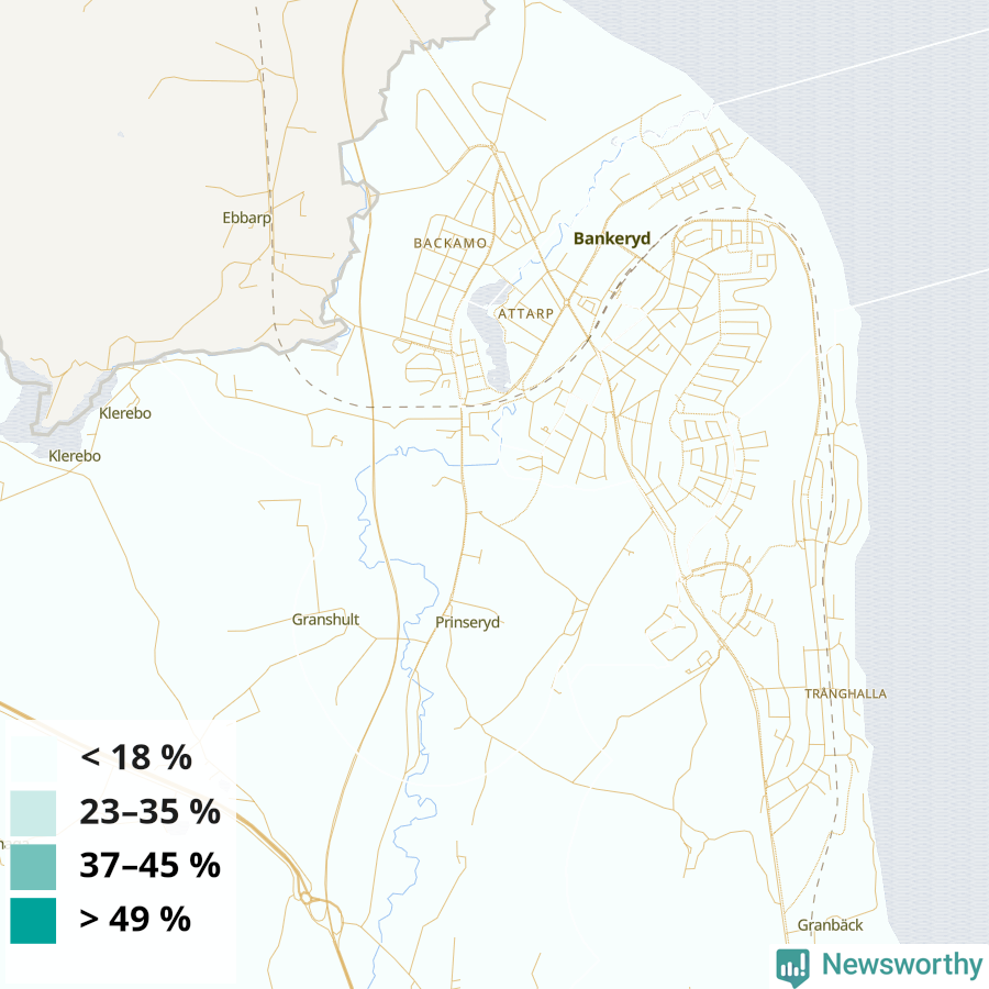 | Tranås | 62 % | 63 % | 60 % | Ängaryd (80 %) |