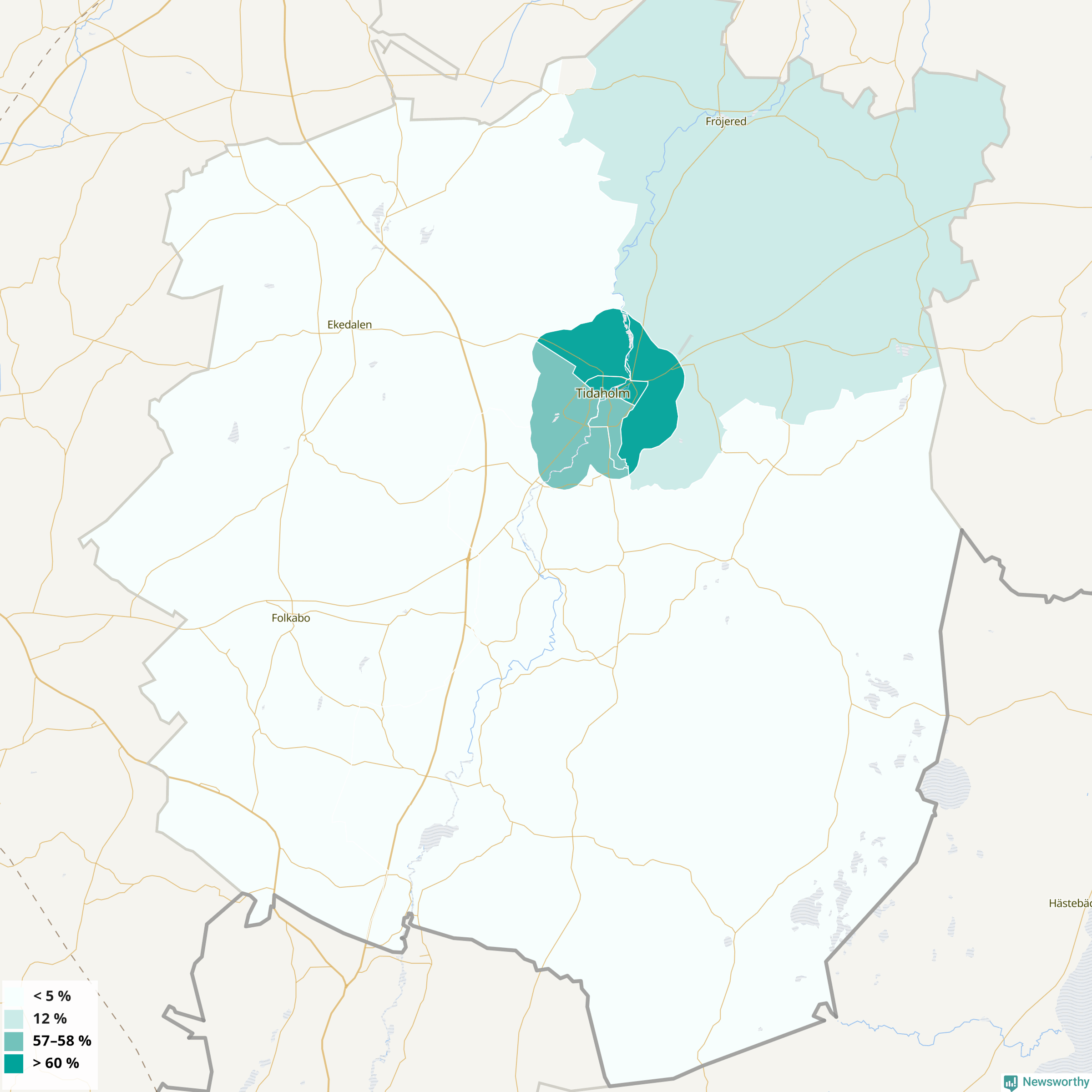 | Tranemo | 27 % | 27 % | 26 % | Tranemo södra (55 %) |