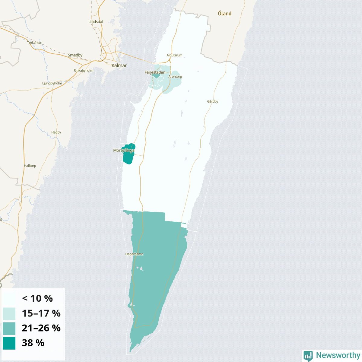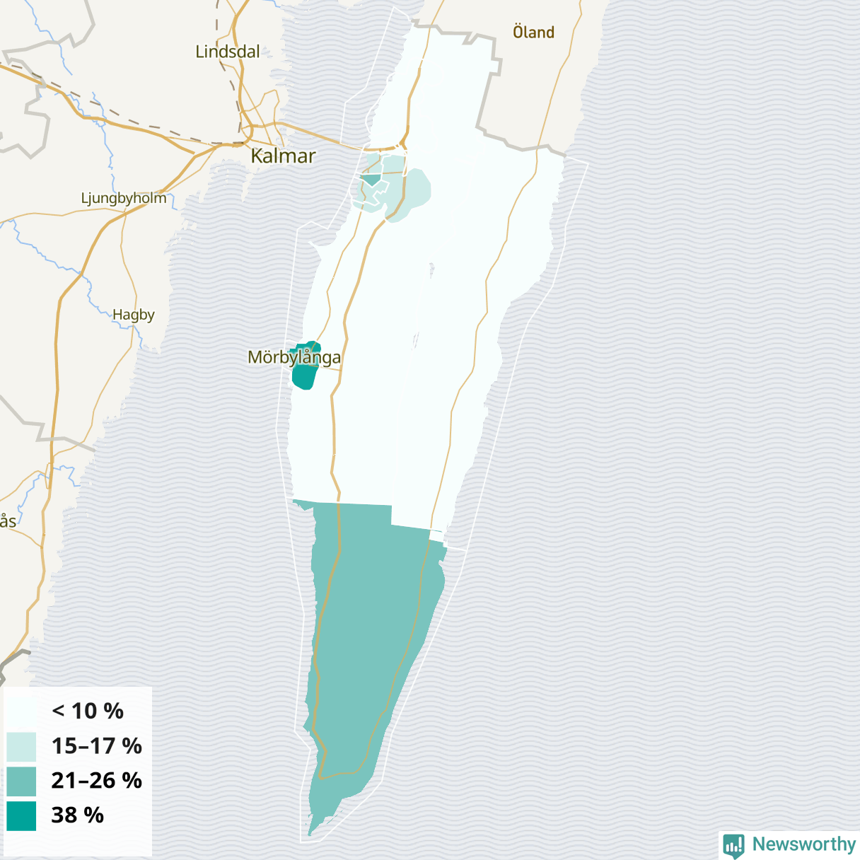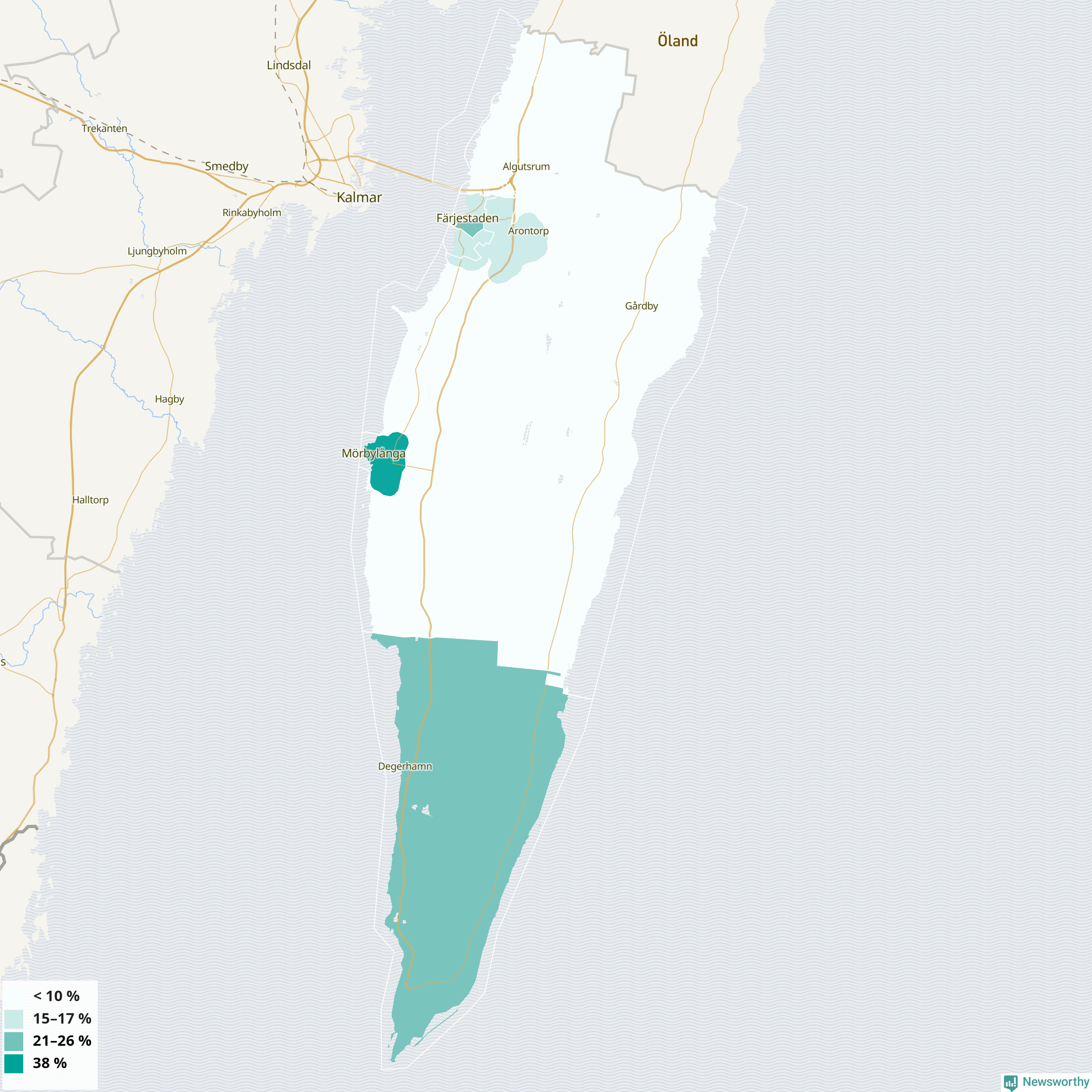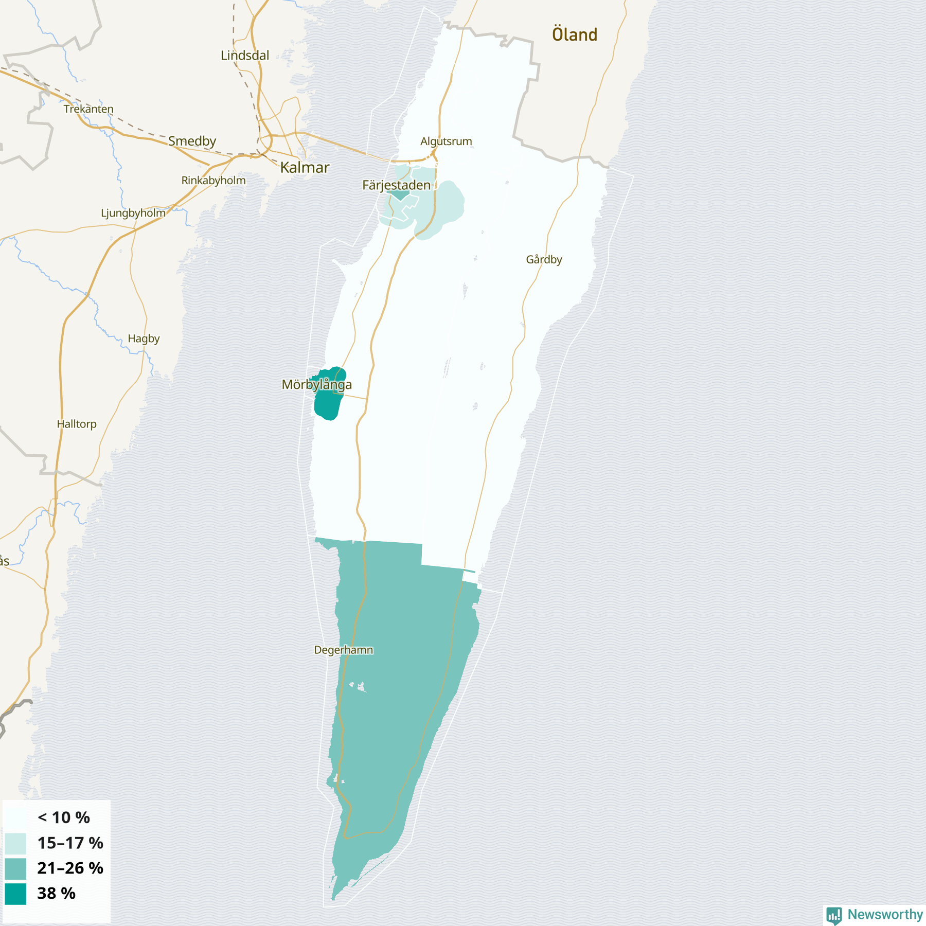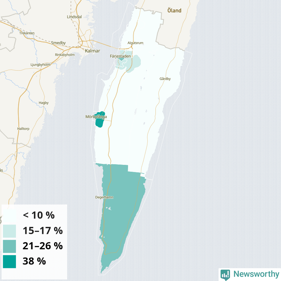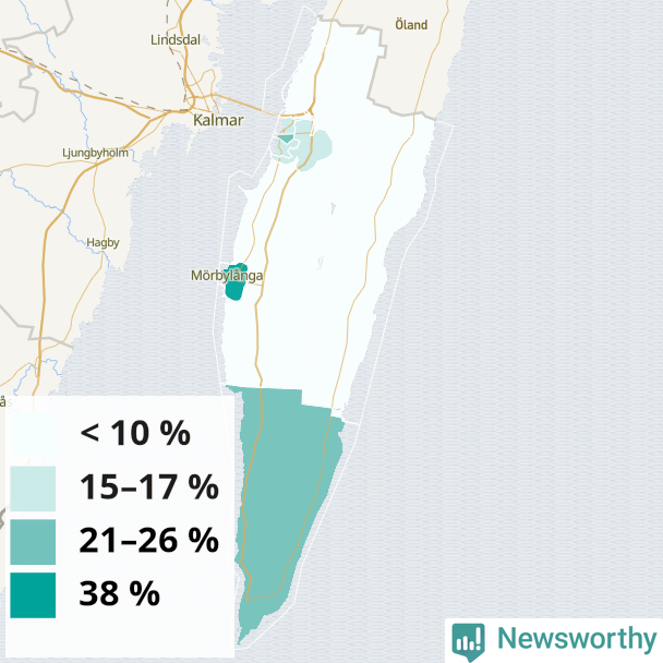 | Mörbylånga | 16 % | 18 % | 14 % | Mörbylånga (38 %) |