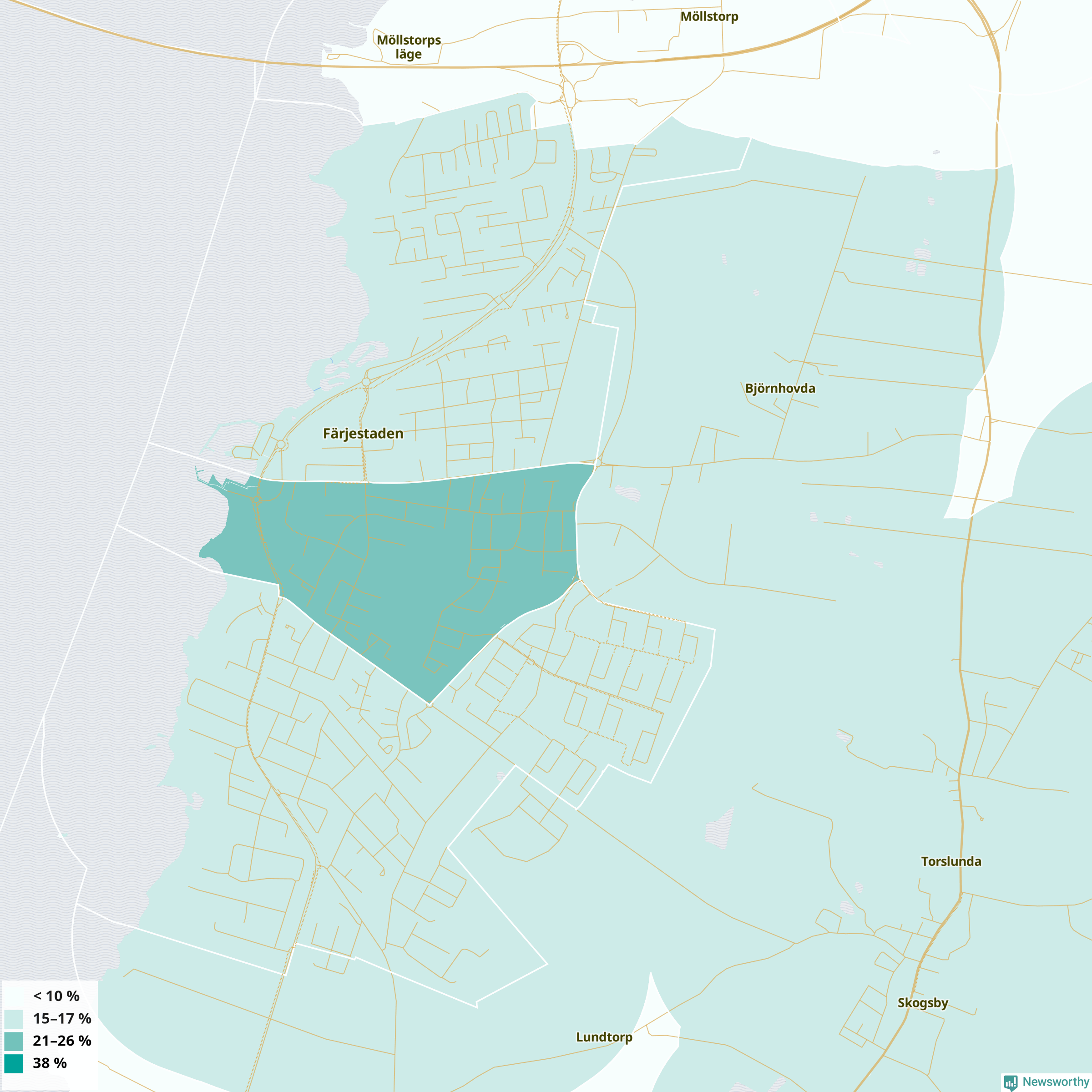 | Mönsterås | 22 % | 28 % | 17 % | Mönsterås centrala (43 %) |