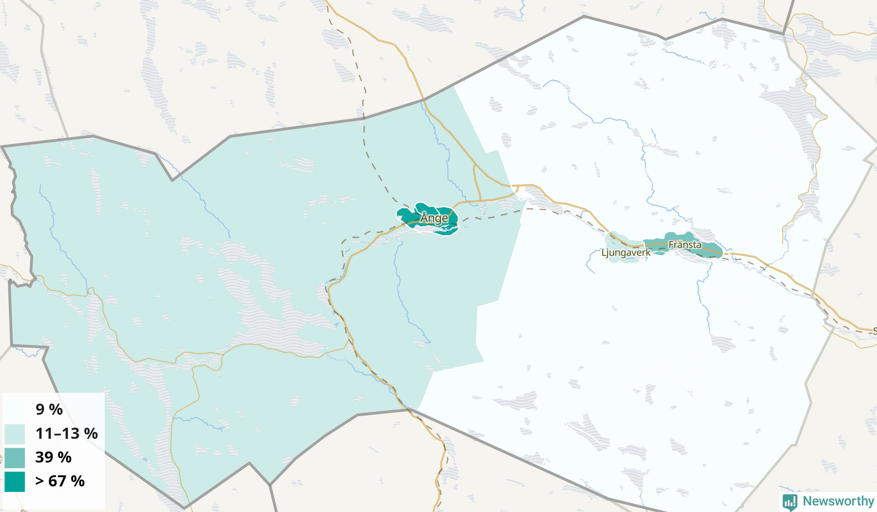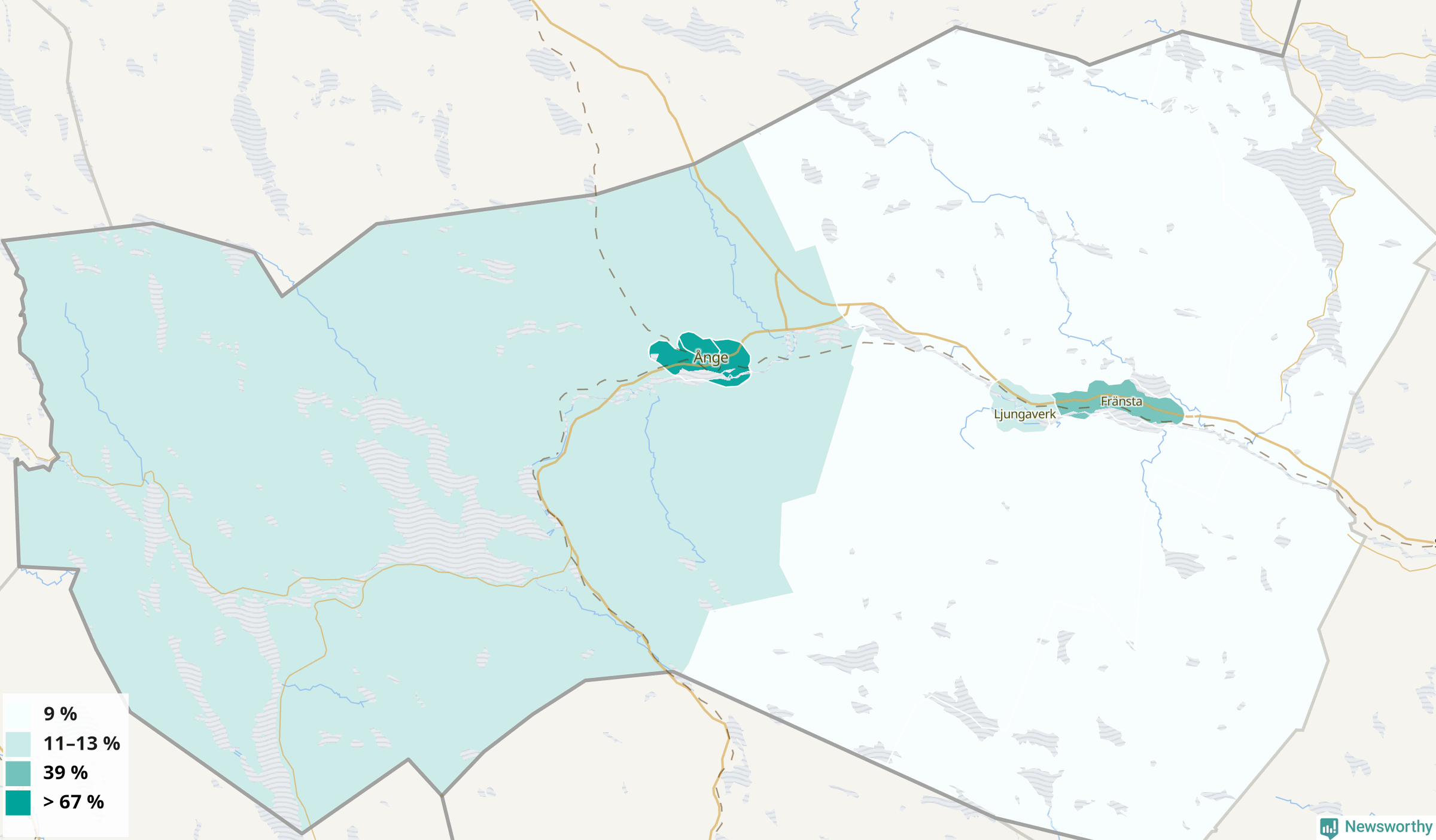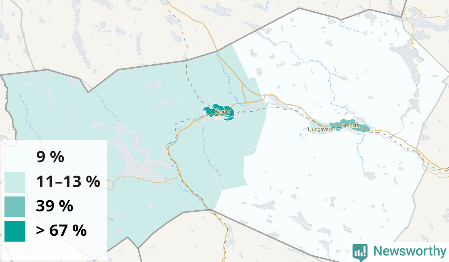 | Delar av Ånge omland | 9 % |