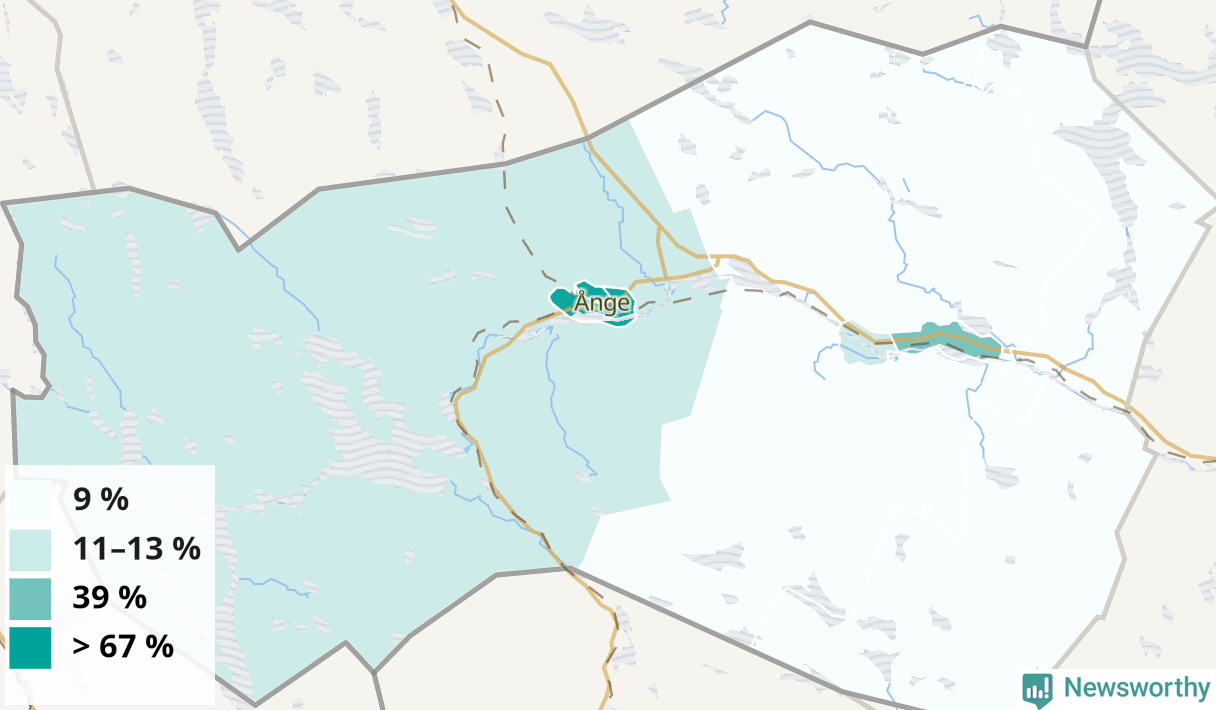 | Delar av Ånge omland | 11 % |
