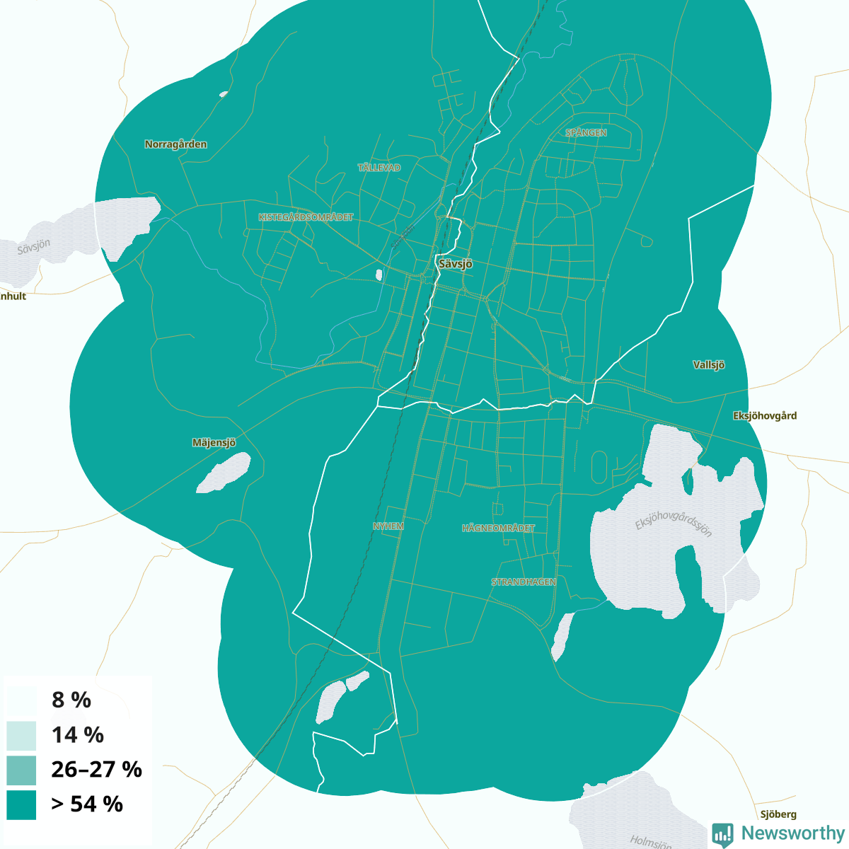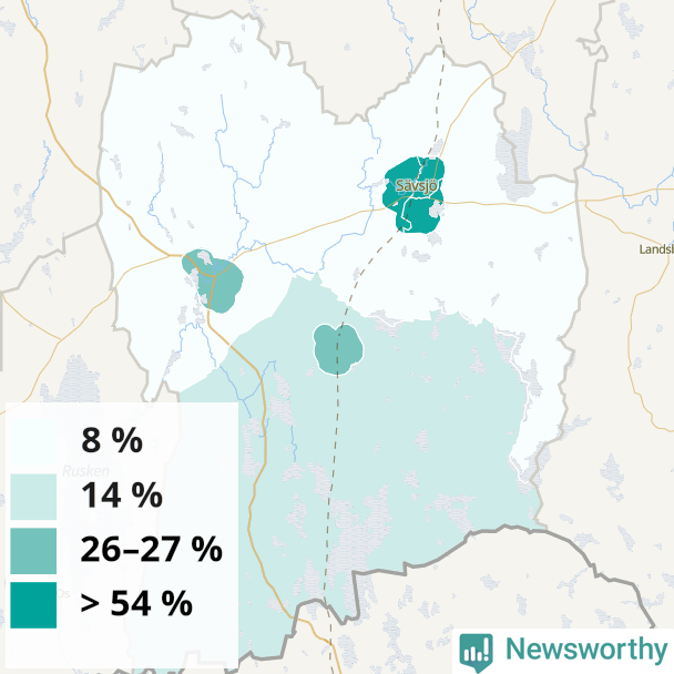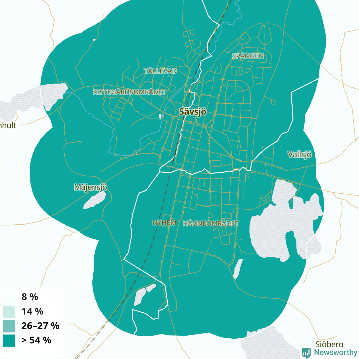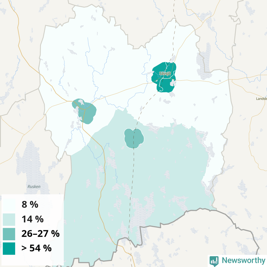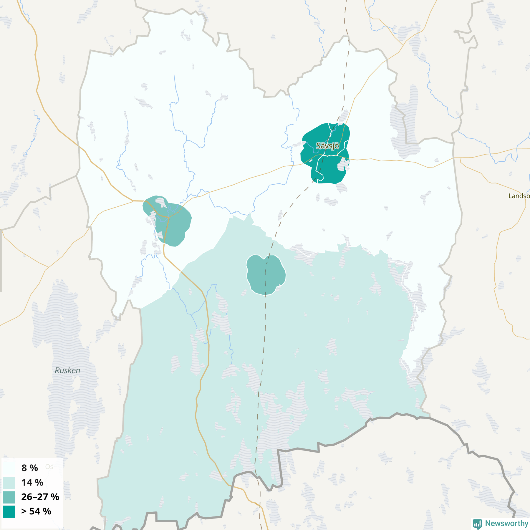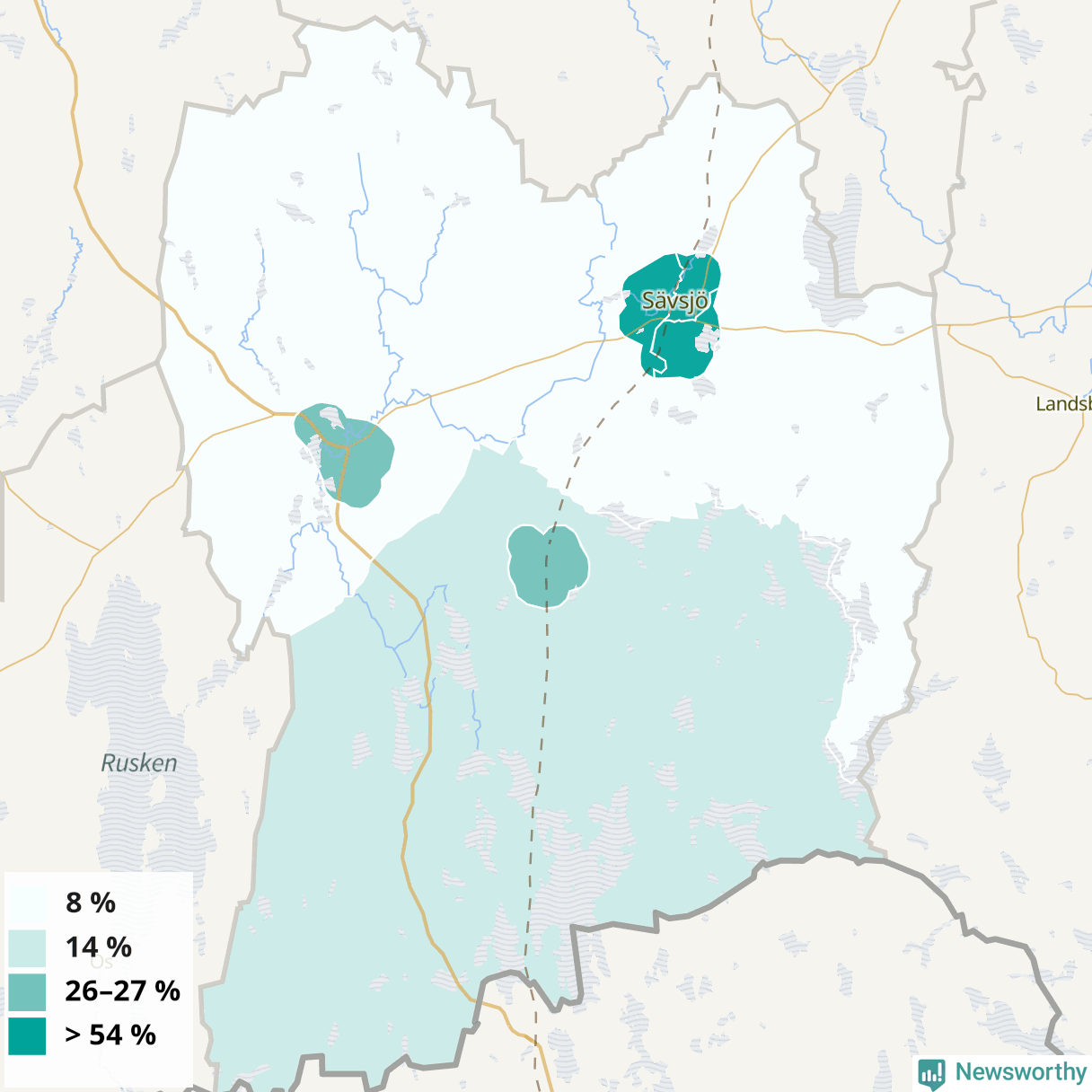 | Sävsjö | 36 % | 38 % | 34 % | Sävsjö väst (57 %) |