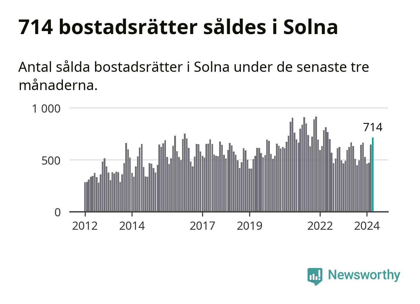 | Solna | +4 % ▲ | 714 | 3,9 miljoner |