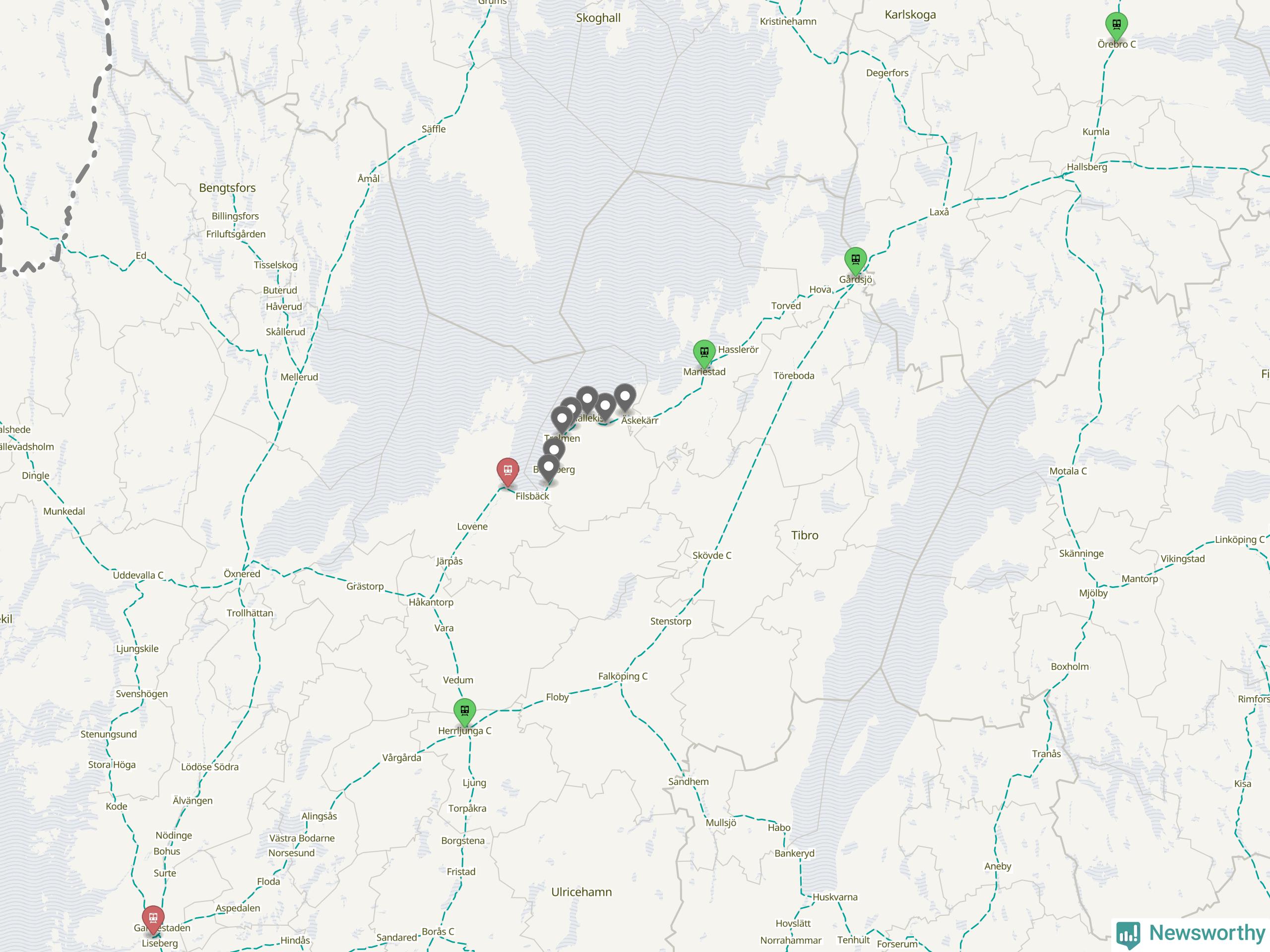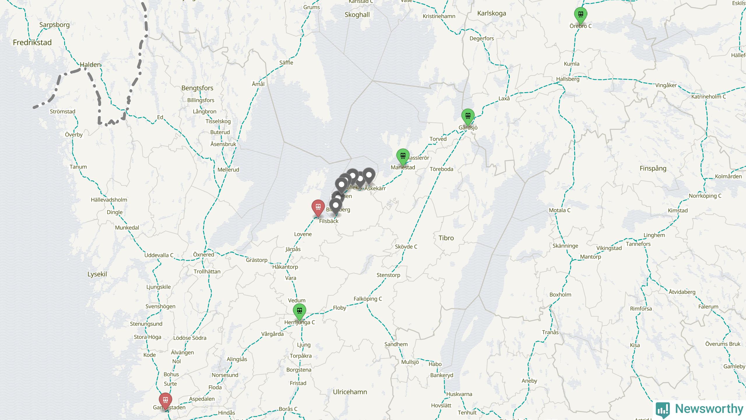 Kartdata från Mapbox, Newsworthy, OpenStreetMap och Trafikverket. Uppgifter om sträckor med passagerartrafik från jarnvag.net.
