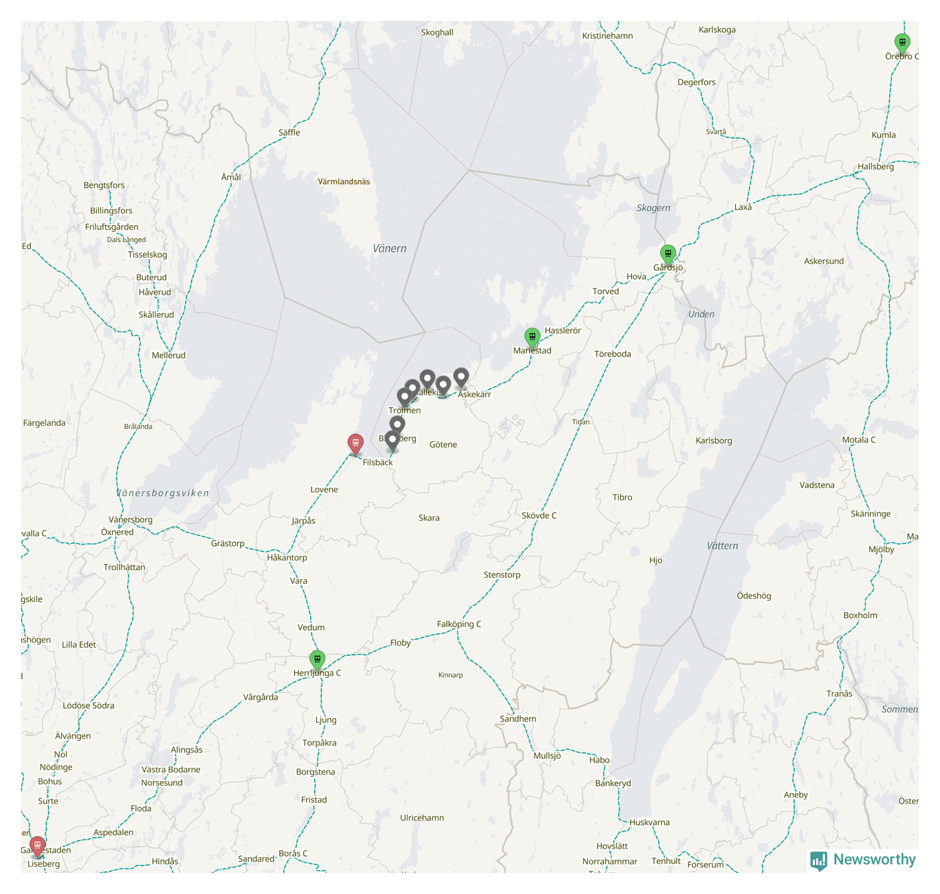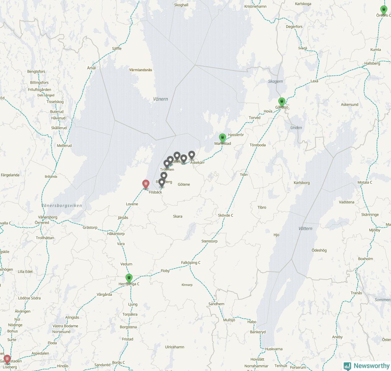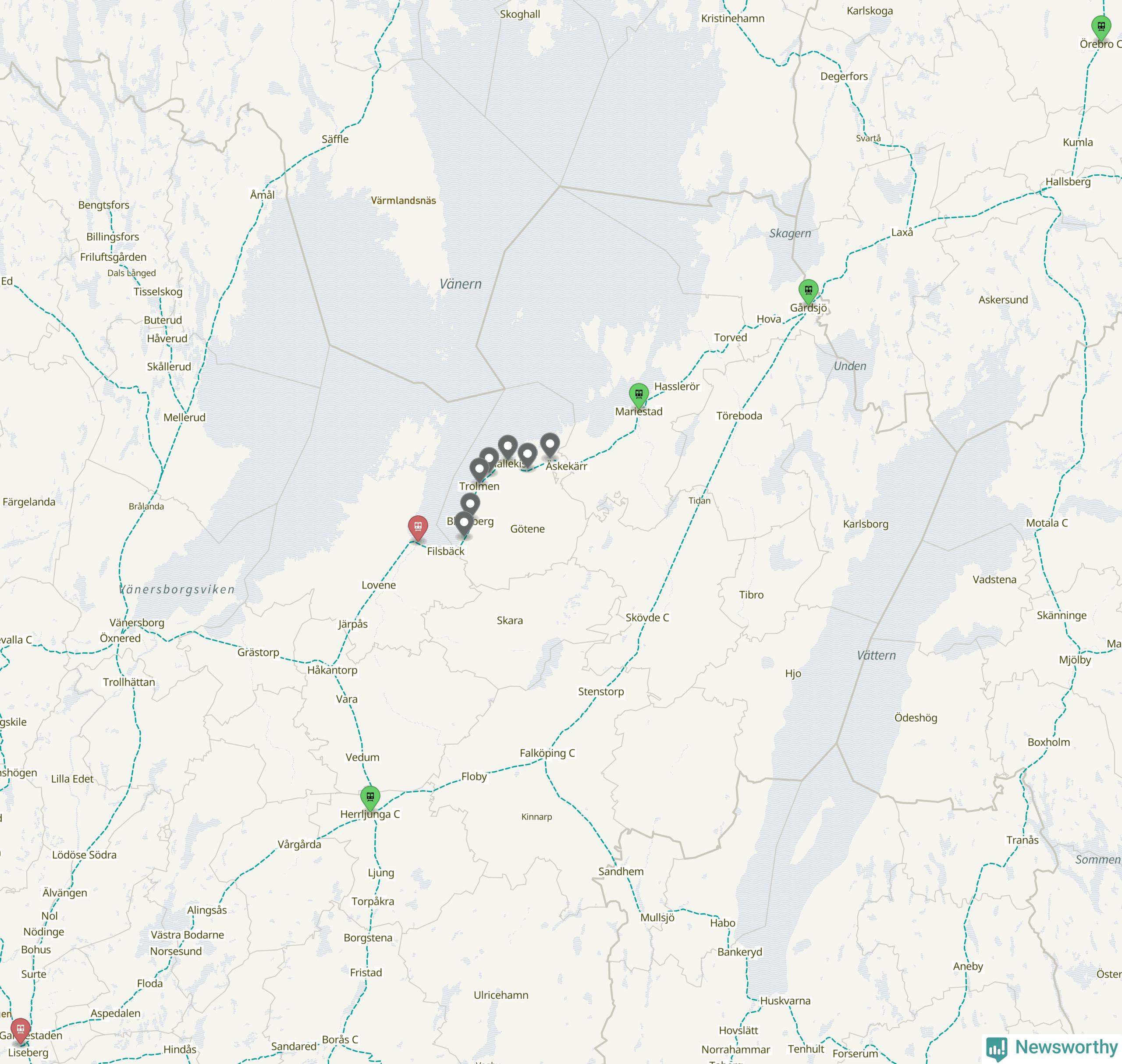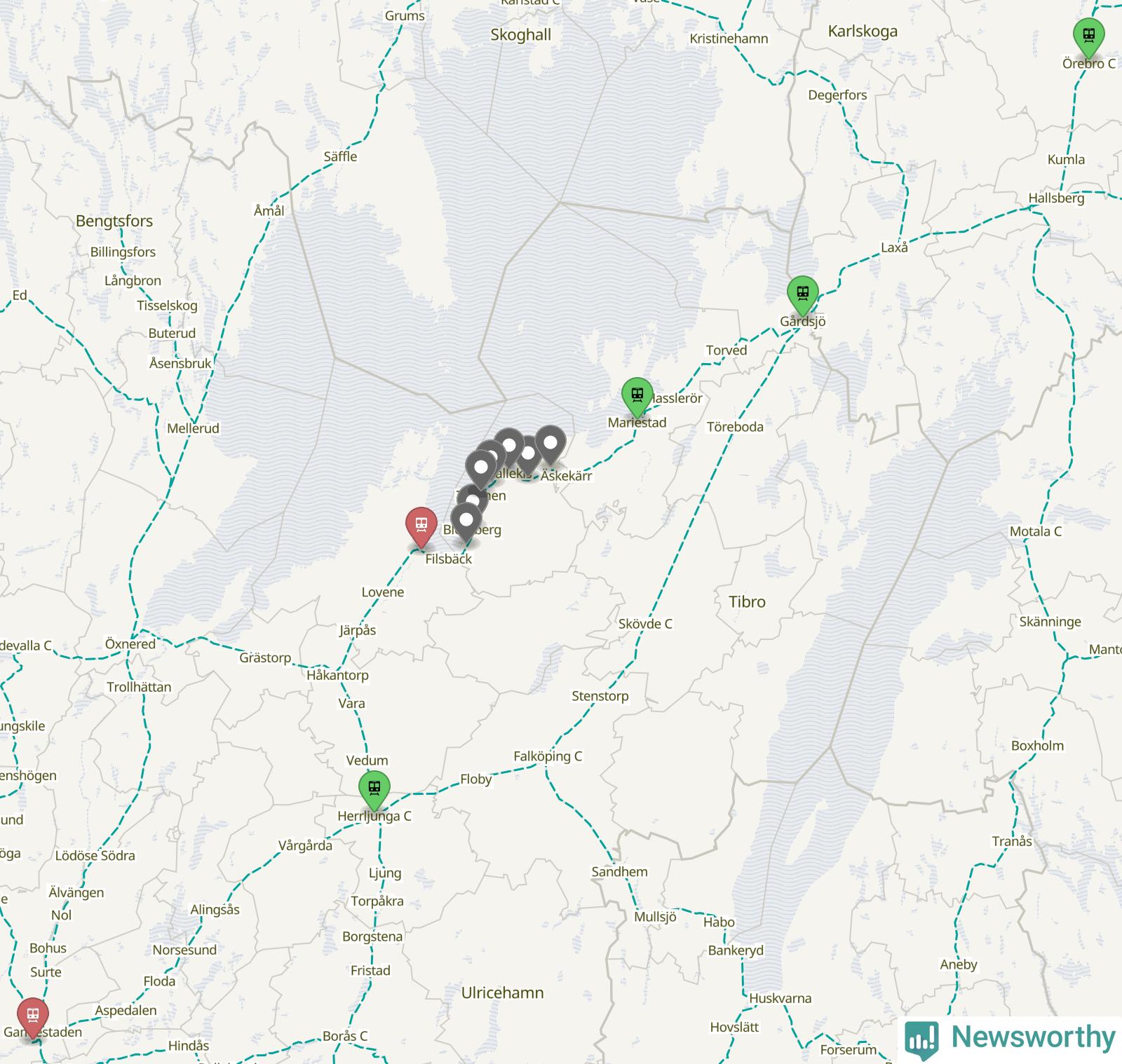 Så många som 38 procent av tågen i Götene kommun ställdes in under april. Det visar Newsworthys sammanställning av alla sena och inställda förra månaden.
