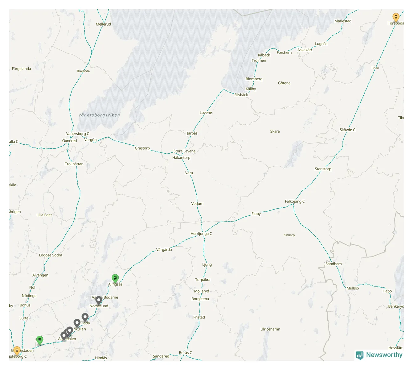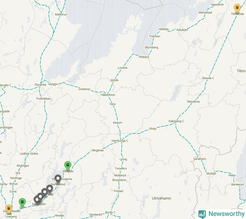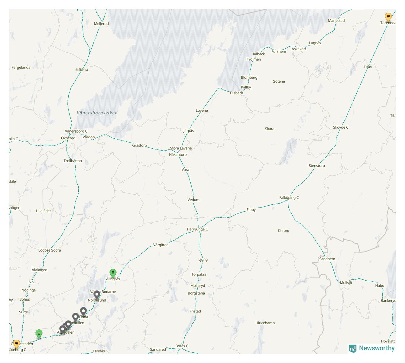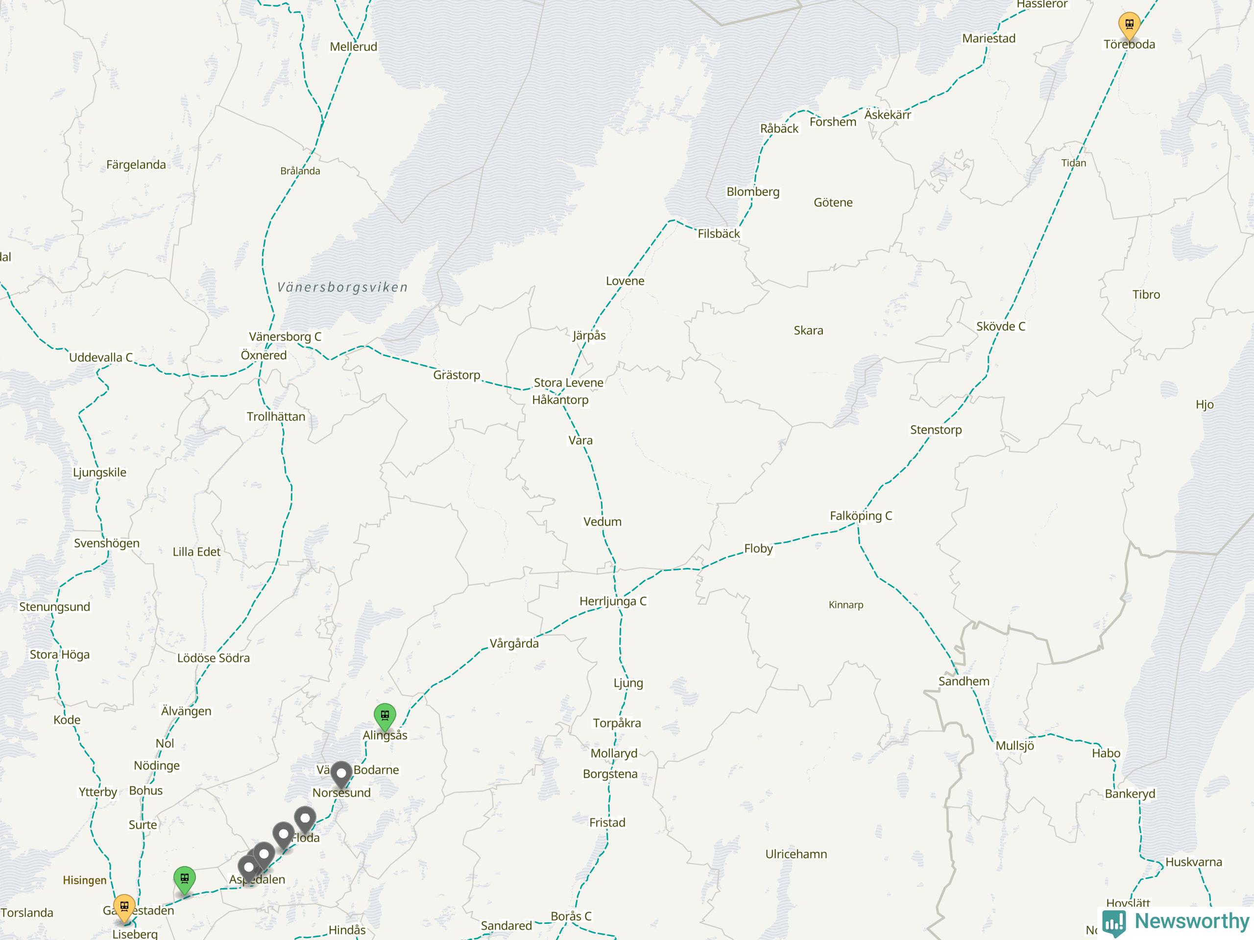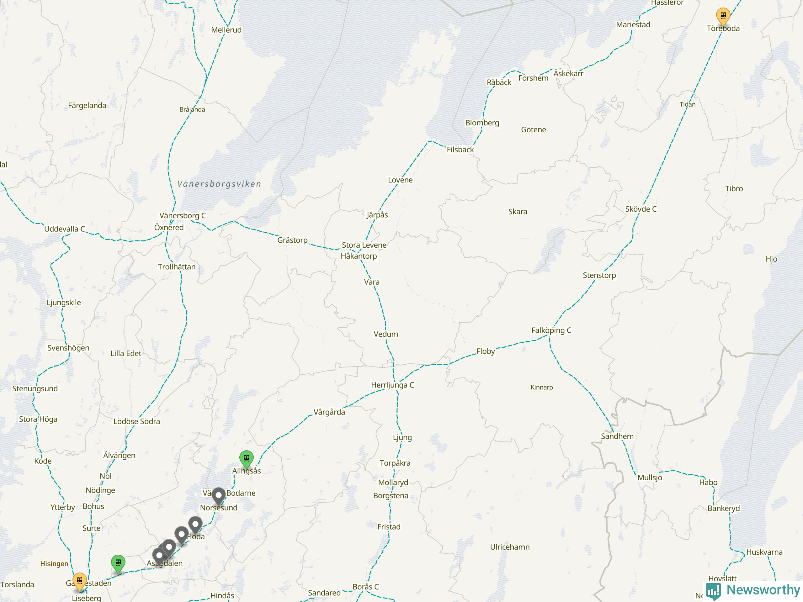 Kartdata från Mapbox, Newsworthy, OpenStreetMap och Trafikverket. Uppgifter om sträckor med passagerartrafik från jarnvag.net.