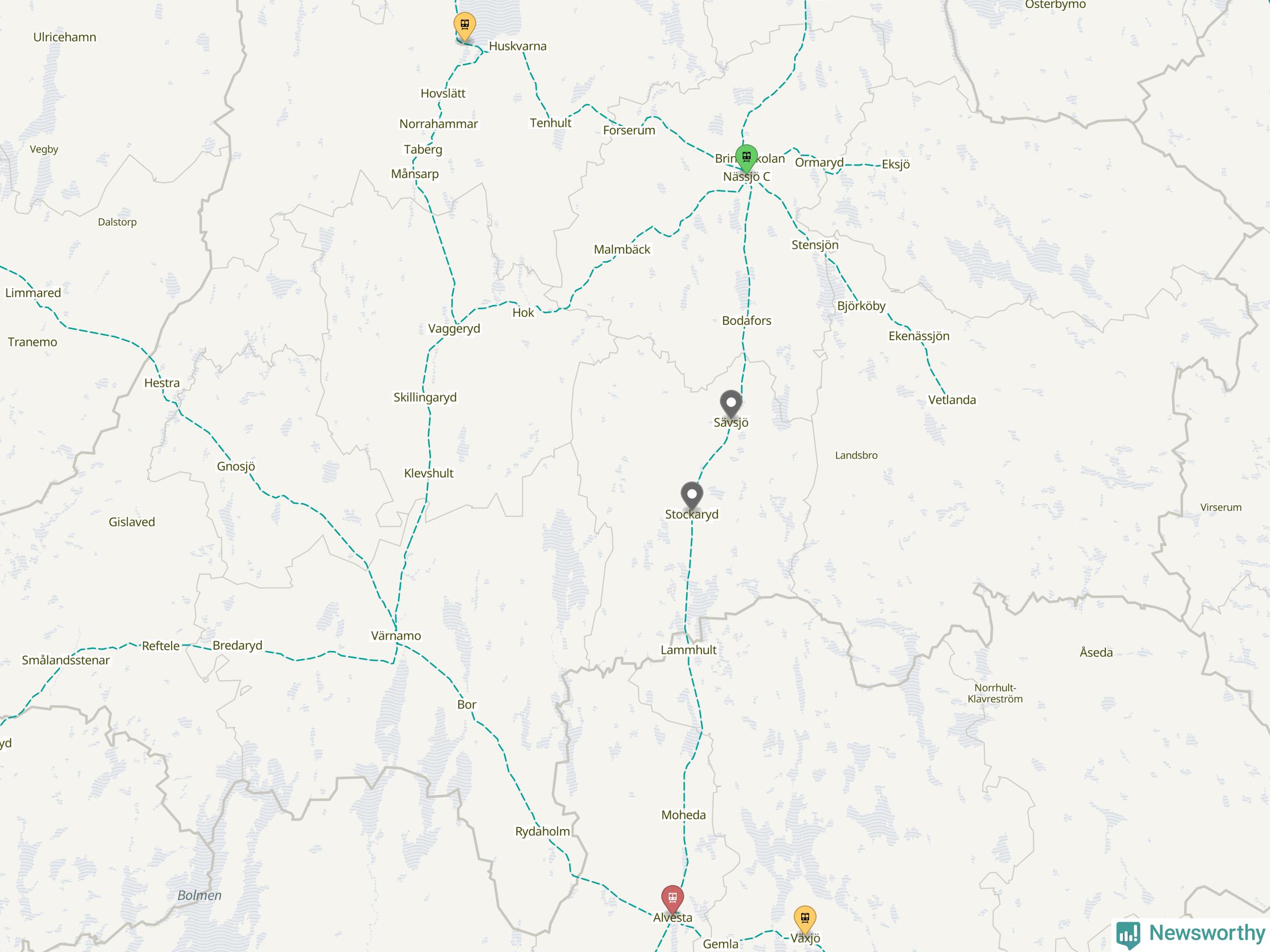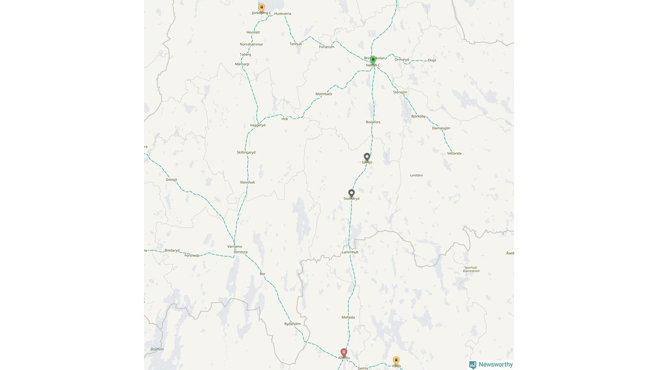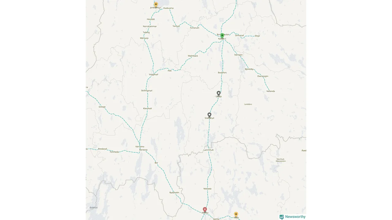 Kartdata från Mapbox, Newsworthy, OpenStreetMap och Trafikverket. Uppgifter om sträckor med passagerartrafik från jarnvag.net.