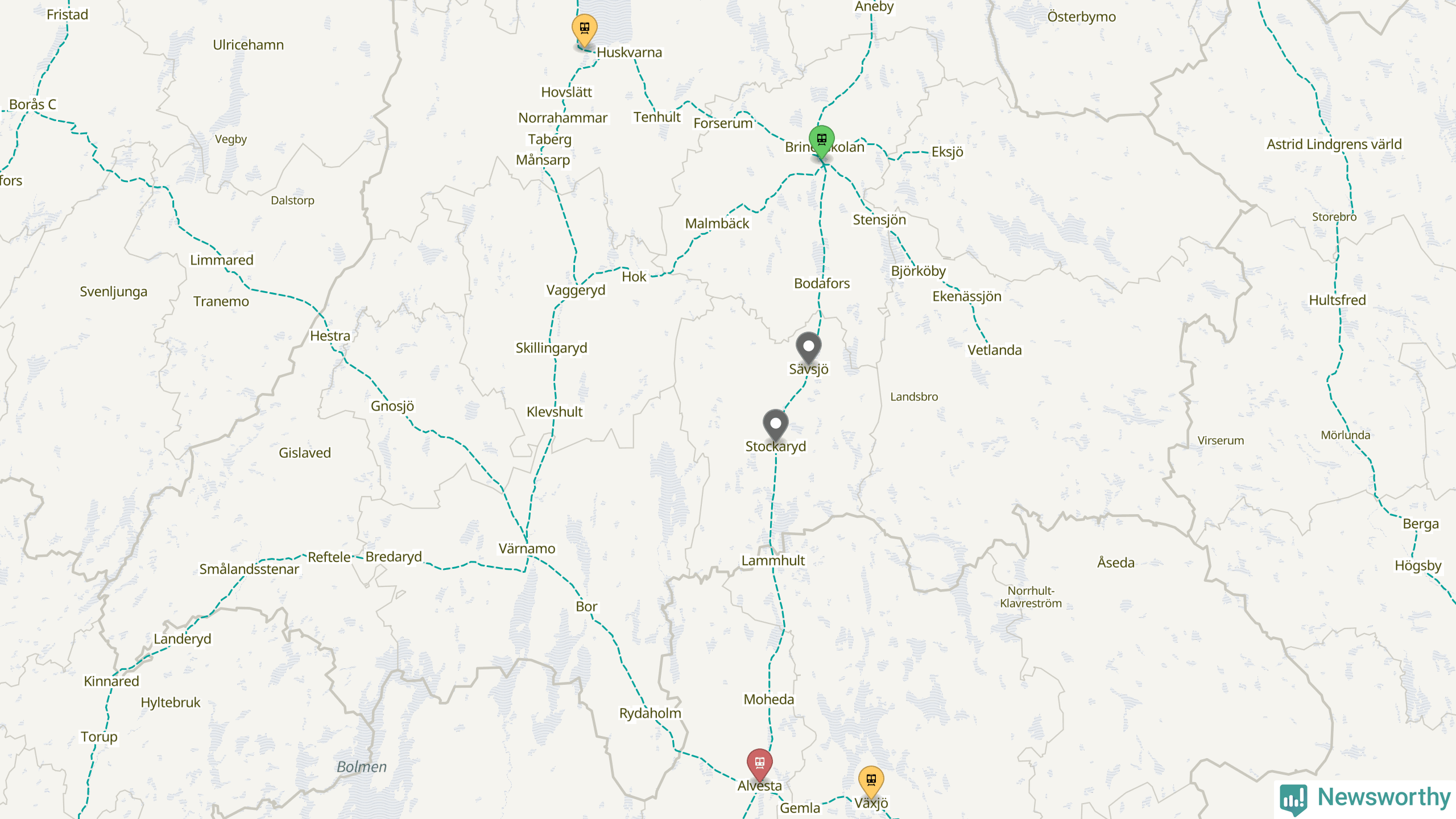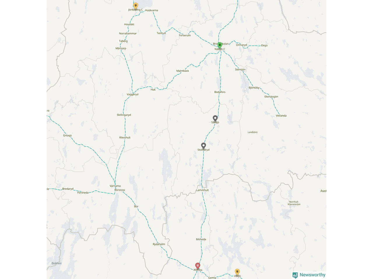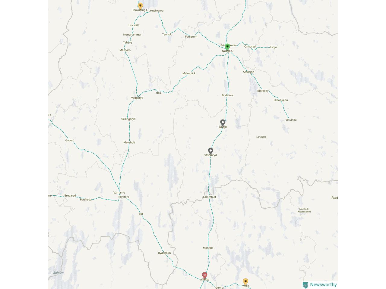 Kartdata från Mapbox, Newsworthy, OpenStreetMap och Trafikverket. Uppgifter om sträckor med passagerartrafik från jarnvag.net.