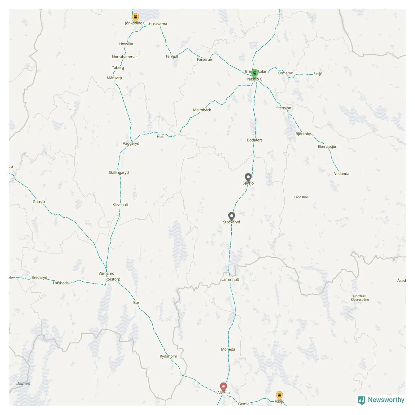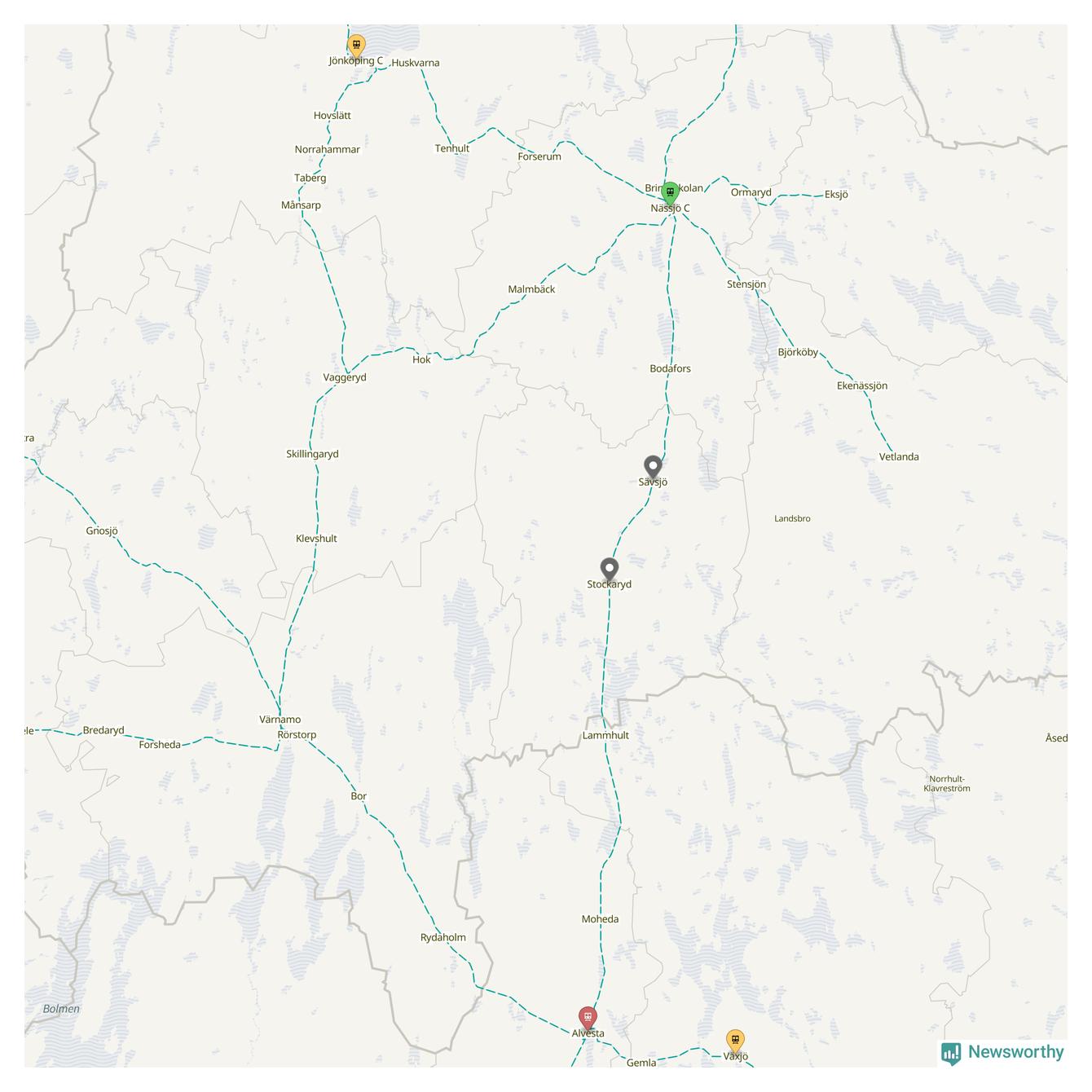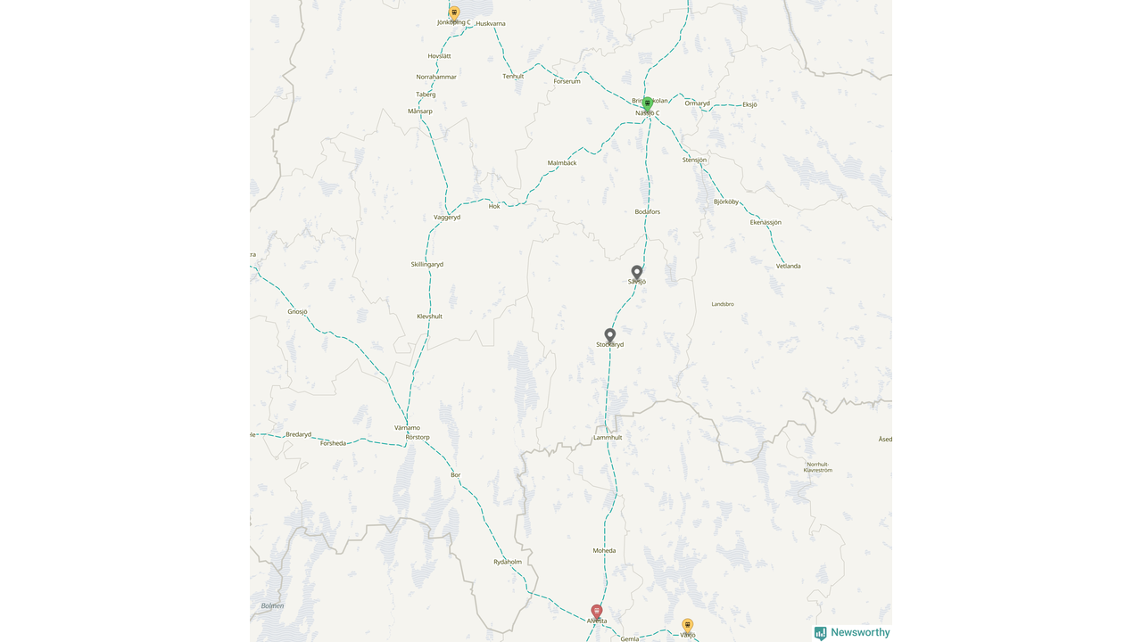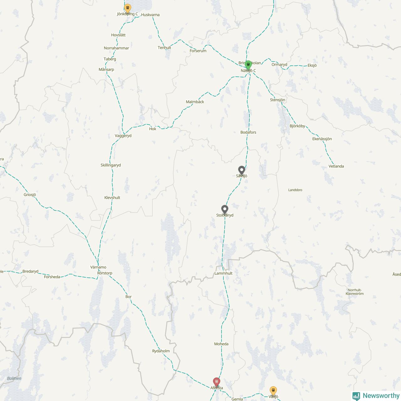 | 24 april 14.12–17.30 | signalfel | Förseningar i tågtrafiken på grund av signalfel mellan Bodafors och Sävsjö |