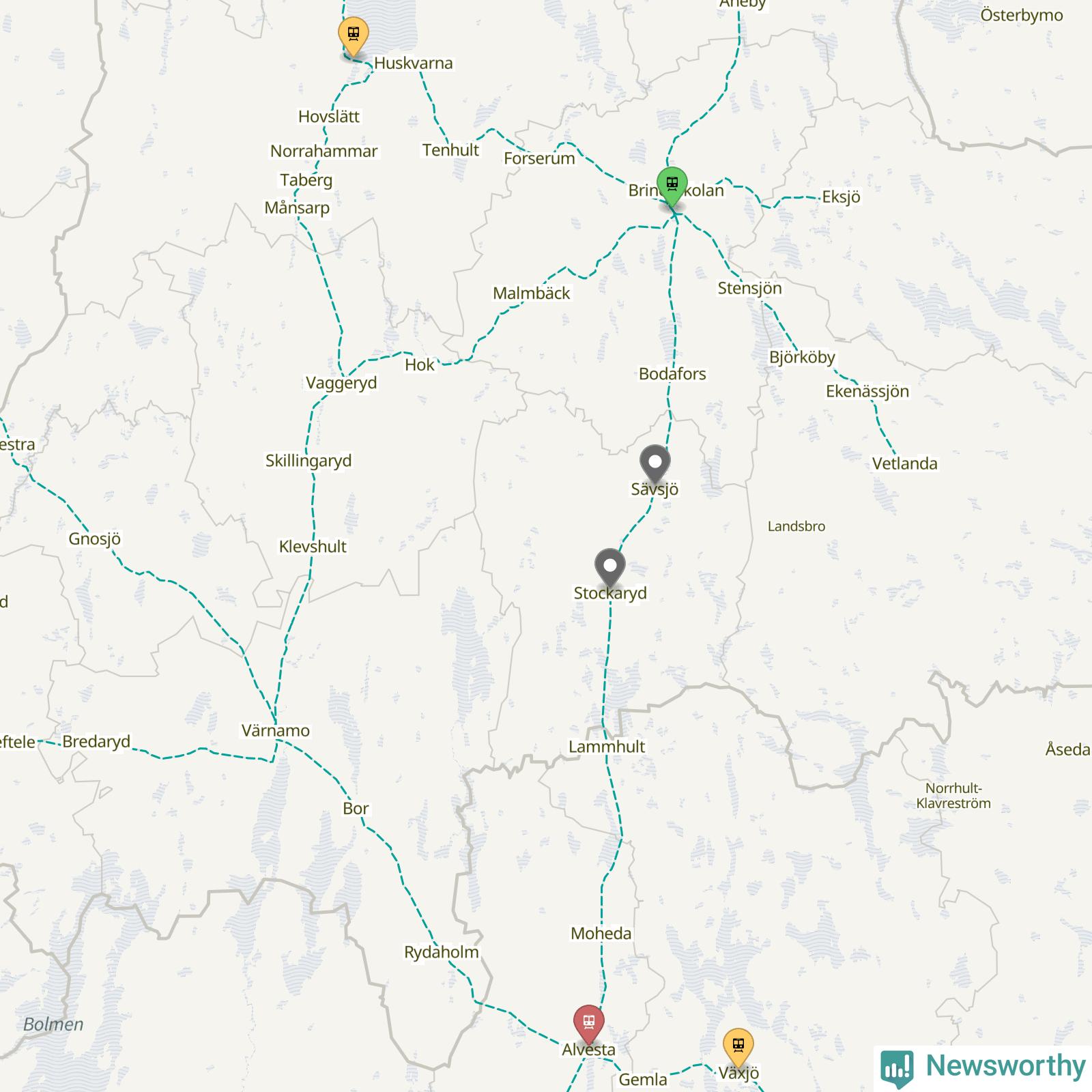 | 21 april 19.20–21.50 | fordonsfel | Förseningar i tågtrafiken på grund av ett stillastående tåg mellan Stockaryd och Lammhult |