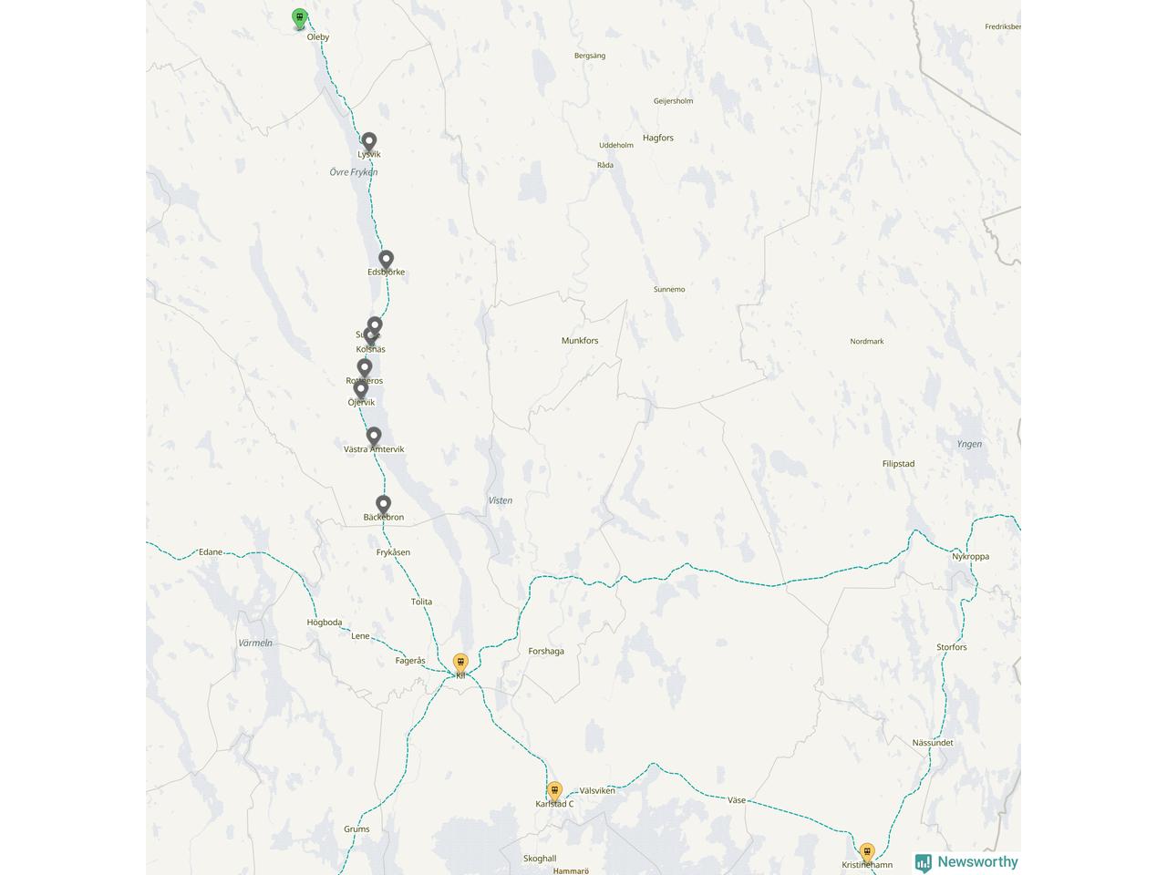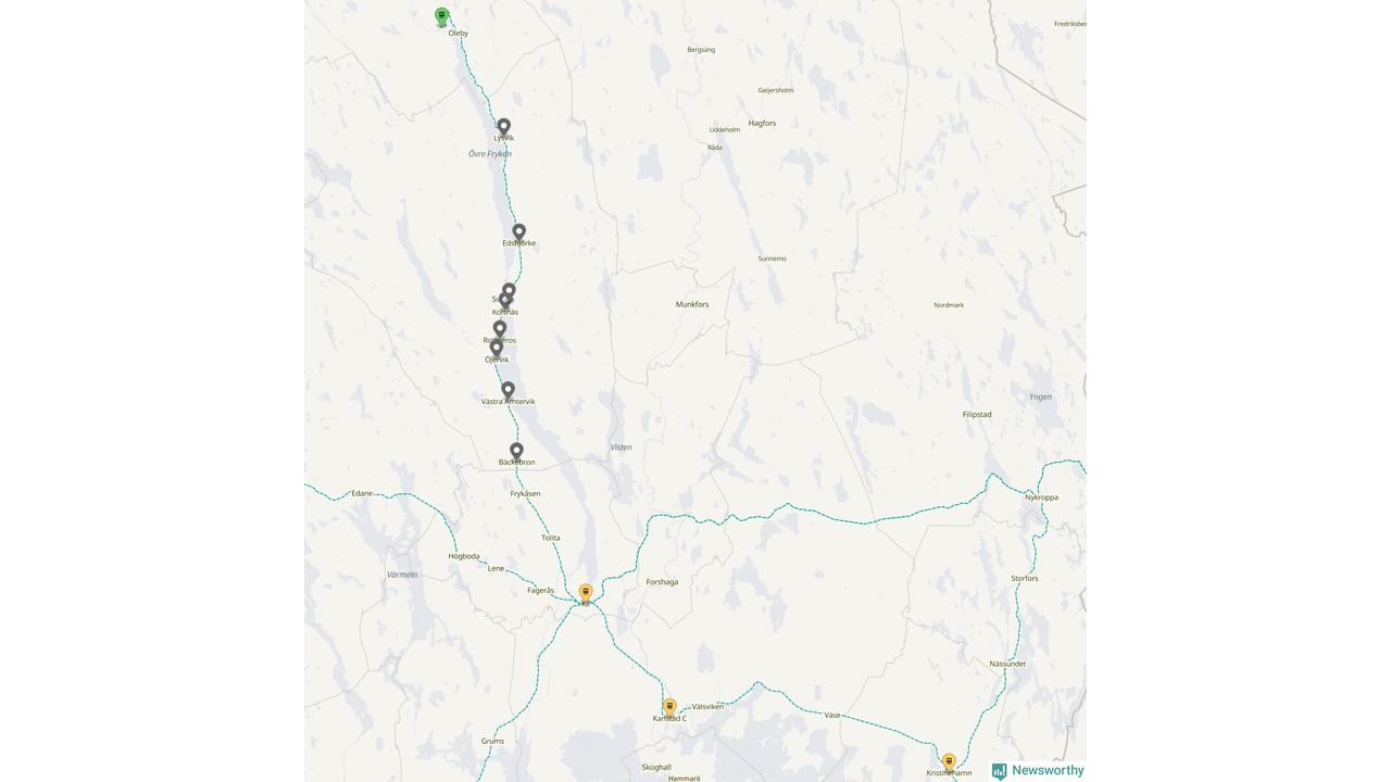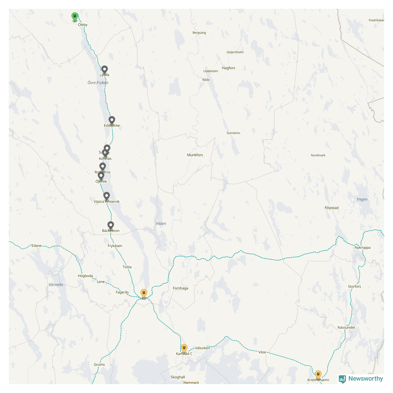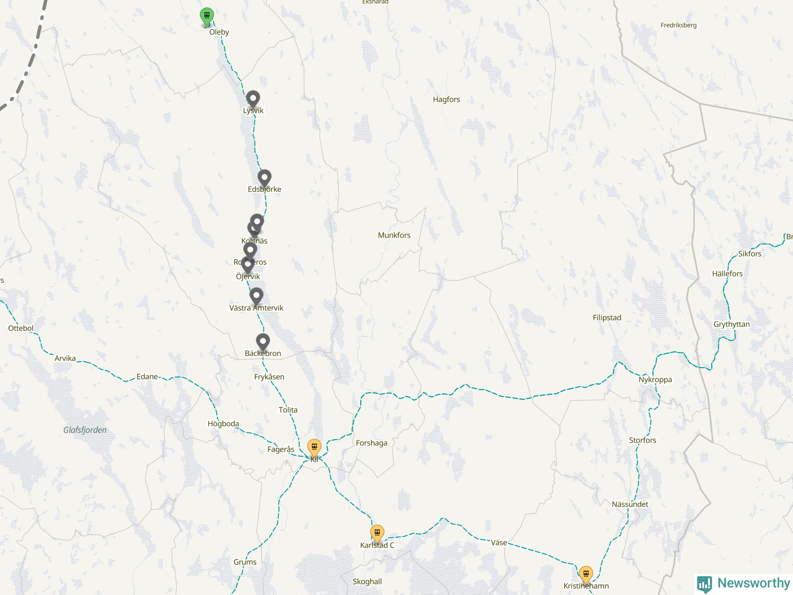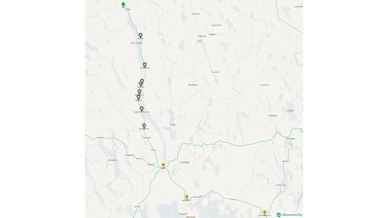 Kartdata från Mapbox, Newsworthy, OpenStreetMap och Trafikverket. Uppgifter om sträckor med passagerartrafik från jarnvag.net.