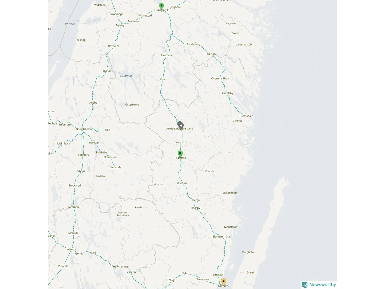 Kartdata från Mapbox, Newsworthy, OpenStreetMap och Trafikverket. Uppgifter om sträckor med passagerartrafik från jarnvag.net.