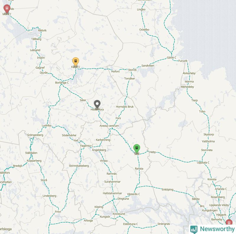 16 april 12.10–14.30spårfelBorlänge-Avesta Krylbo: Det är störningar i tågtrafiken på grund av ett spårfel utanför Avesta Krylbo