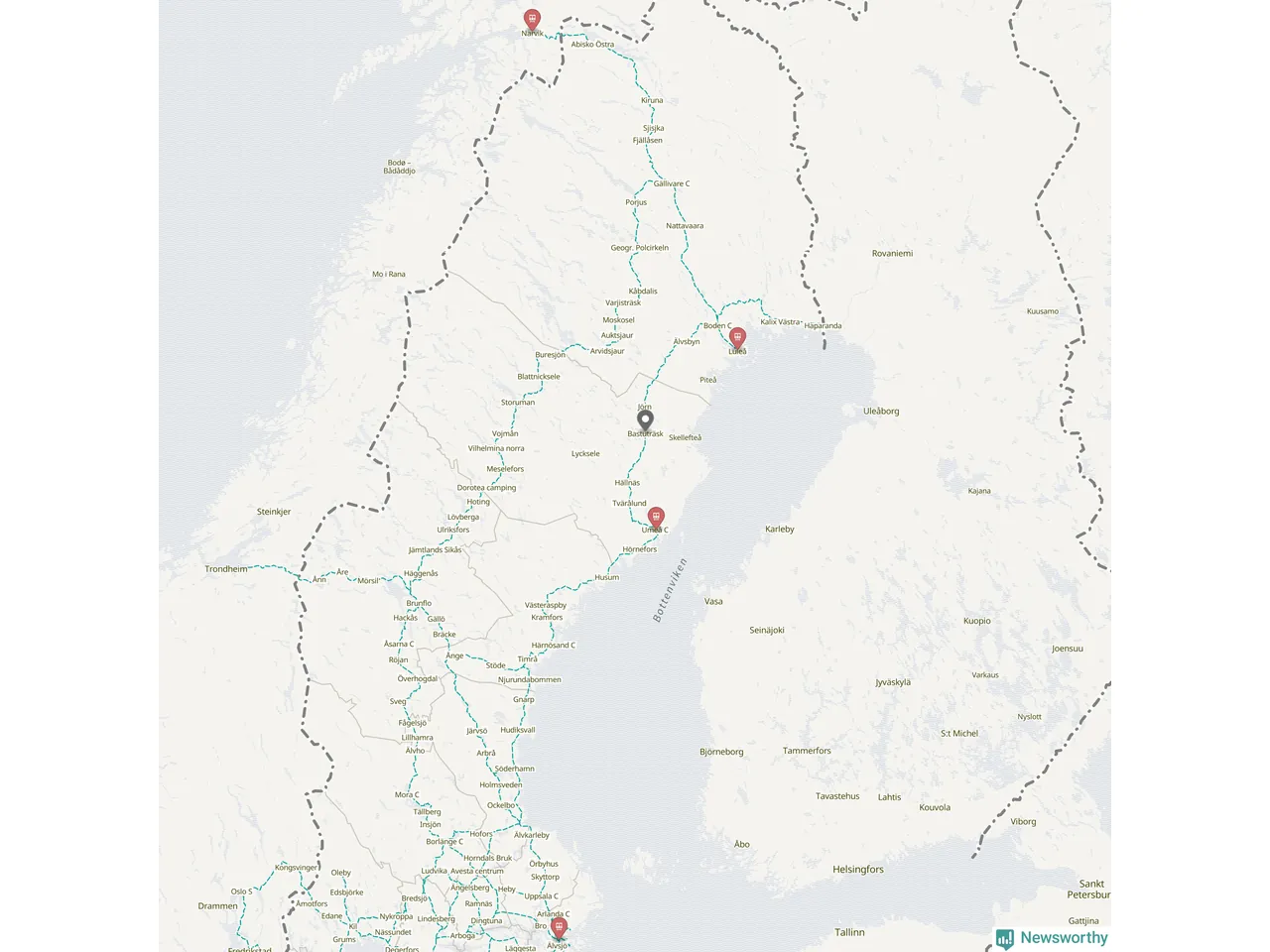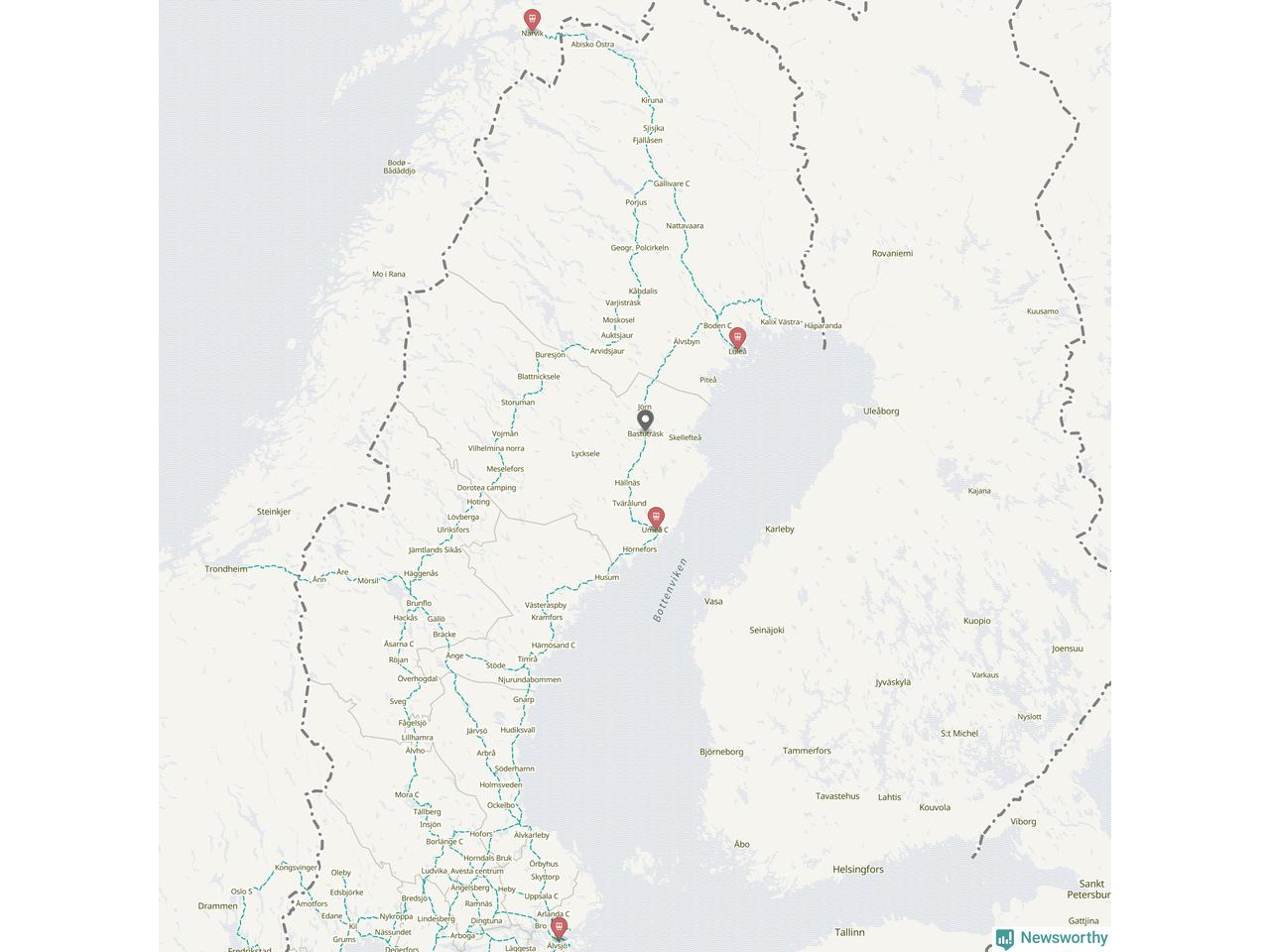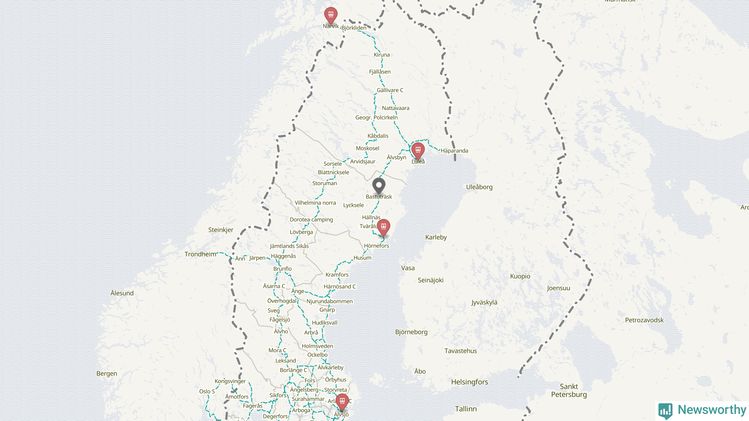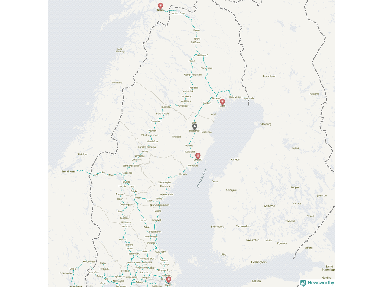 Kartdata från Mapbox, Newsworthy, OpenStreetMap och Trafikverket. Uppgifter om sträckor med passagerartrafik från jarnvag.net.
