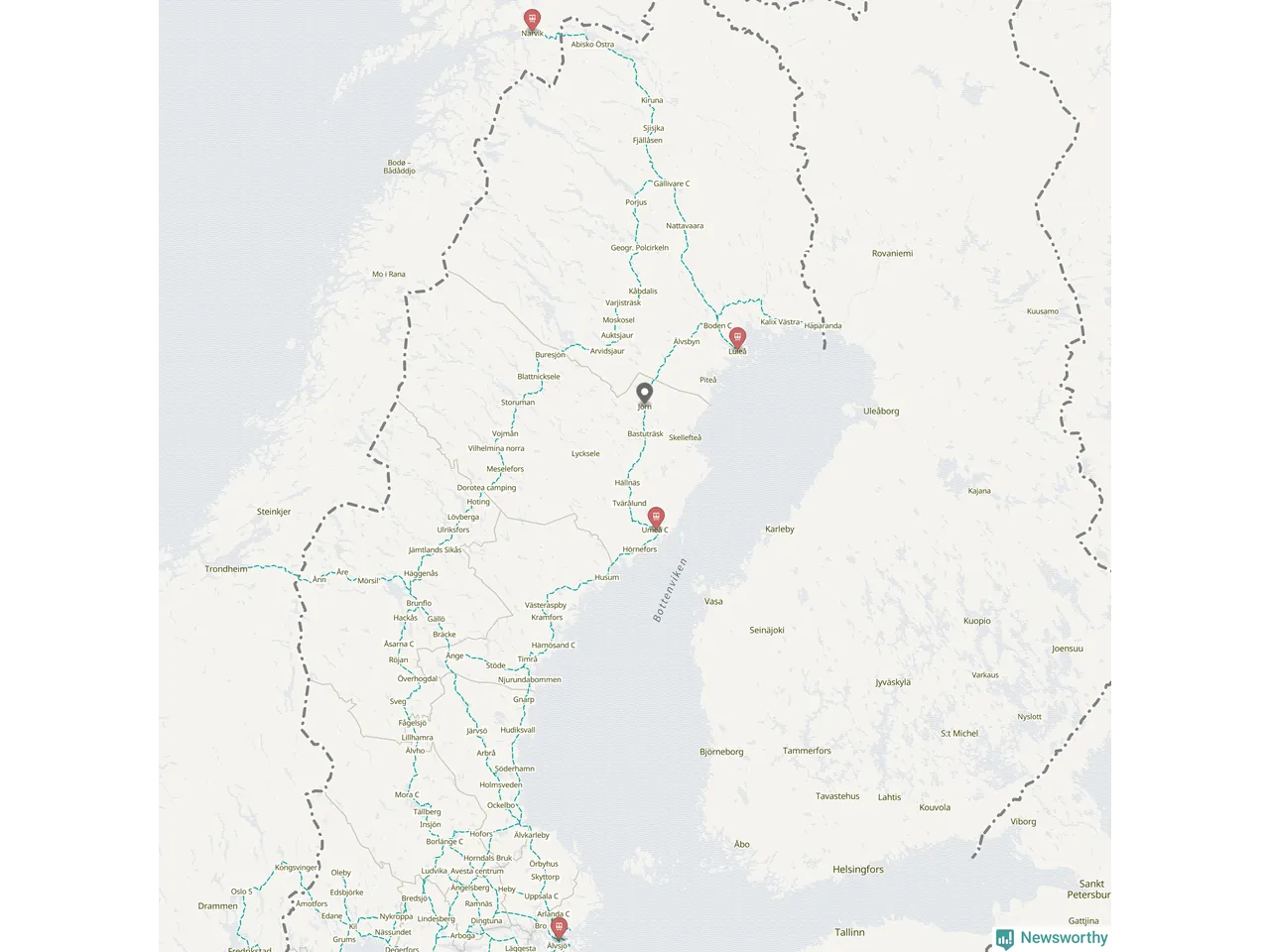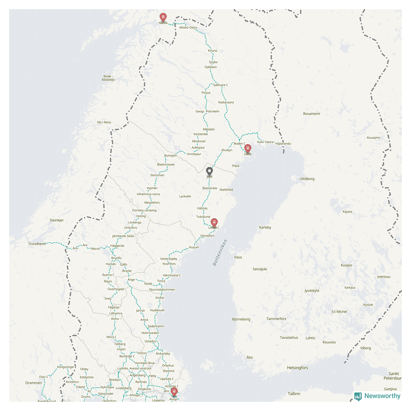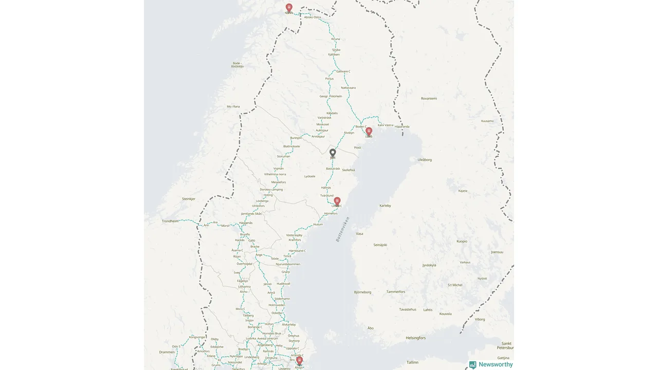 Kartdata från Mapbox, Newsworthy, OpenStreetMap och Trafikverket. Uppgifter om sträckor med passagerartrafik från jarnvag.net.