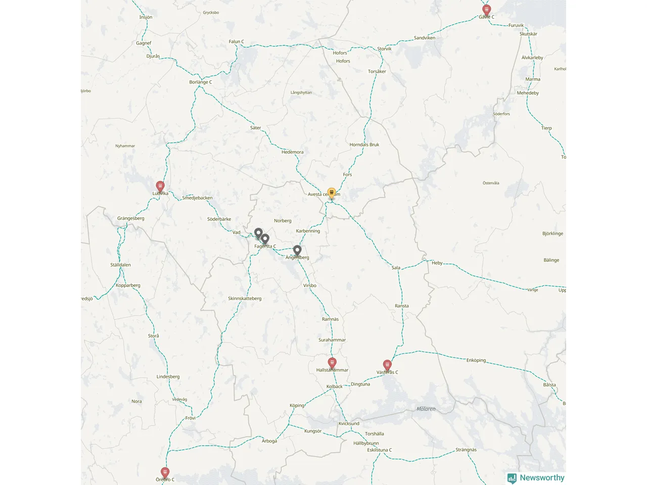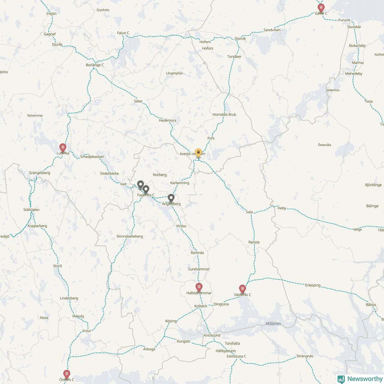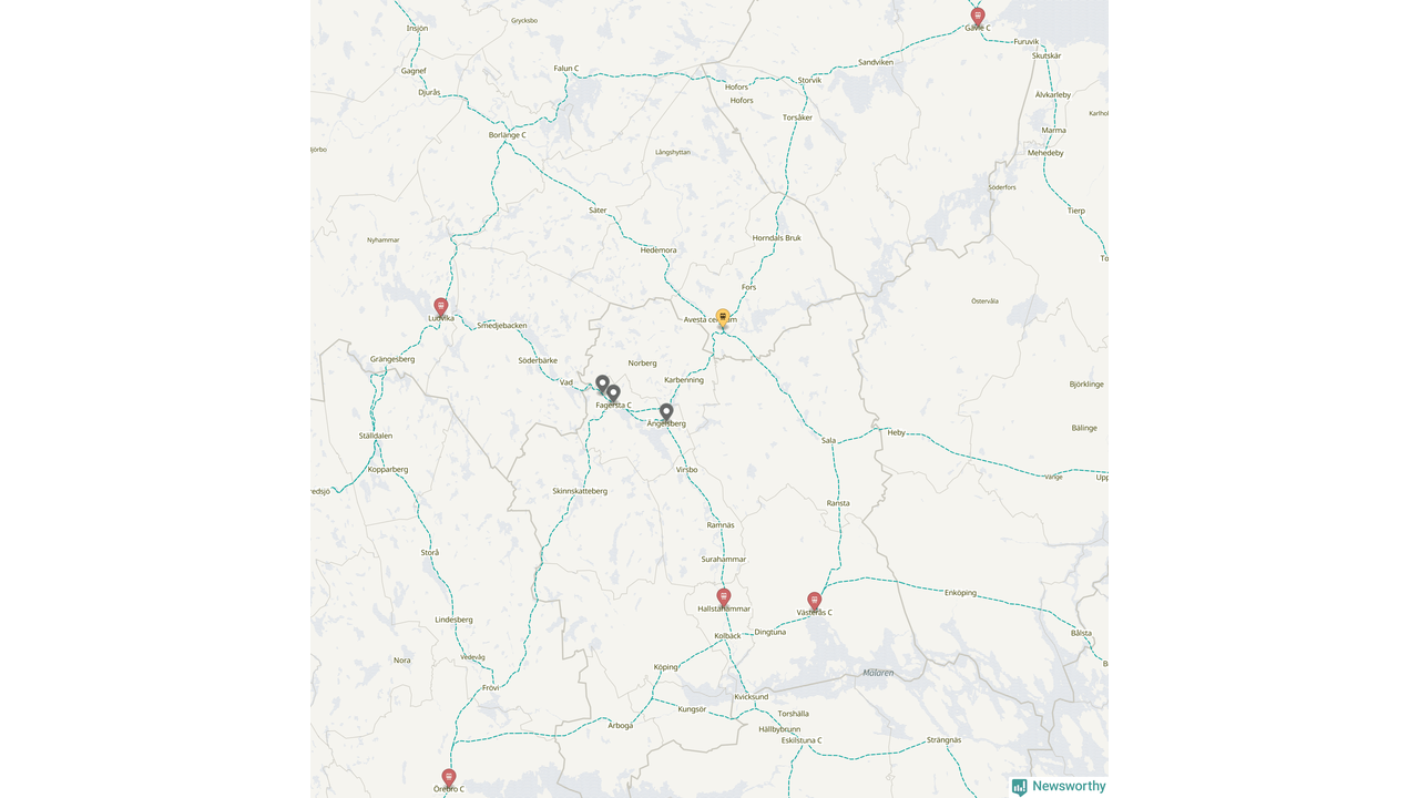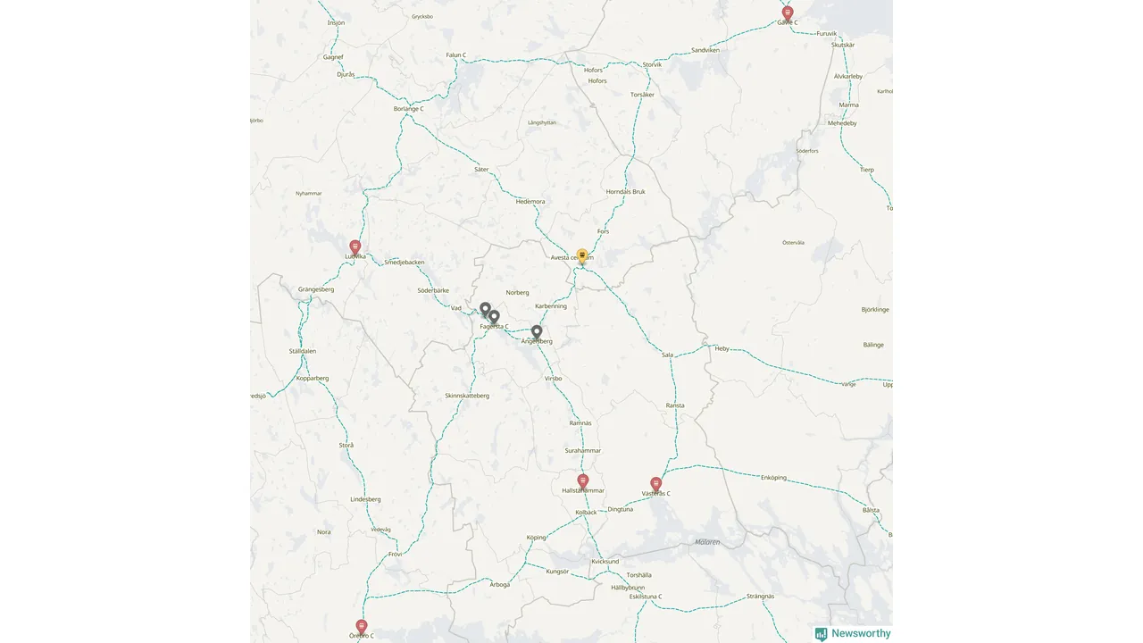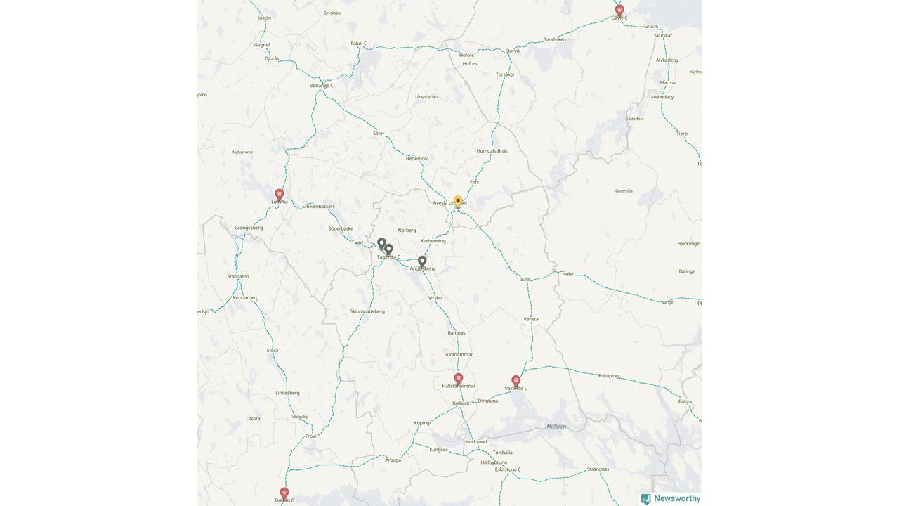Kartdata från Mapbox, Newsworthy, OpenStreetMap och Trafikverket. Uppgifter om sträckor med passagerartrafik från jarnvag.net.