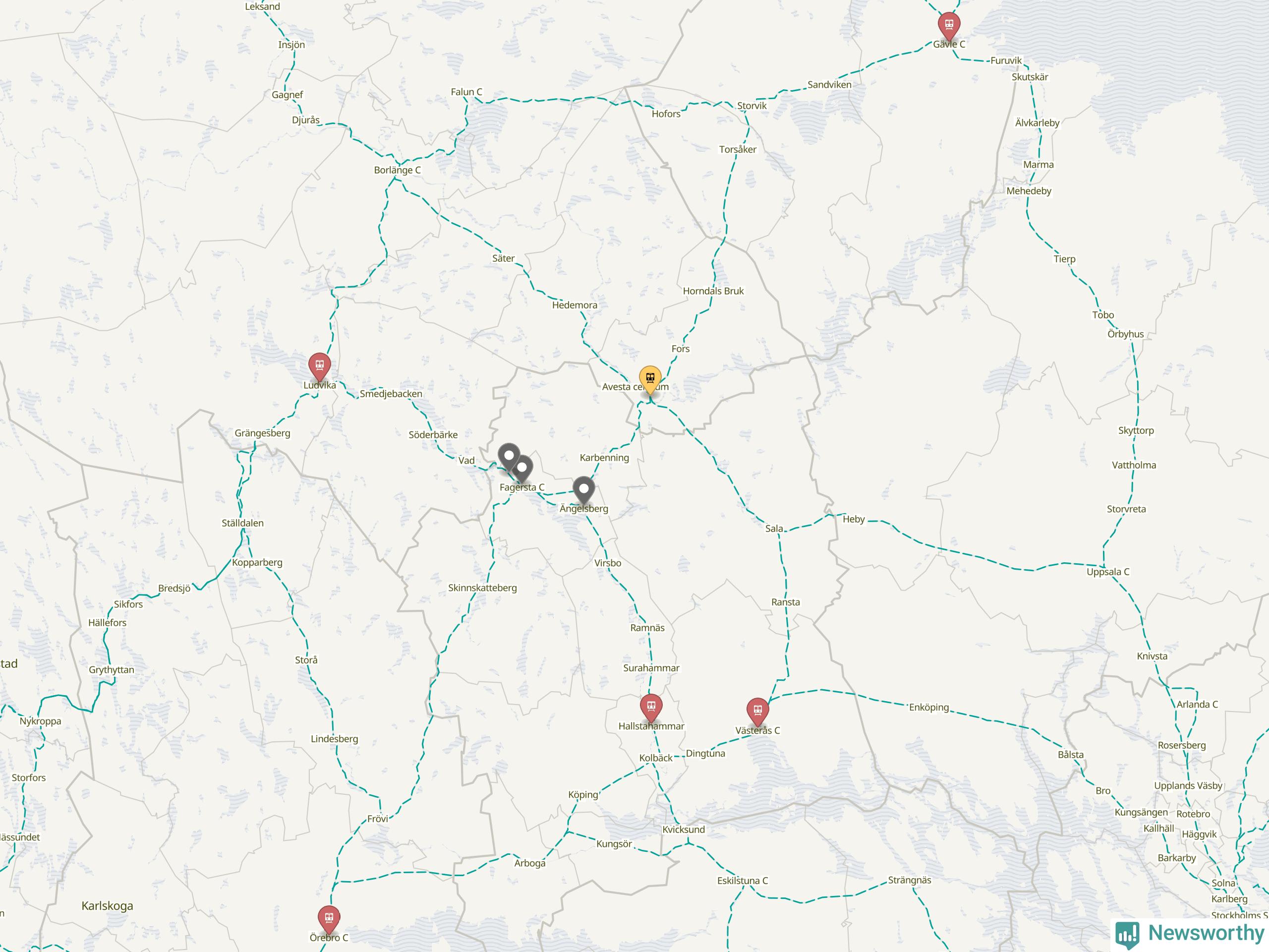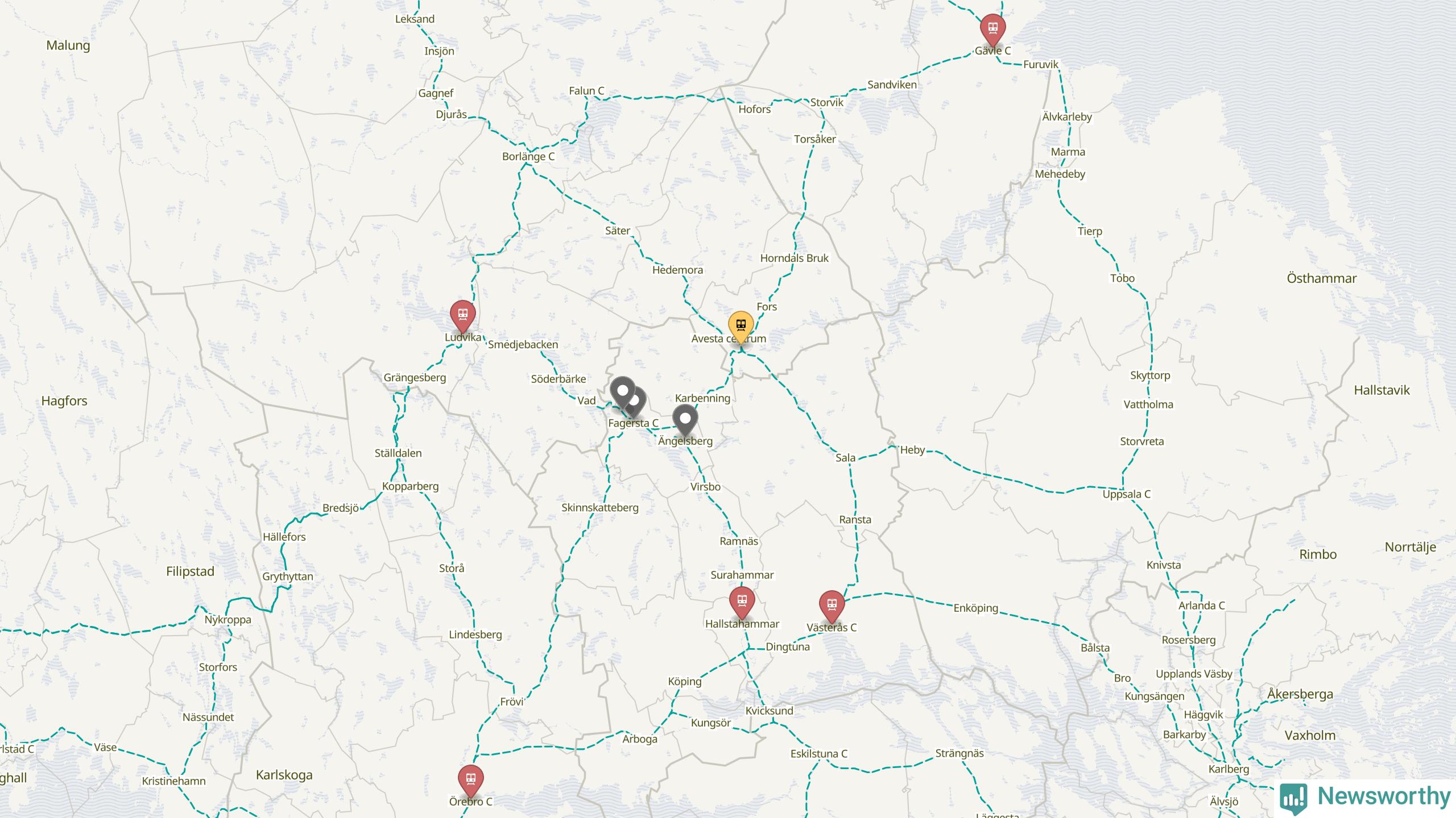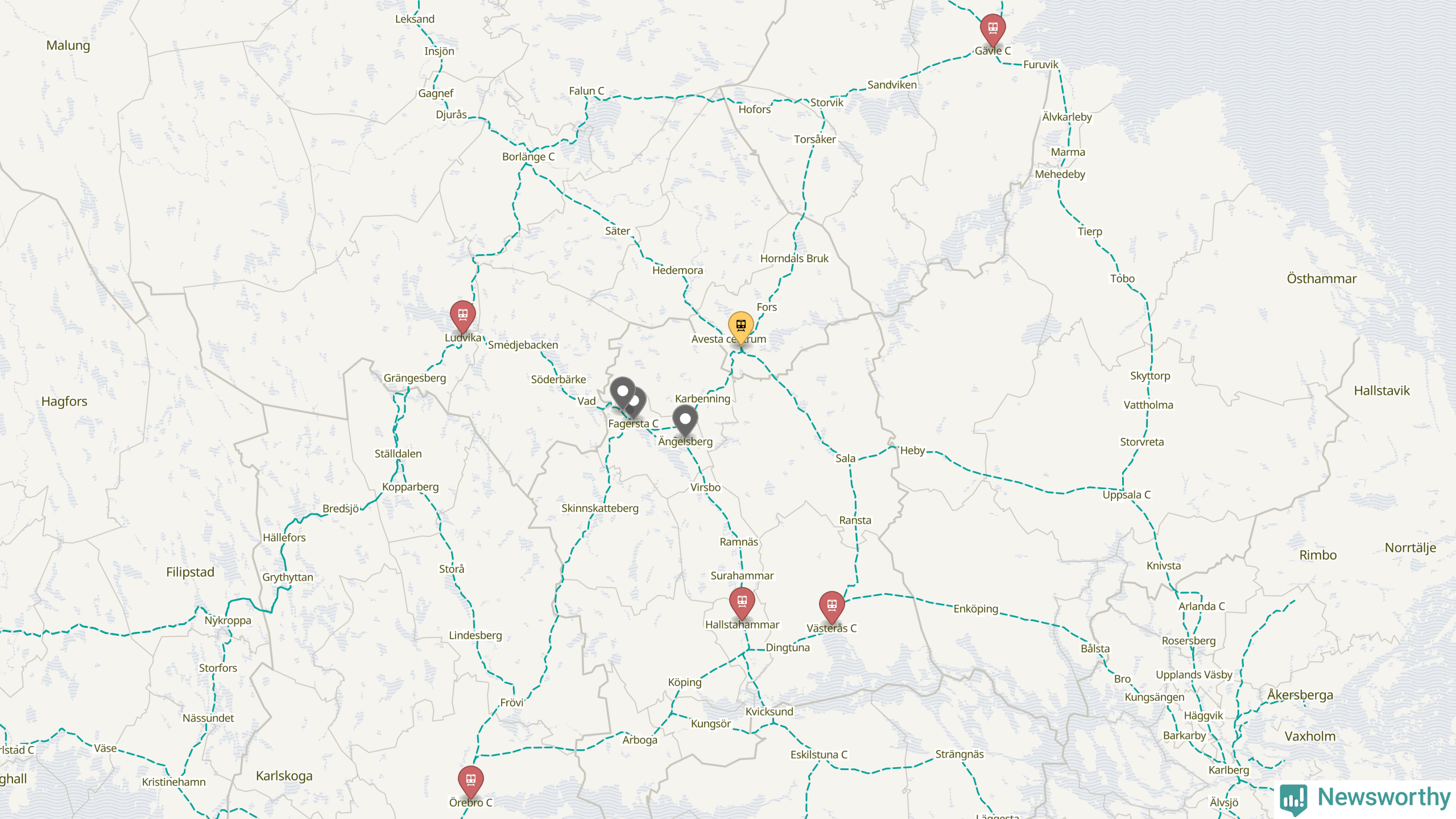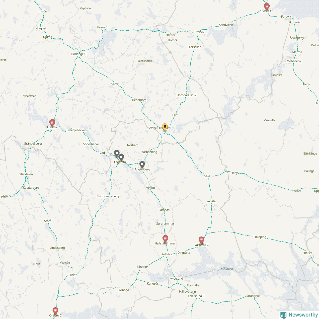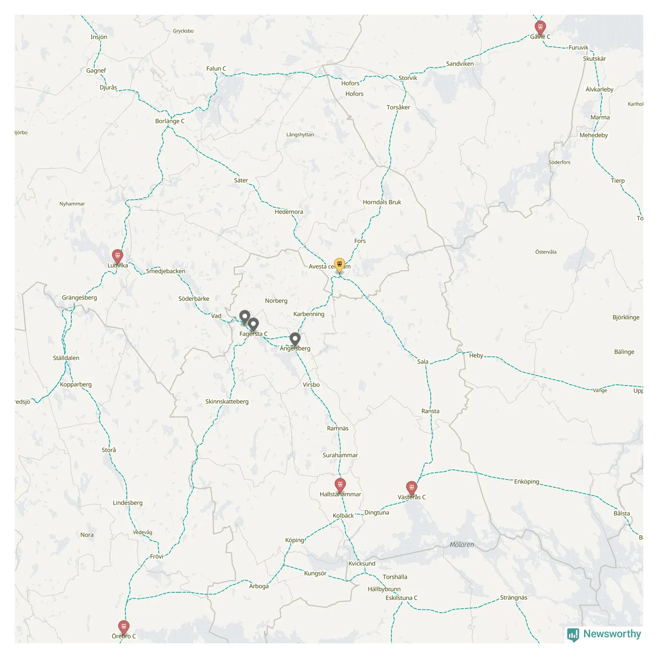 Kartdata från Mapbox, Newsworthy, OpenStreetMap och Trafikverket. Uppgifter om sträckor med passagerartrafik från jarnvag.net.