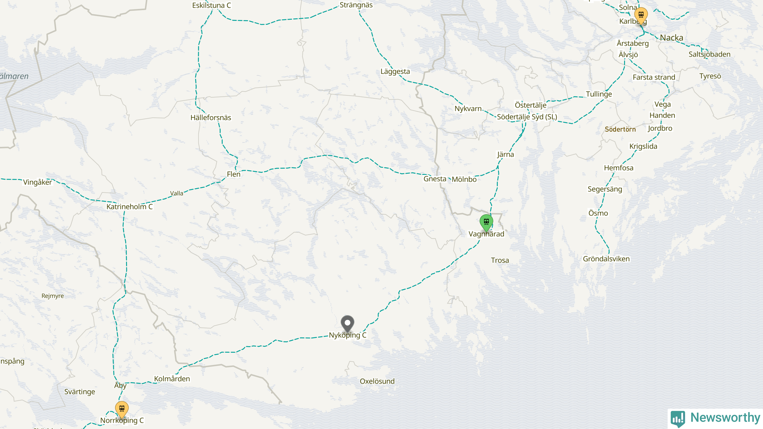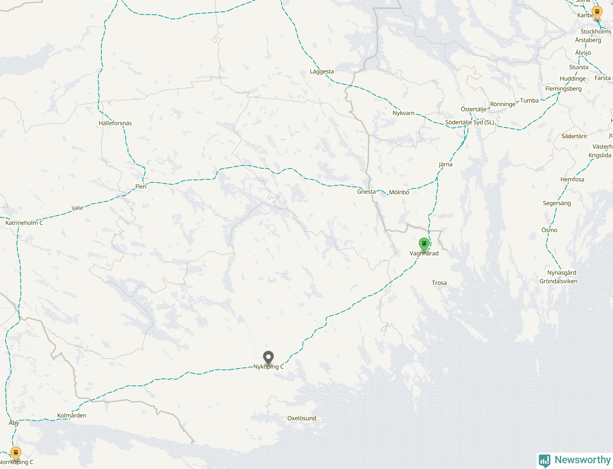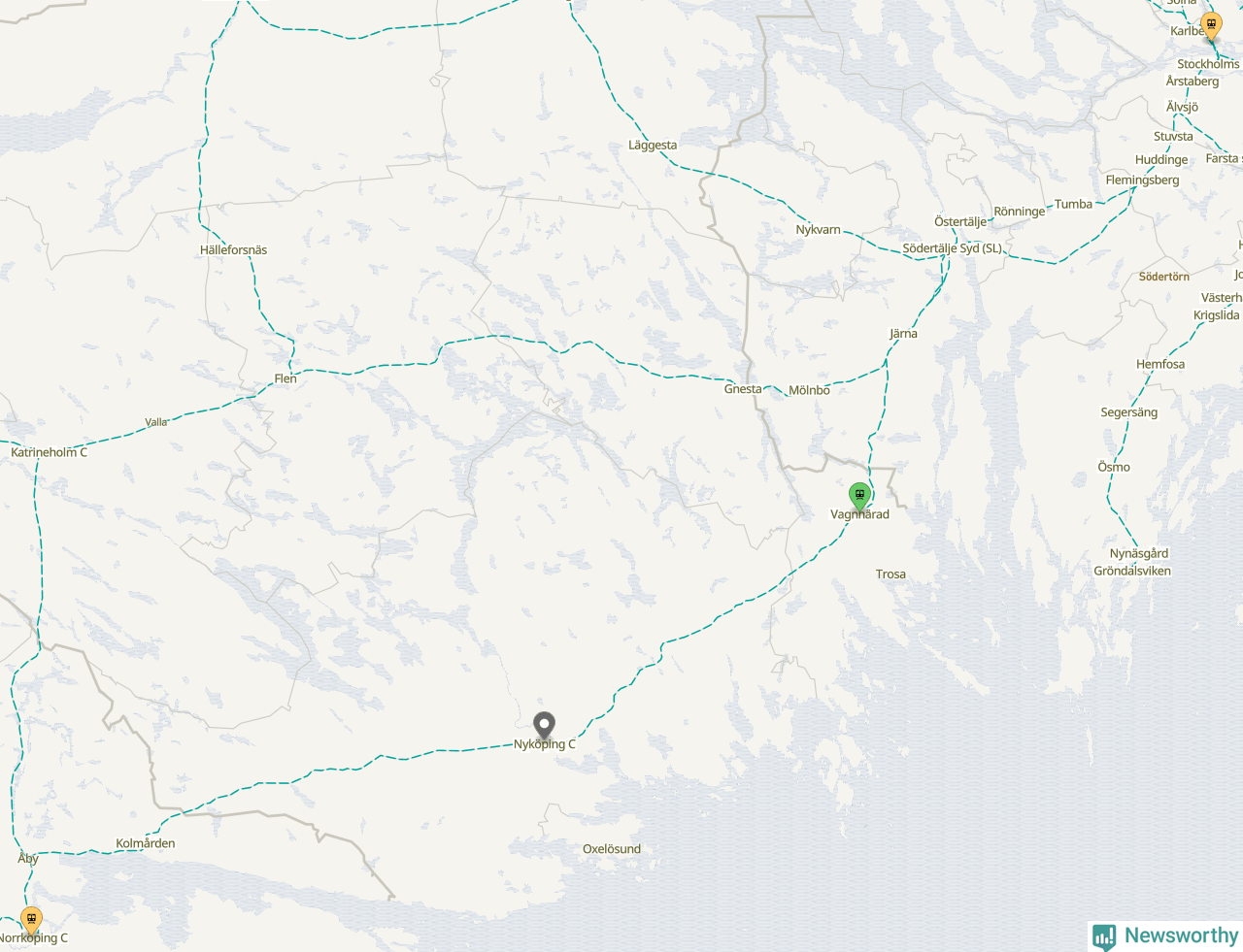 Kartdata från Mapbox, Newsworthy, OpenStreetMap och Trafikverket. Uppgifter om sträckor med passagerartrafik från jarnvag.net.