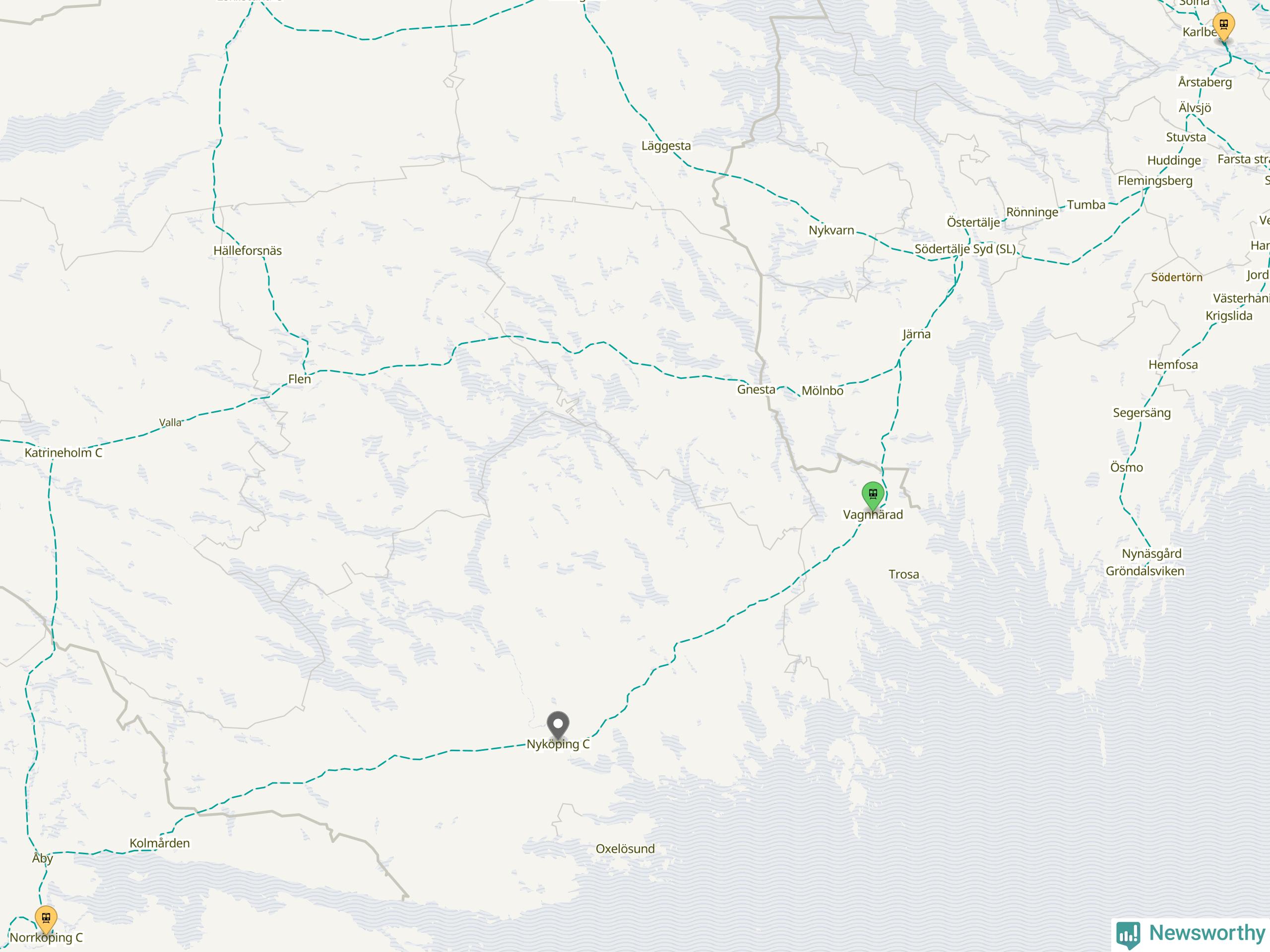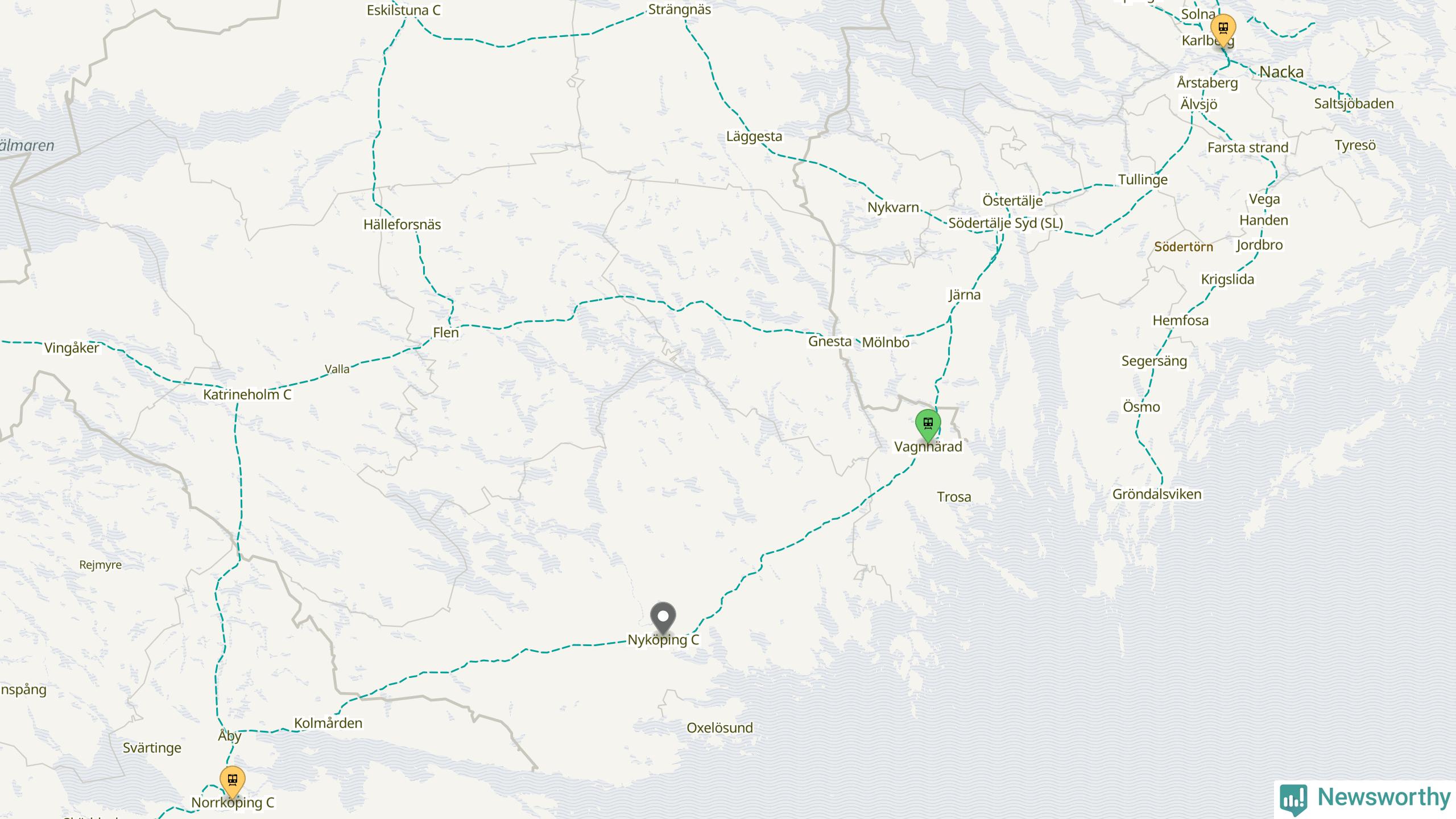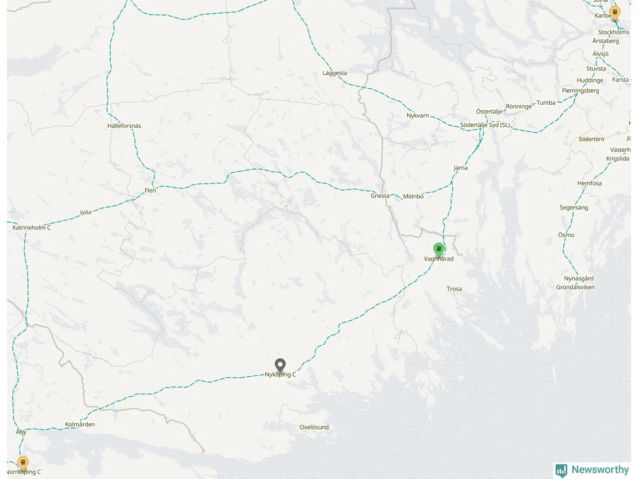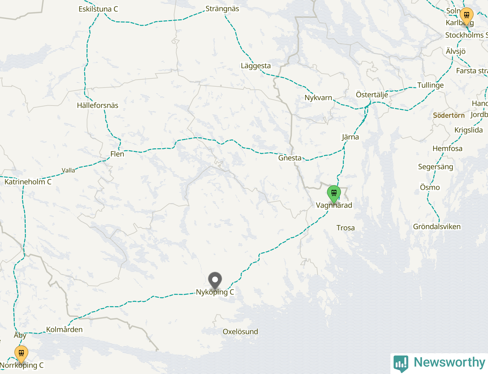 Kartdata från Mapbox, Newsworthy, OpenStreetMap och Trafikverket. Uppgifter om sträckor med passagerartrafik från jarnvag.net.