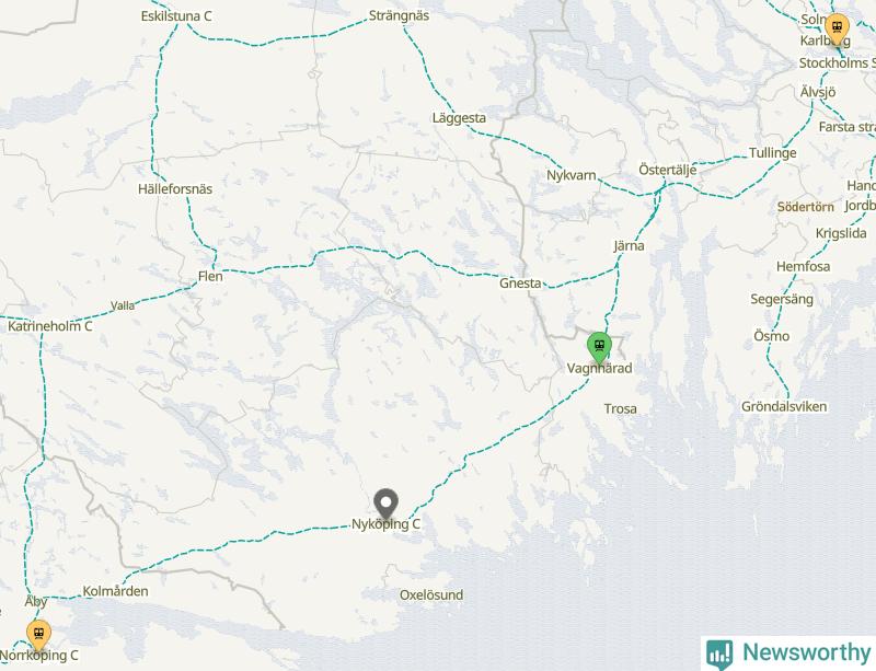 28 mars 22.00–2 april 4.45 | banarbete | Från 28/3 kl 22:00 till 2/4 kl 04:45 är tågtrafiken mellan Stockholm C och Vagnhärad inställd och ersatt med buss |