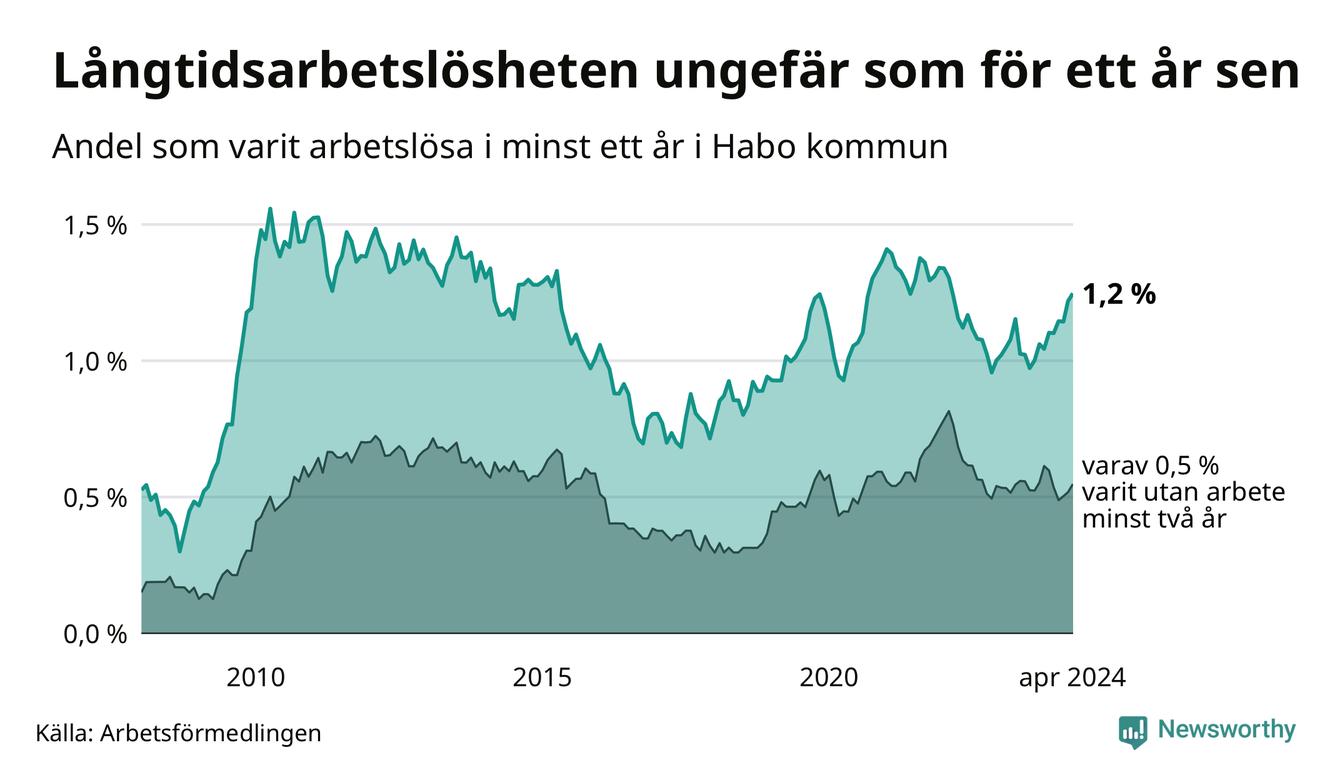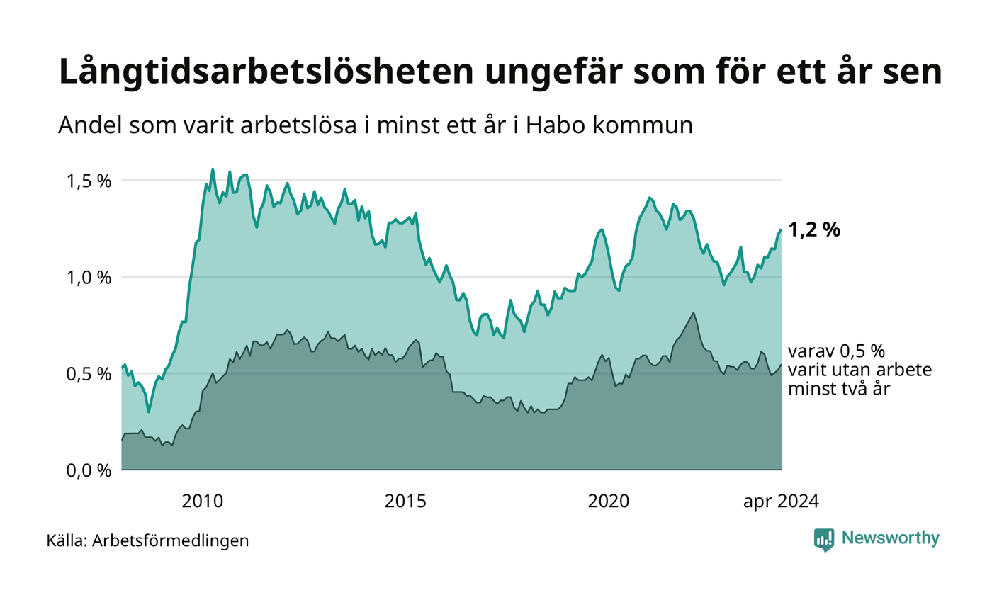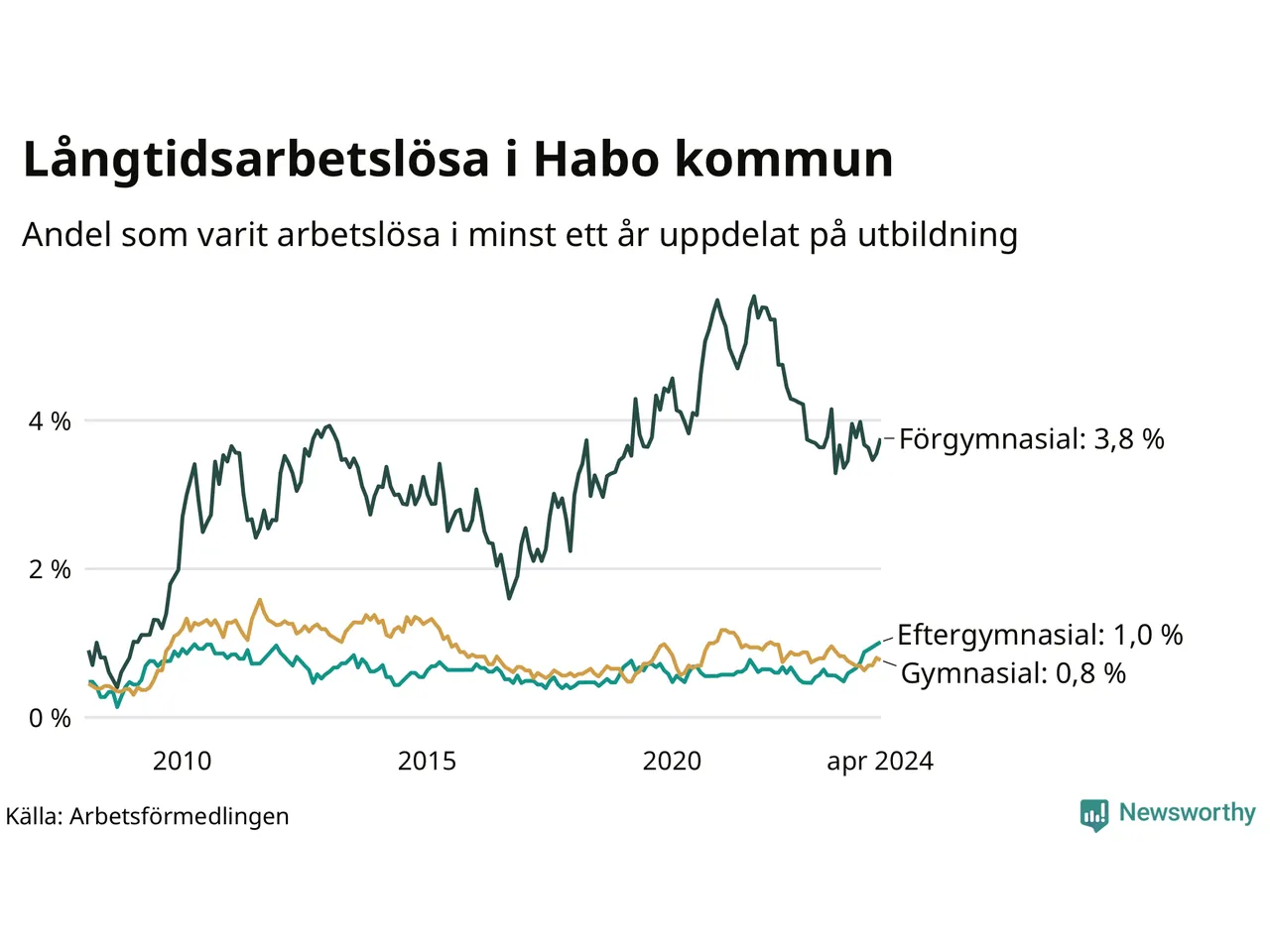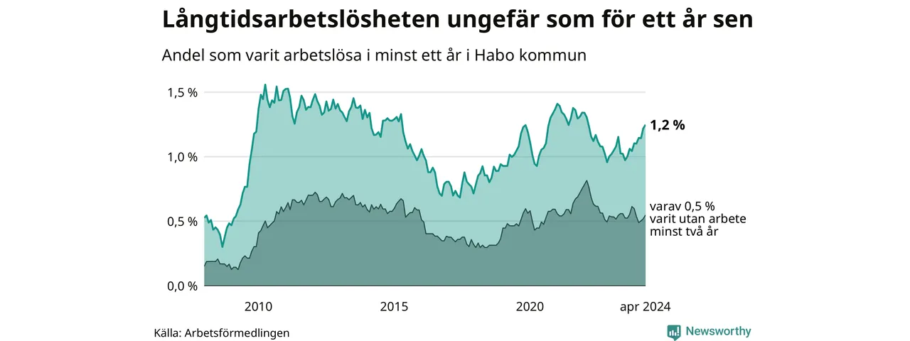 Inte sedan februari 2022 har andelen långtidsarbetslösa varit så hög i Habo. Det visar Arbetsförmedlingens senaste månadsstatistik.