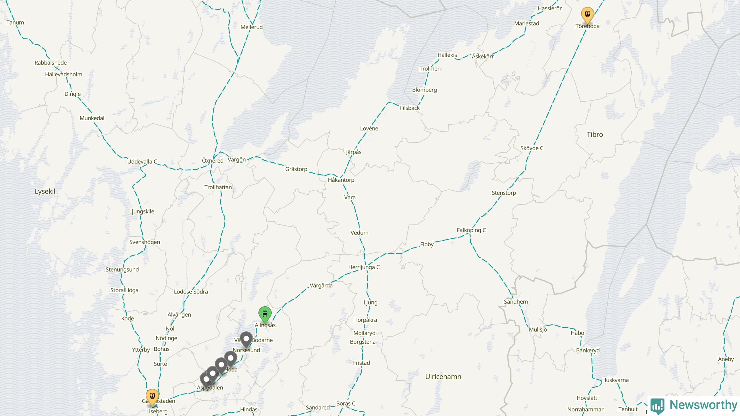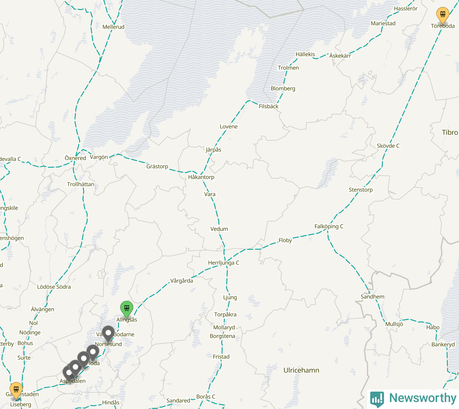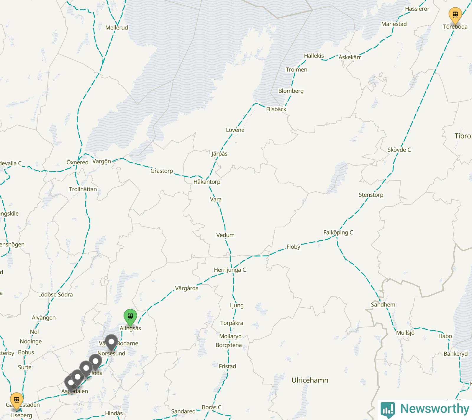Kartdata från Mapbox, Newsworthy, OpenStreetMap och Trafikverket. Uppgifter om sträckor med passagerartrafik från jarnvag.net.