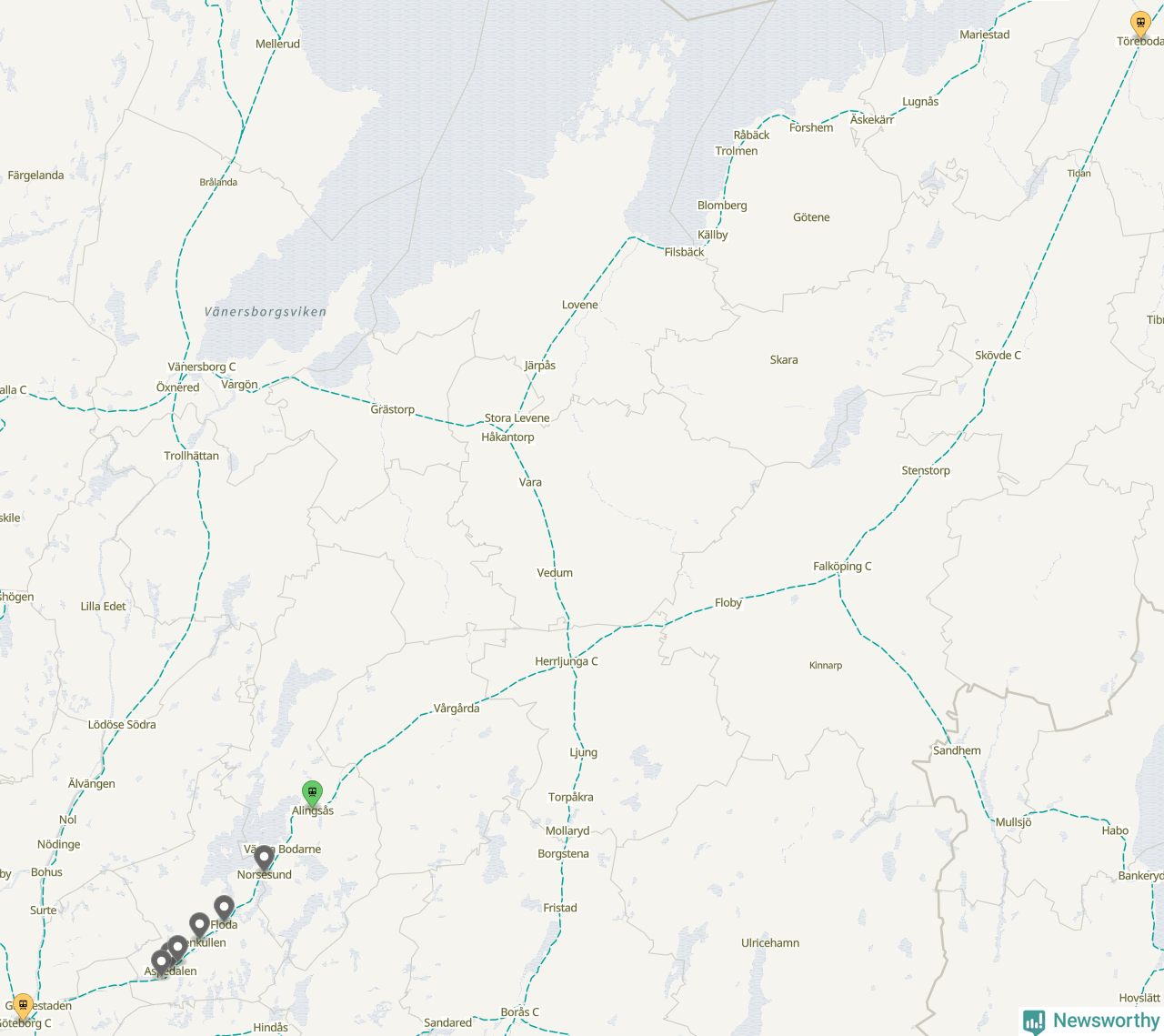 8 juni 6.30–14.00elfelFörseningar i tågtrafiken på grund av elfel i Vårgårda