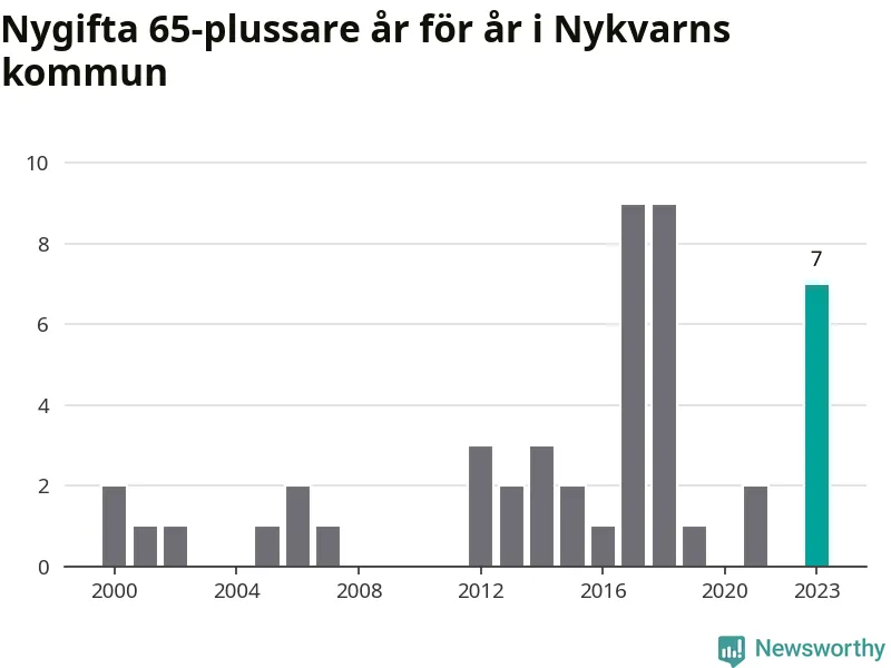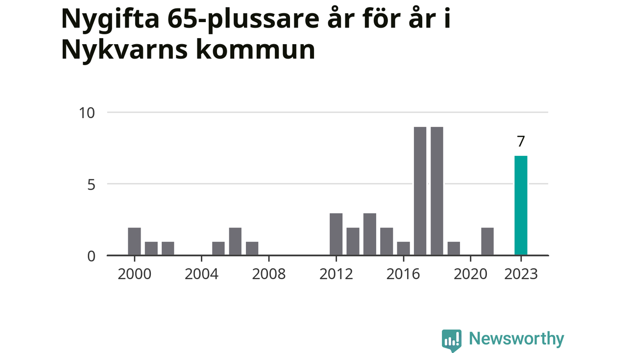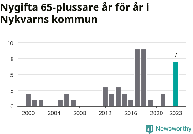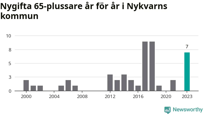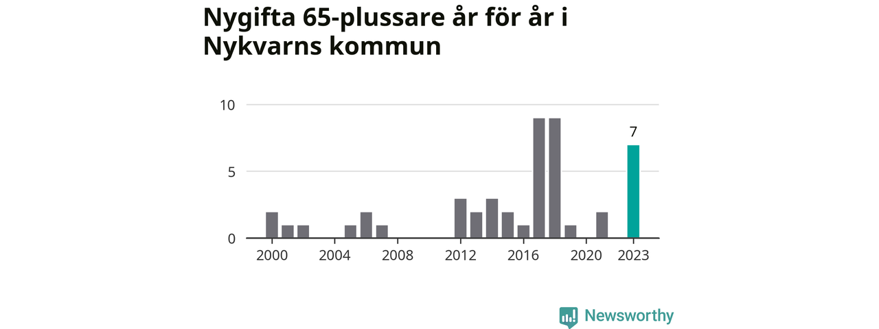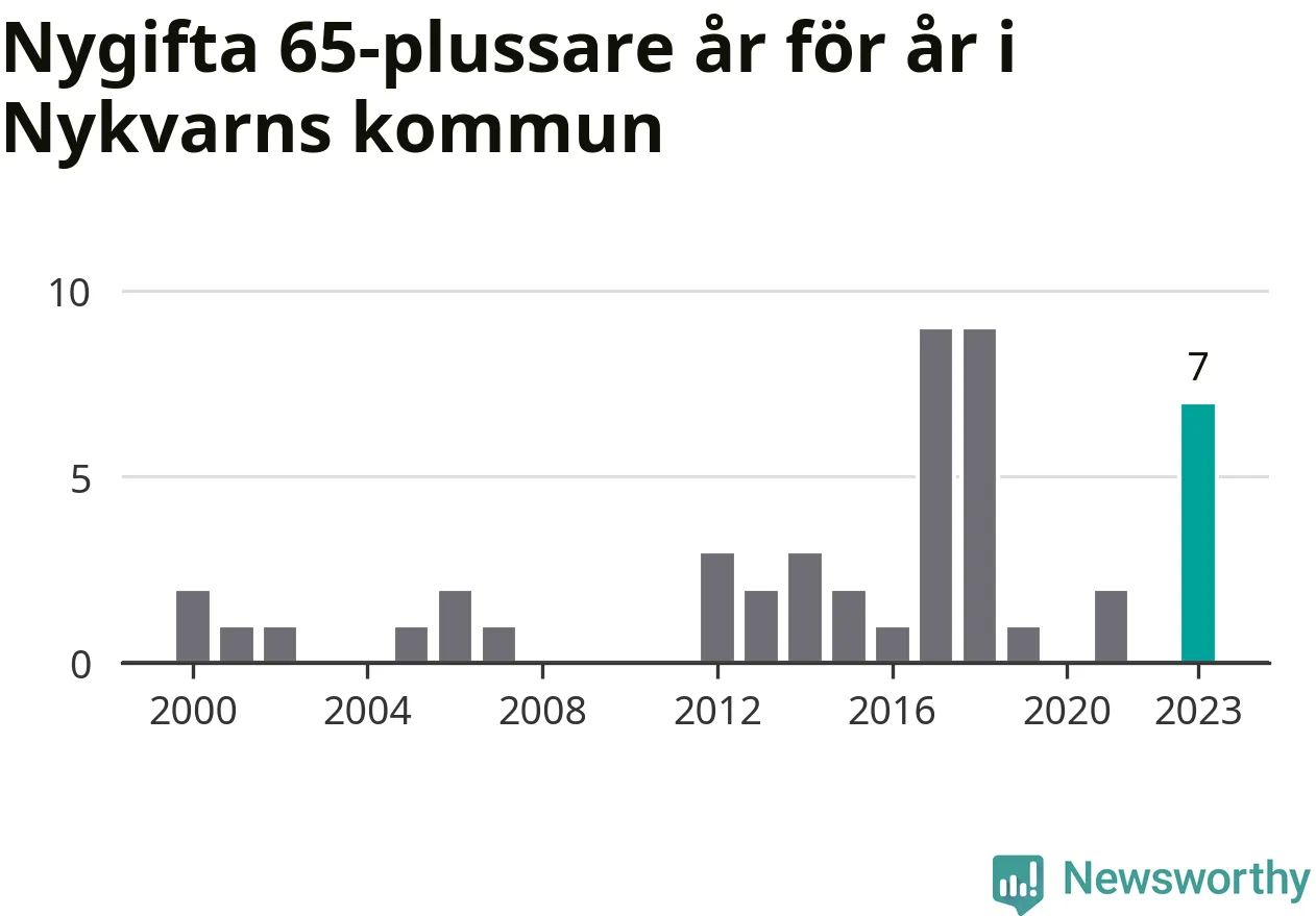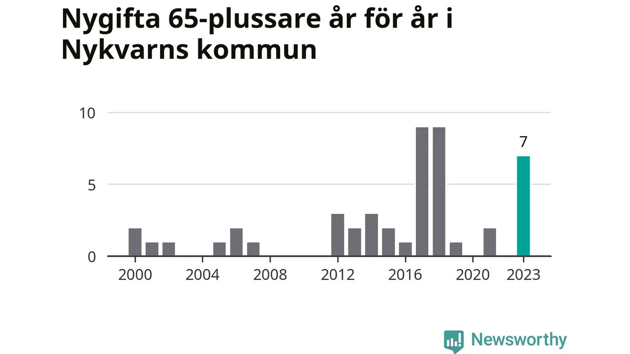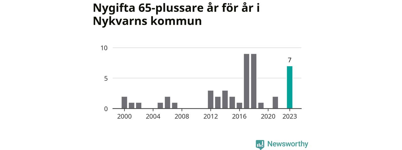 Åtta personer. Så många Nykvarnsbor gifte sig efter 65-årsdagen under hela 00-talet. Under det senaste decenniet, mellan 2014 och 2023, har samma siffra ökat till 34. Lite mer än en fyrdubbling, med andra ord.