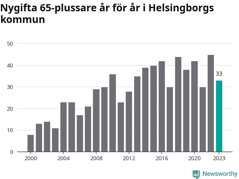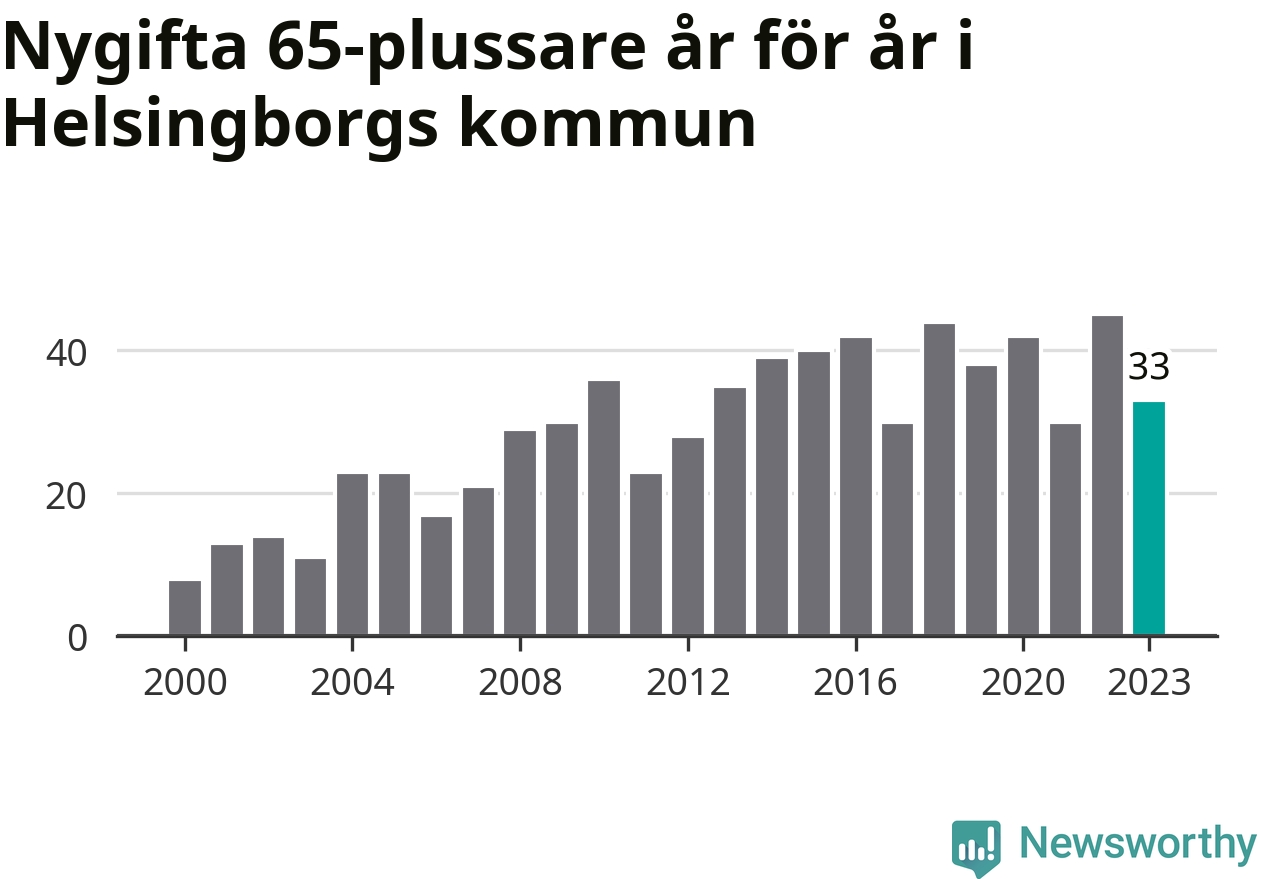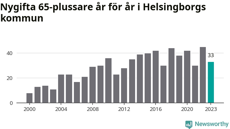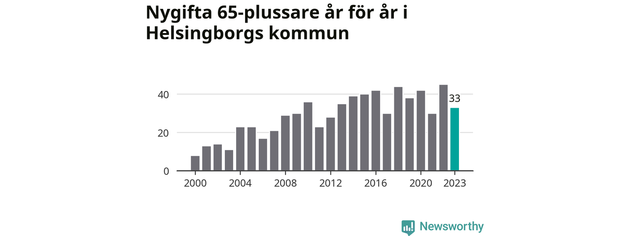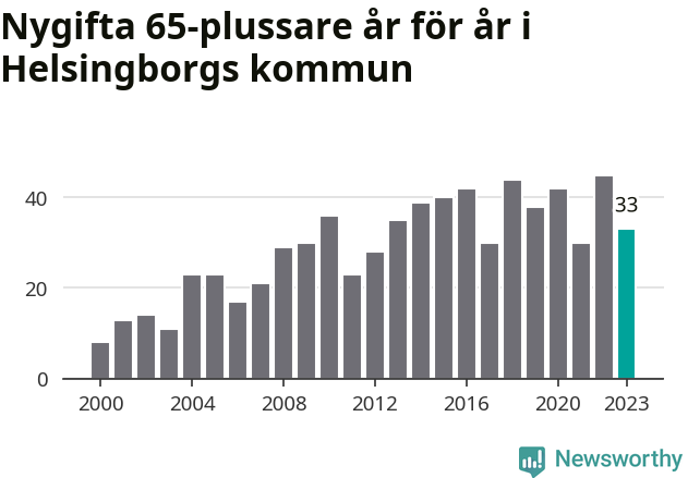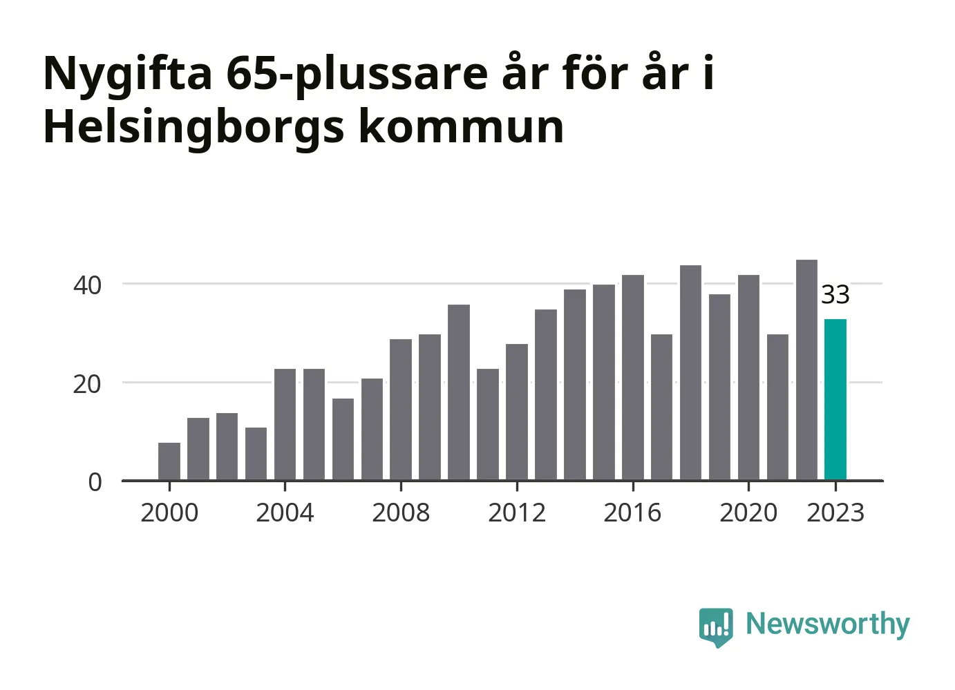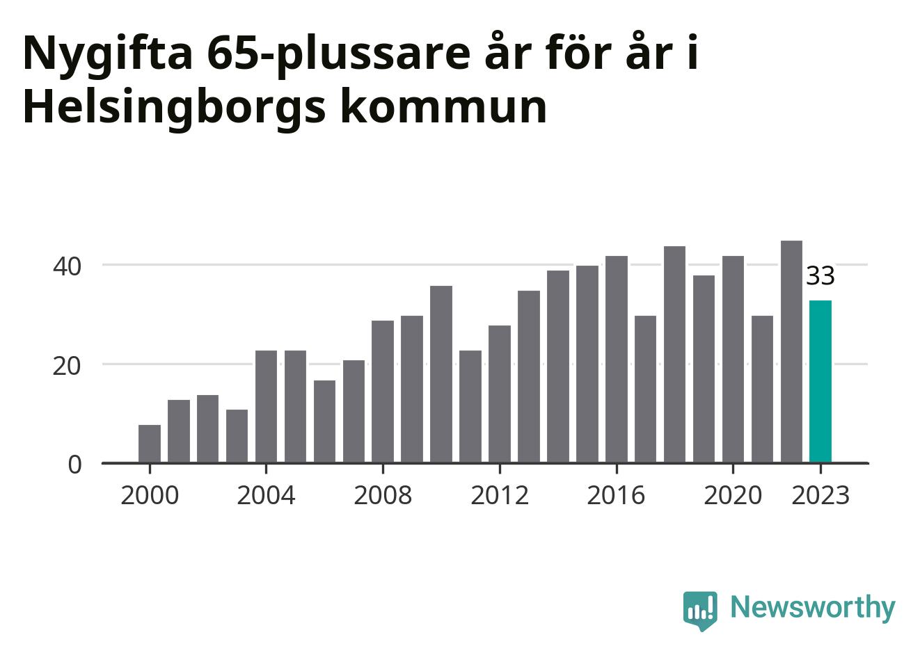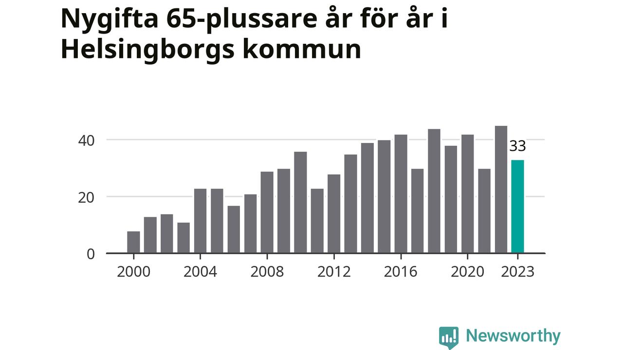 189 personer. Så många Helsingborgsbor gifte sig efter 65-årsdagen under hela 00-talet. Under det senaste decenniet, mellan 2014 och 2023, har samma siffra ökat till 383. En fördubbling, med andra ord.