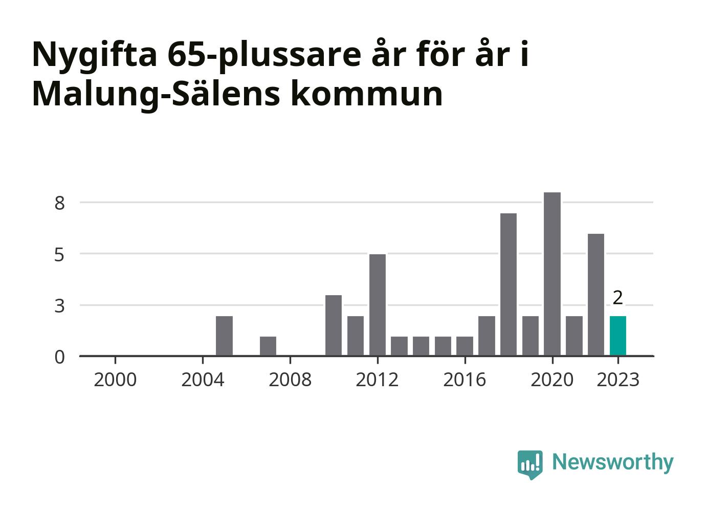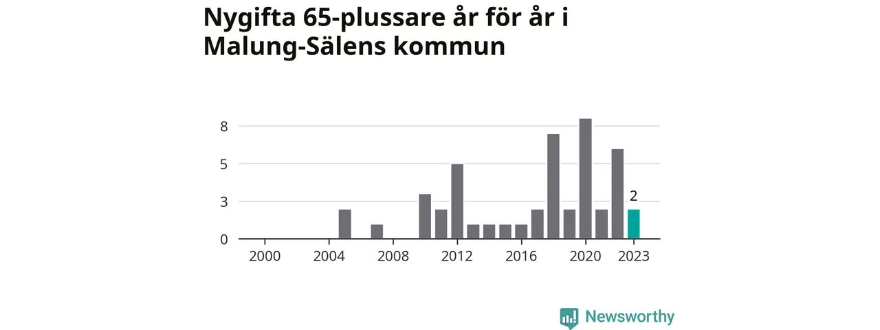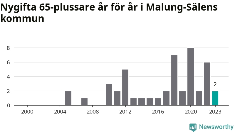 Bröllop bland 65-plussare har ökat markant i Sverige de senaste 25 åren. I Malung-Sälen har antalet nygifta seniorer ökat från tre under 00-talet till 32 senaste decenniet.