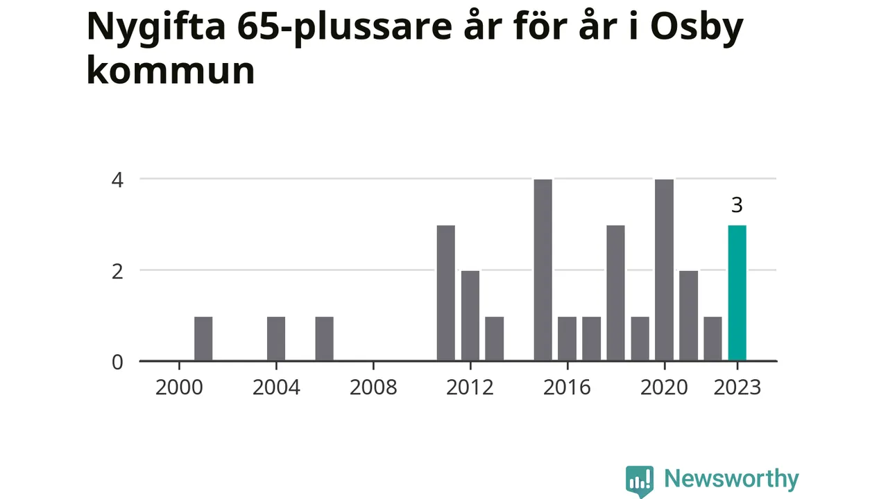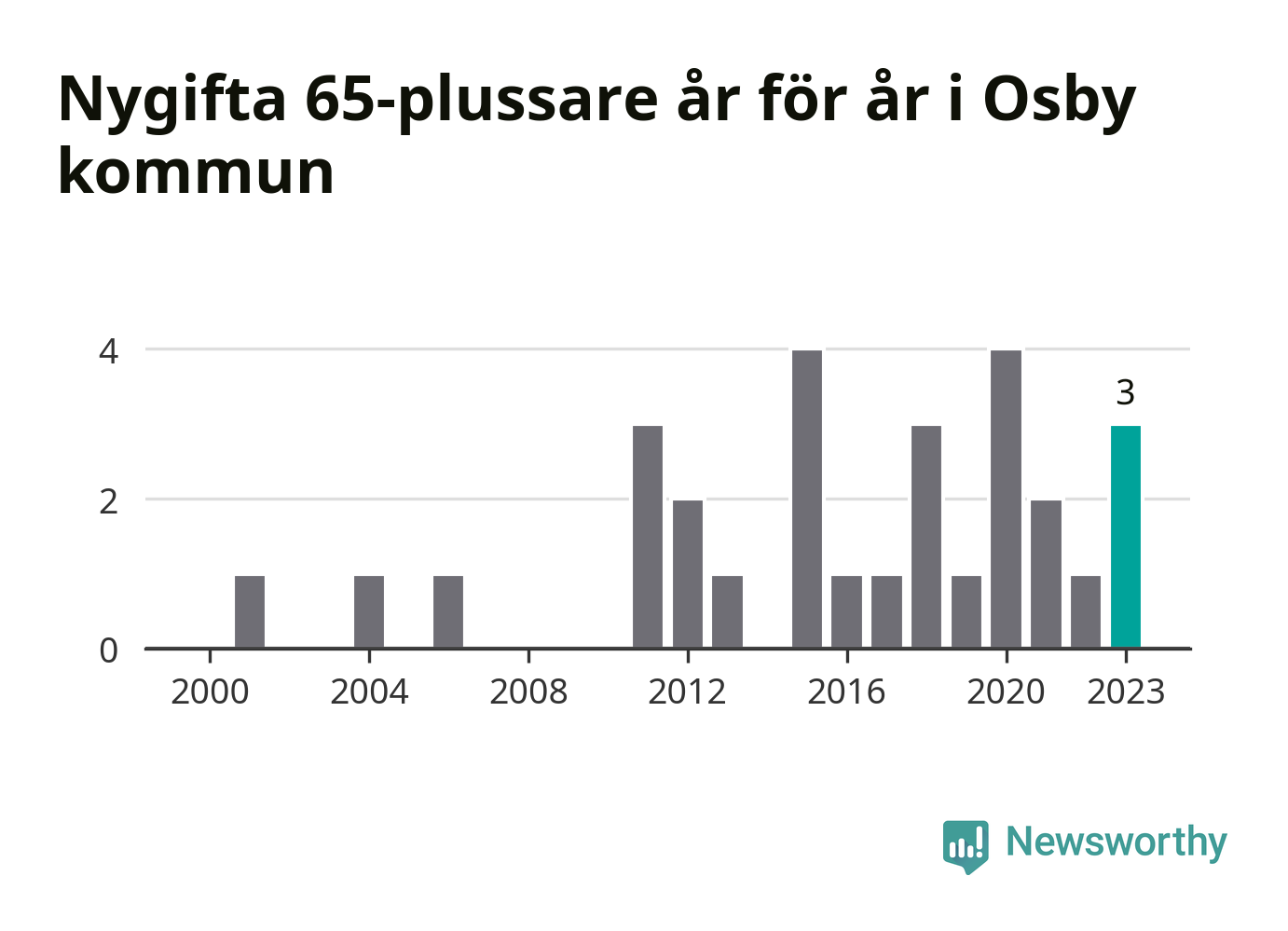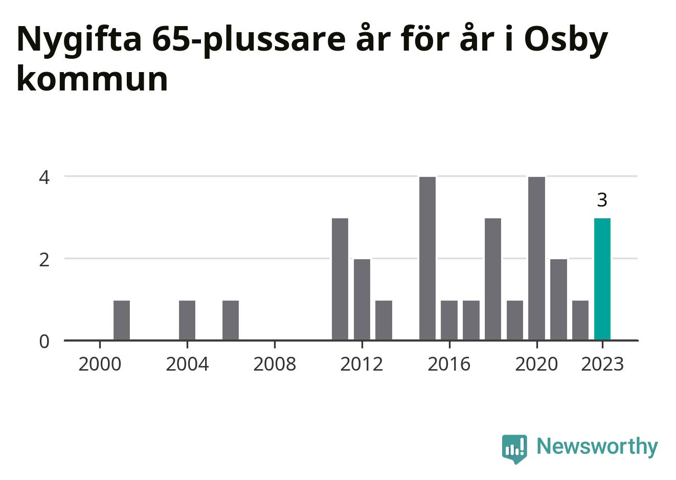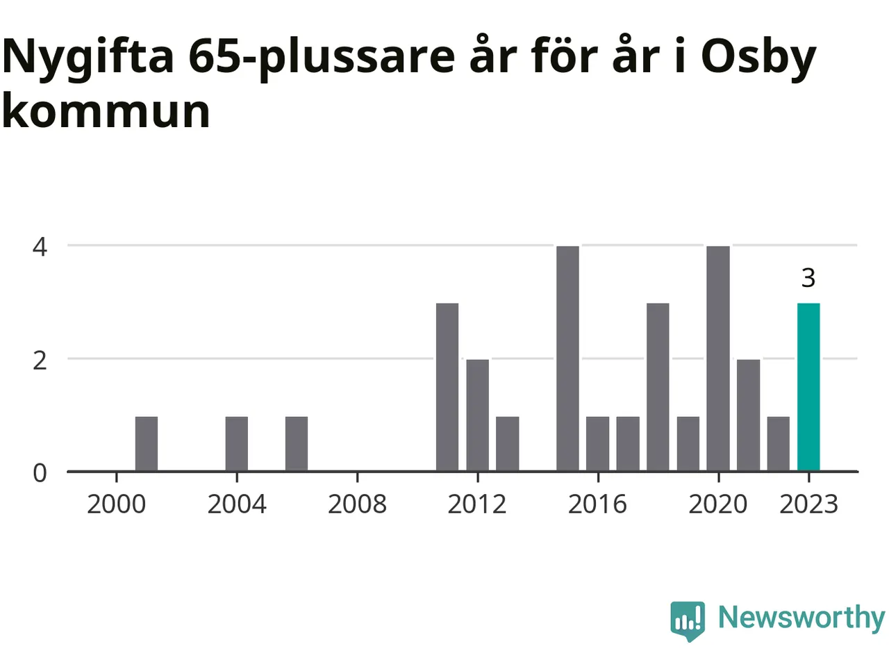 Bröllop bland 65-plussare har ökat markant i Sverige de senaste 25 åren. I Osby har antalet nygifta seniorer ökat från tre under 00-talet till 20 senaste decenniet.